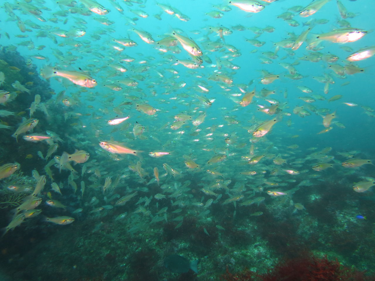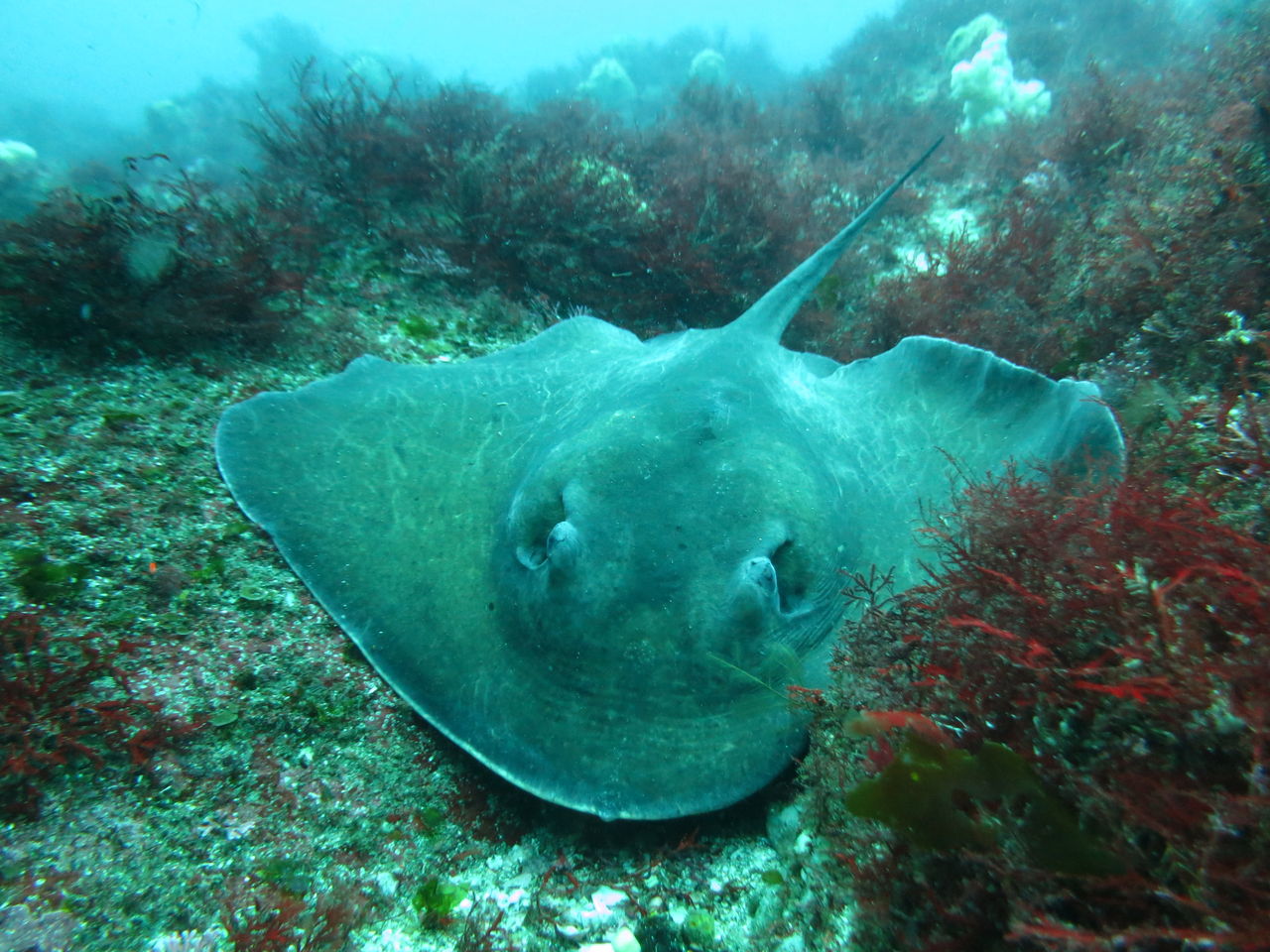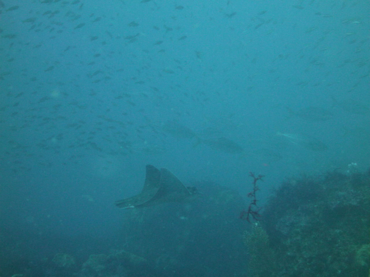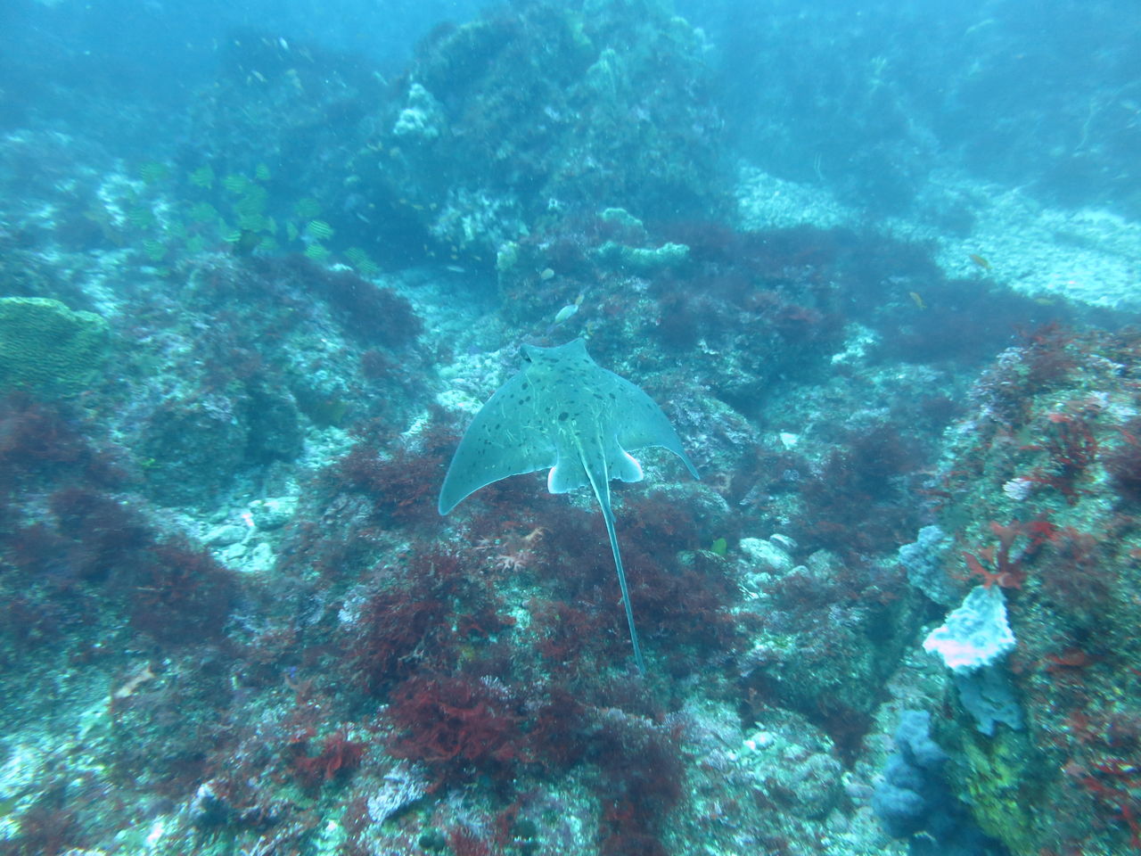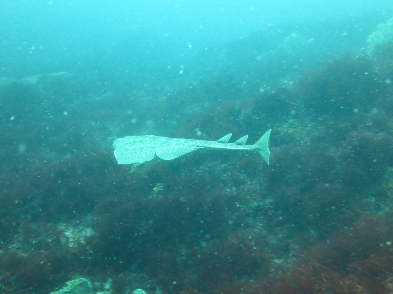 V字谷の様子を見ておこうと移動中に、カスザメの泳ぐ姿に遭遇。V字谷では、みんな中層にいて、何となくすっきりしていました。また、大集会が見たいなぁ〜 (´;ω;`)