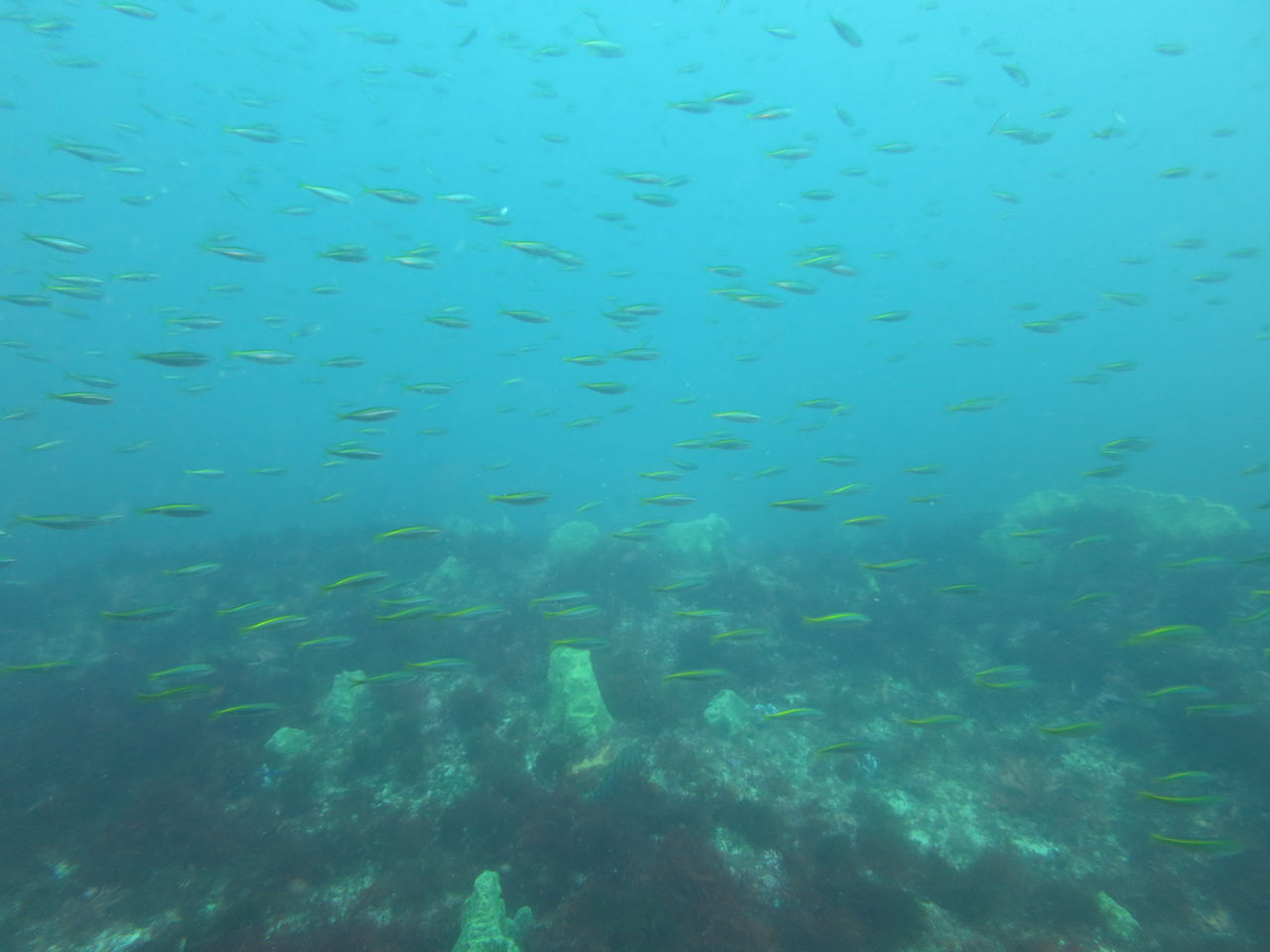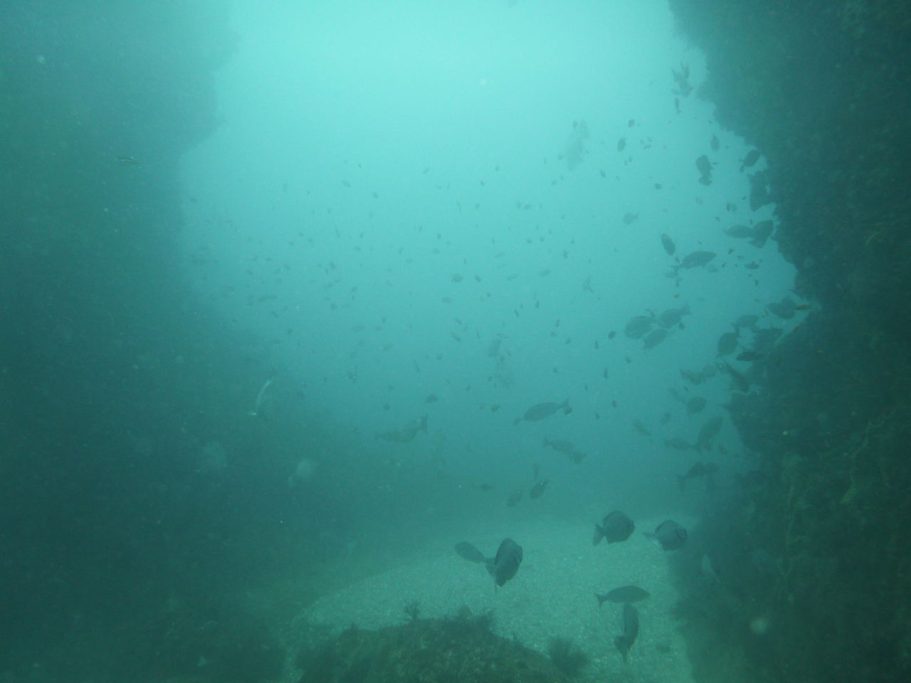 Aポイントからエントリーします。浮遊物が多く、透明度は良くないなぁ〜と思いましたが、水底に近づくと、視界が開けた感じで、水がキレイです。流れもほとんどありません。ただ、暖かい水と冷たい水が入り混じっており、そのギャップに身体がついていけません。