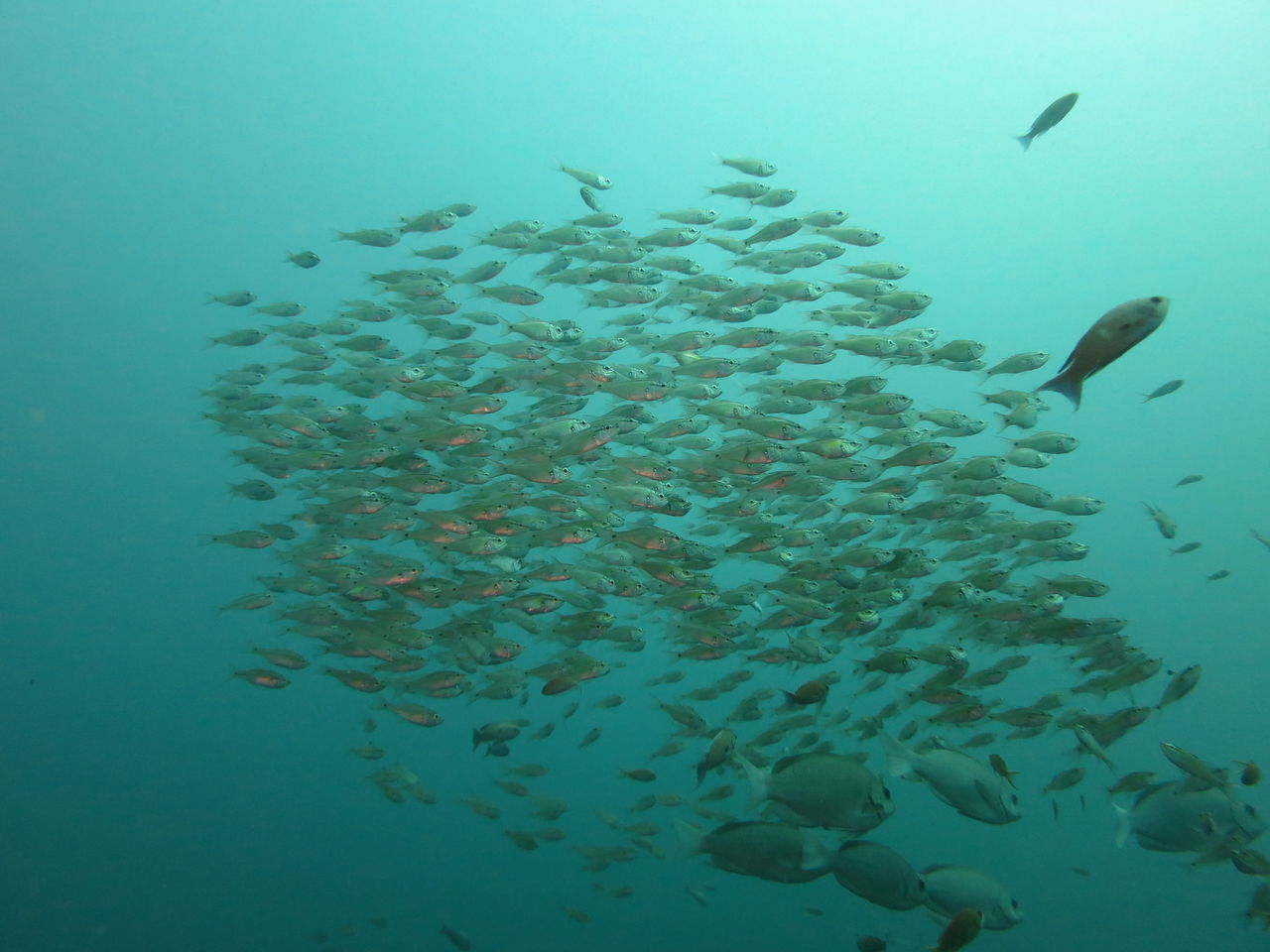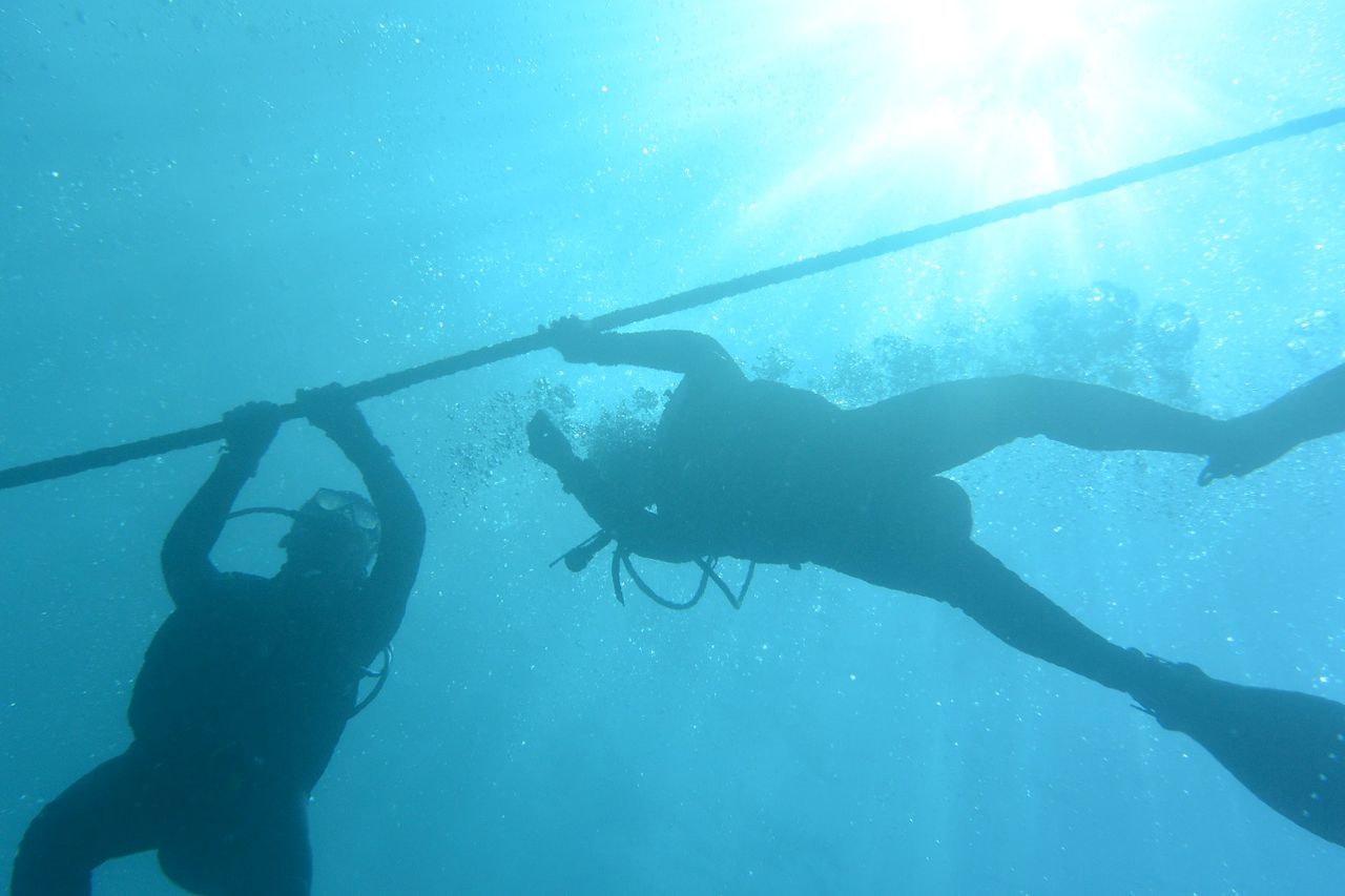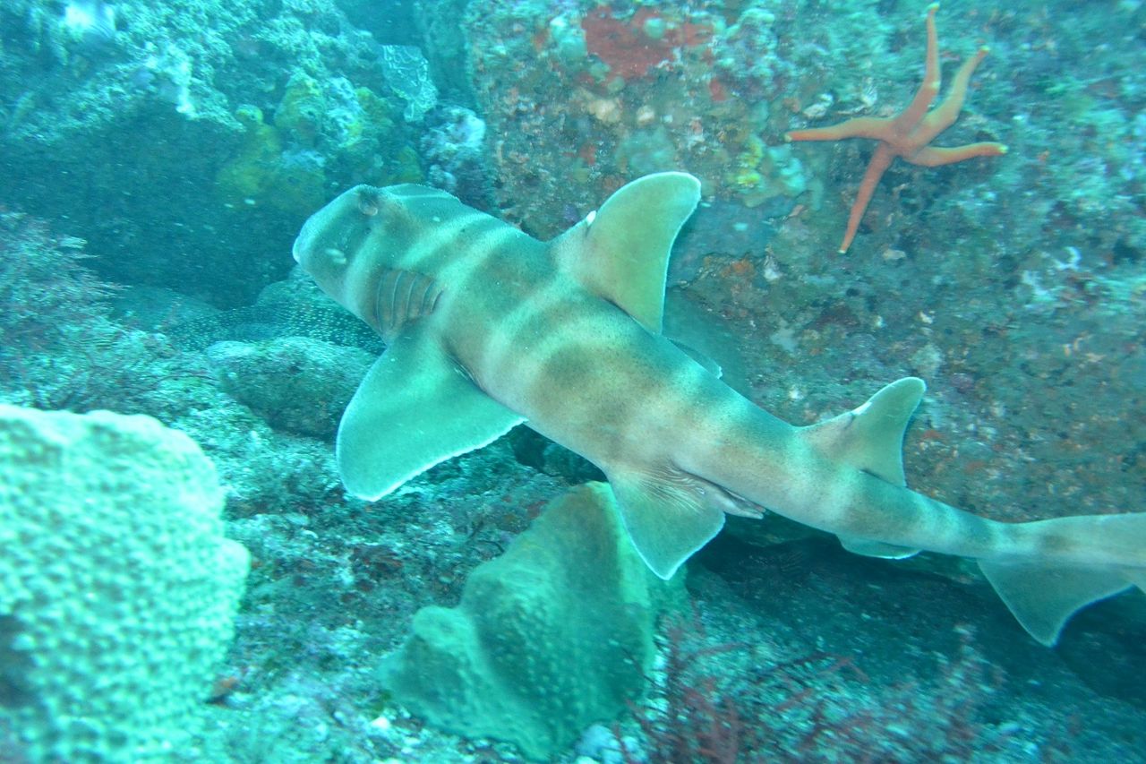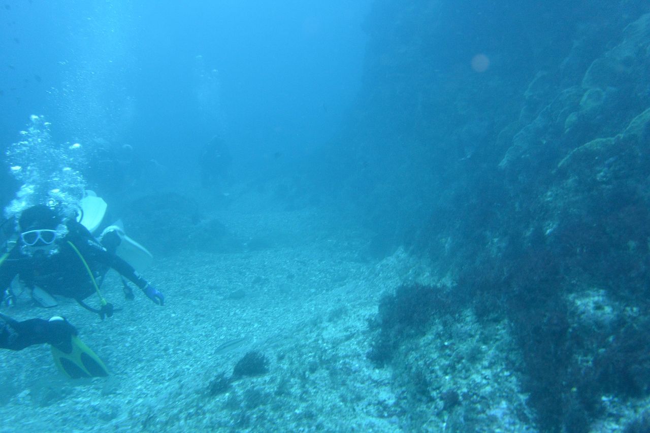 エントリーするとまったりな水中♪のんびりトビエイの根を目指します。根の東側にある岩をぐるっと回って根の南側へ、タテジマキンチャクダイの幼魚はひらひらと泳いでいます。