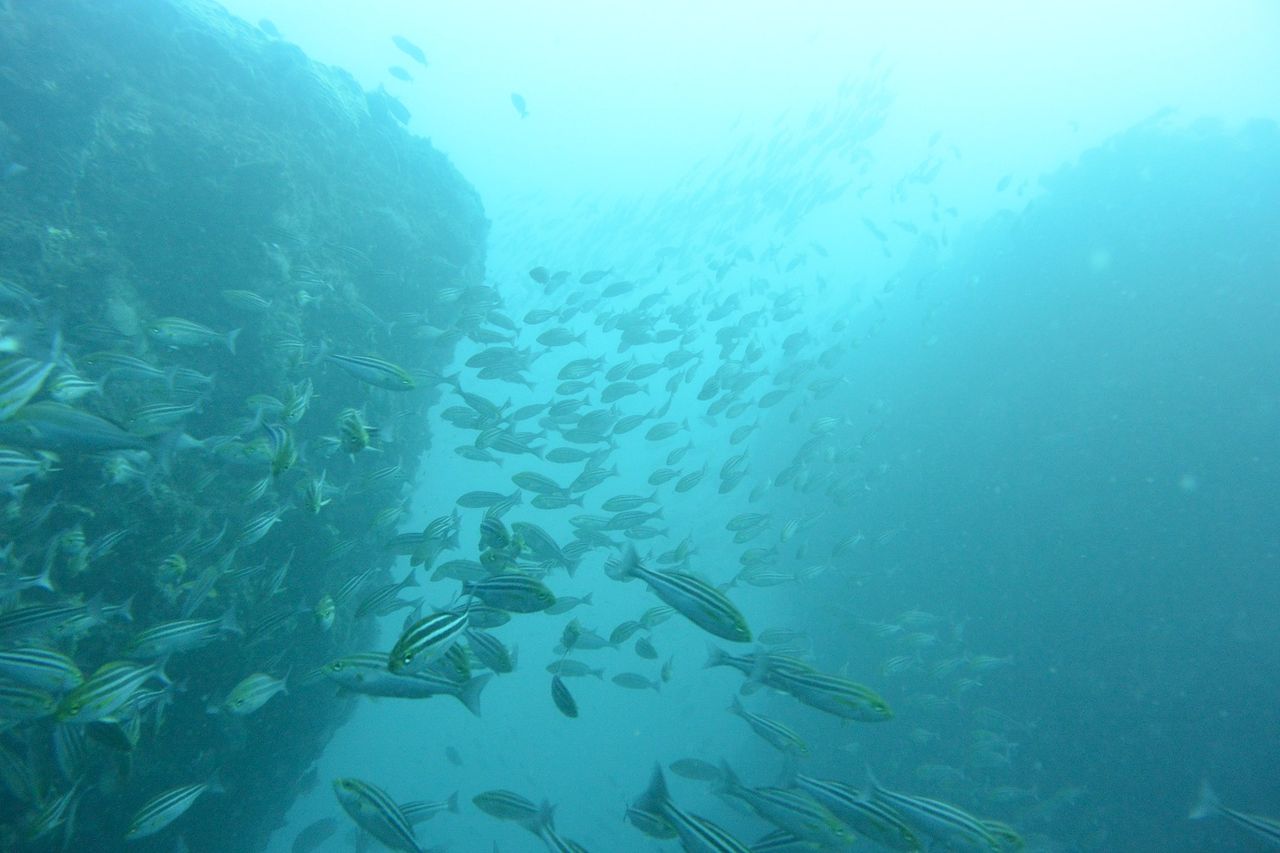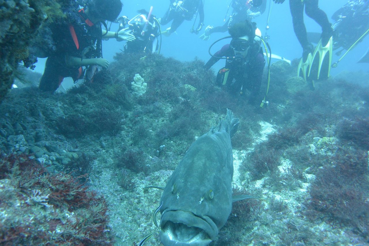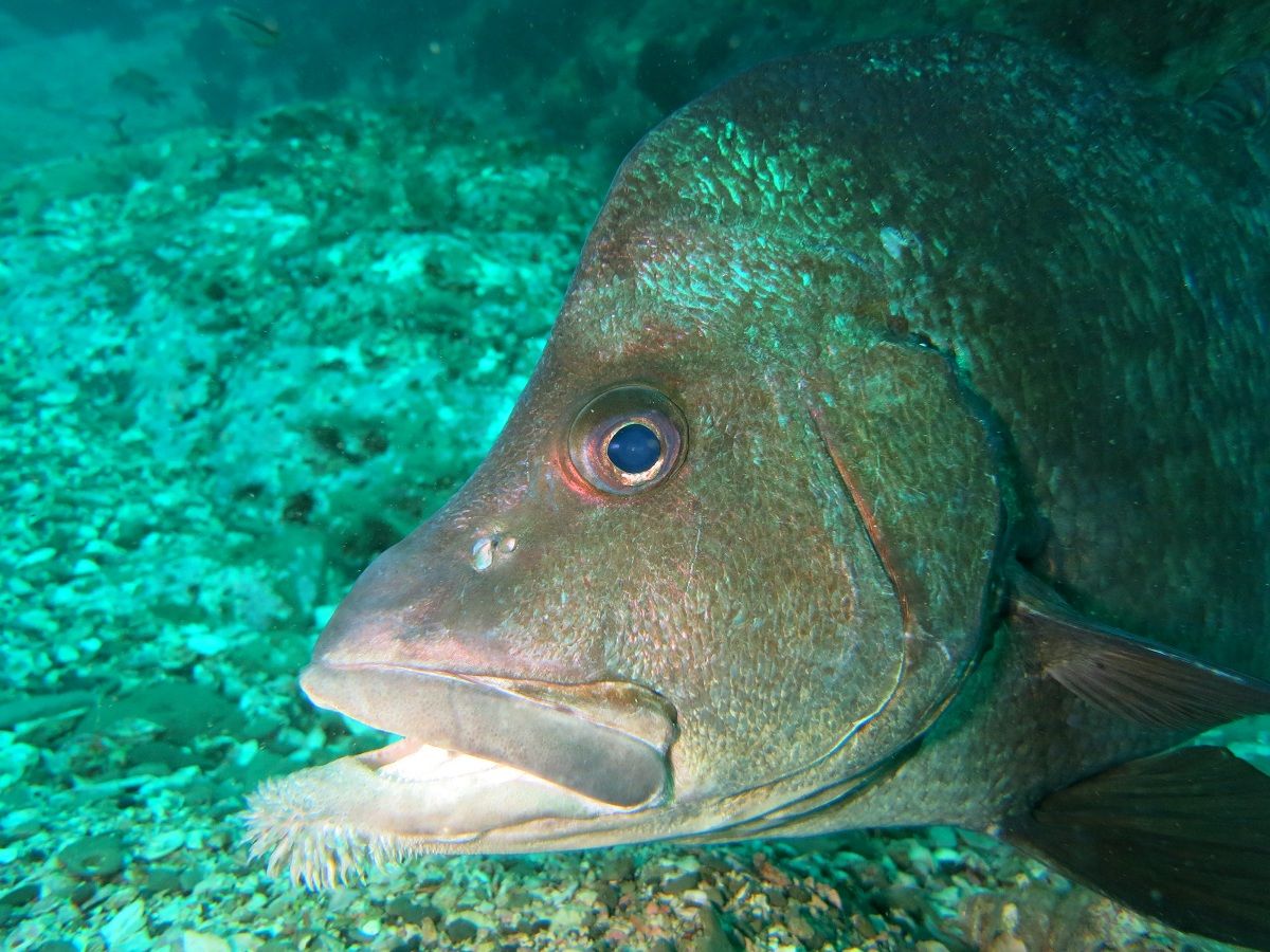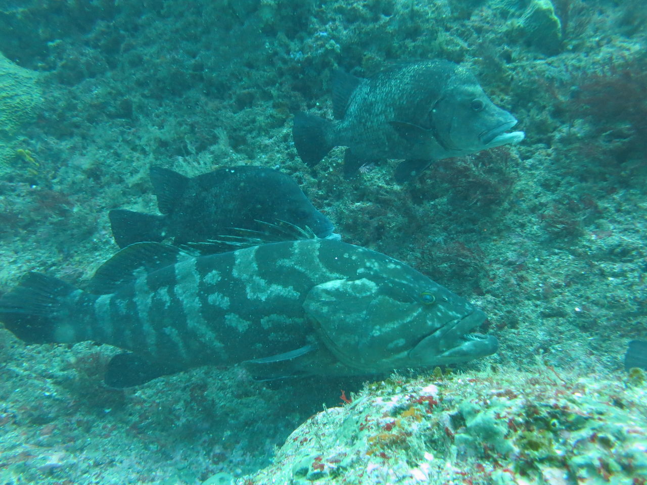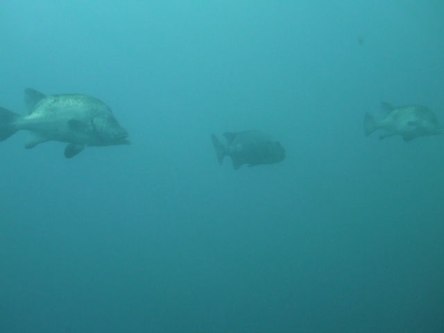 西ノ山を越えてV字谷へ。今日はヒゲダイが12匹ほど集まっており、前後に分かれて整列していました。やっぱりヒゲダイが並んでくれると可愛いですね(*^_^*)モロコも群れに交じって休んでいました。ヒゲダイとモロコさんは仲良しです☆