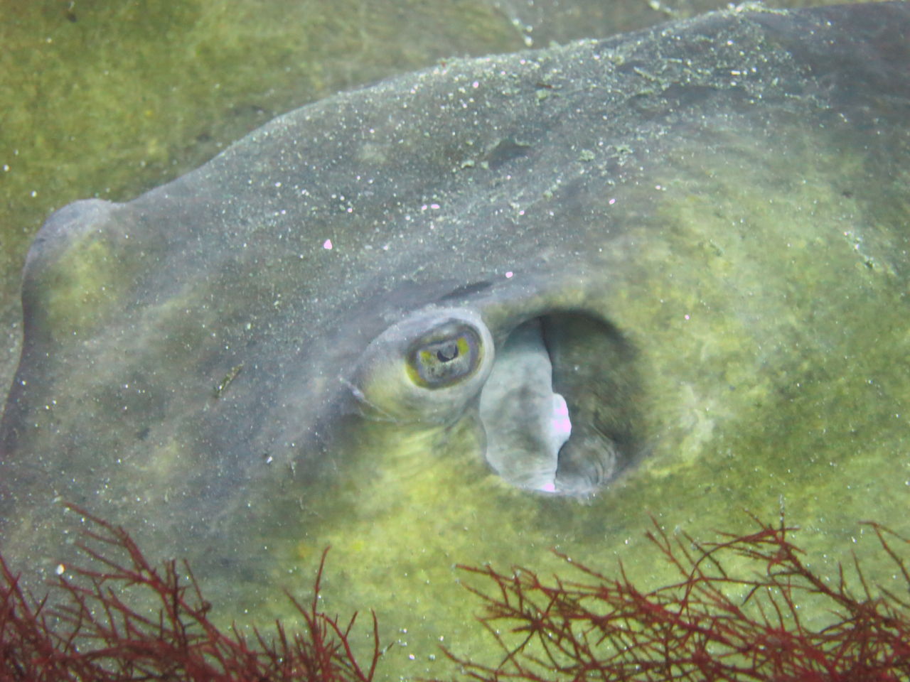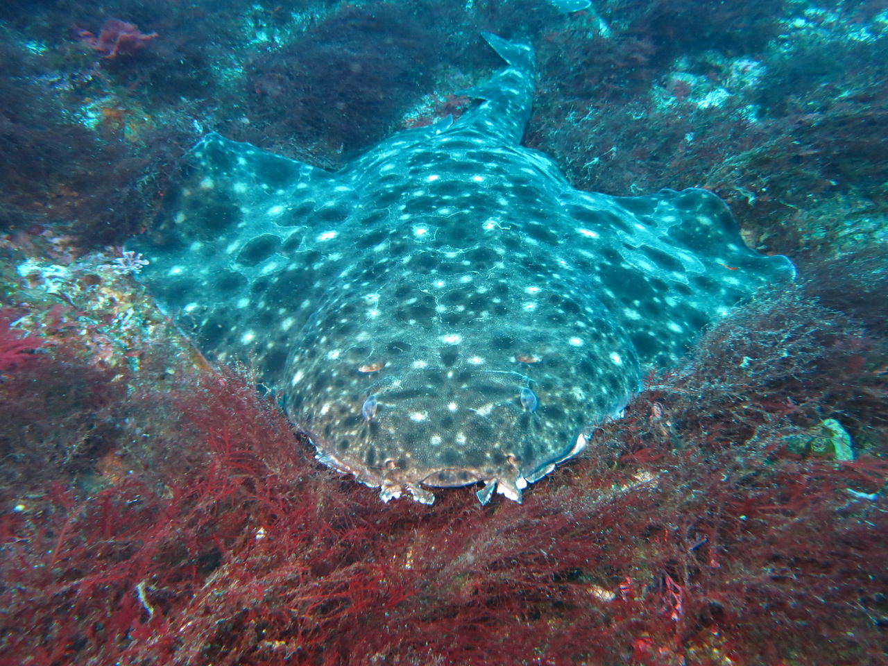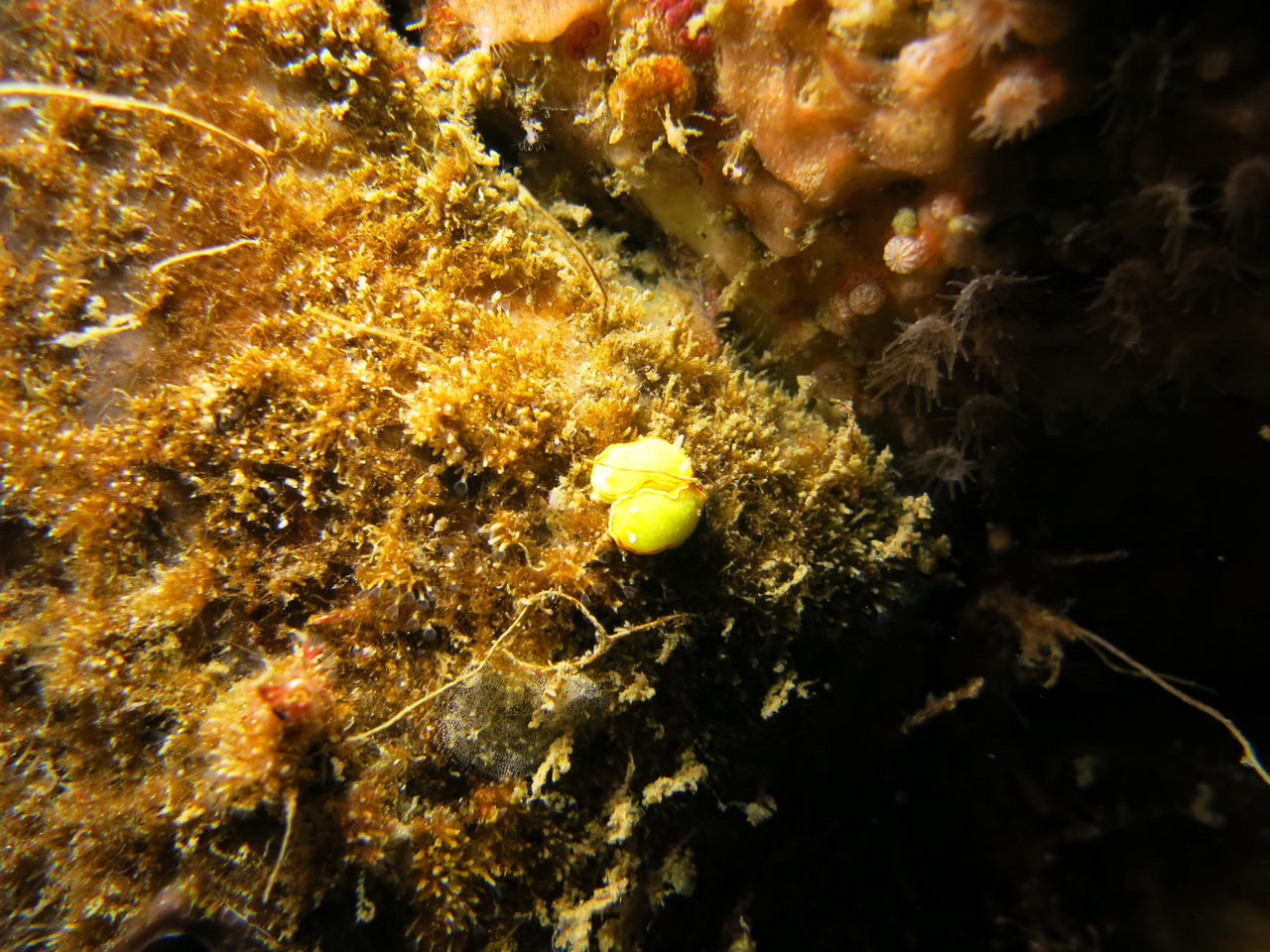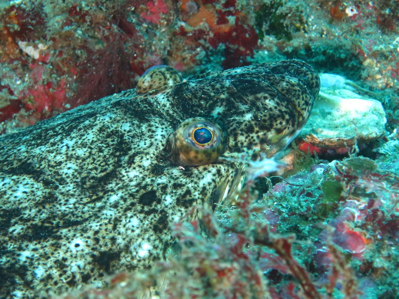 トビエイの根に向かいます! 最近クロアナゴはいるんですが・・なかなか出てきませんねぇ(>_<) もう一つの穴を覗くと、そこにはオアブダイが入っていました。根に張り付いていろいろ探していると、ミツイラメリウミウシが二匹くっついていました。ちっちゃいのなんの!!