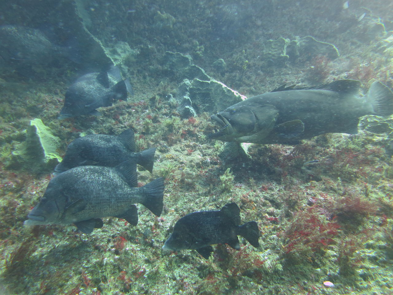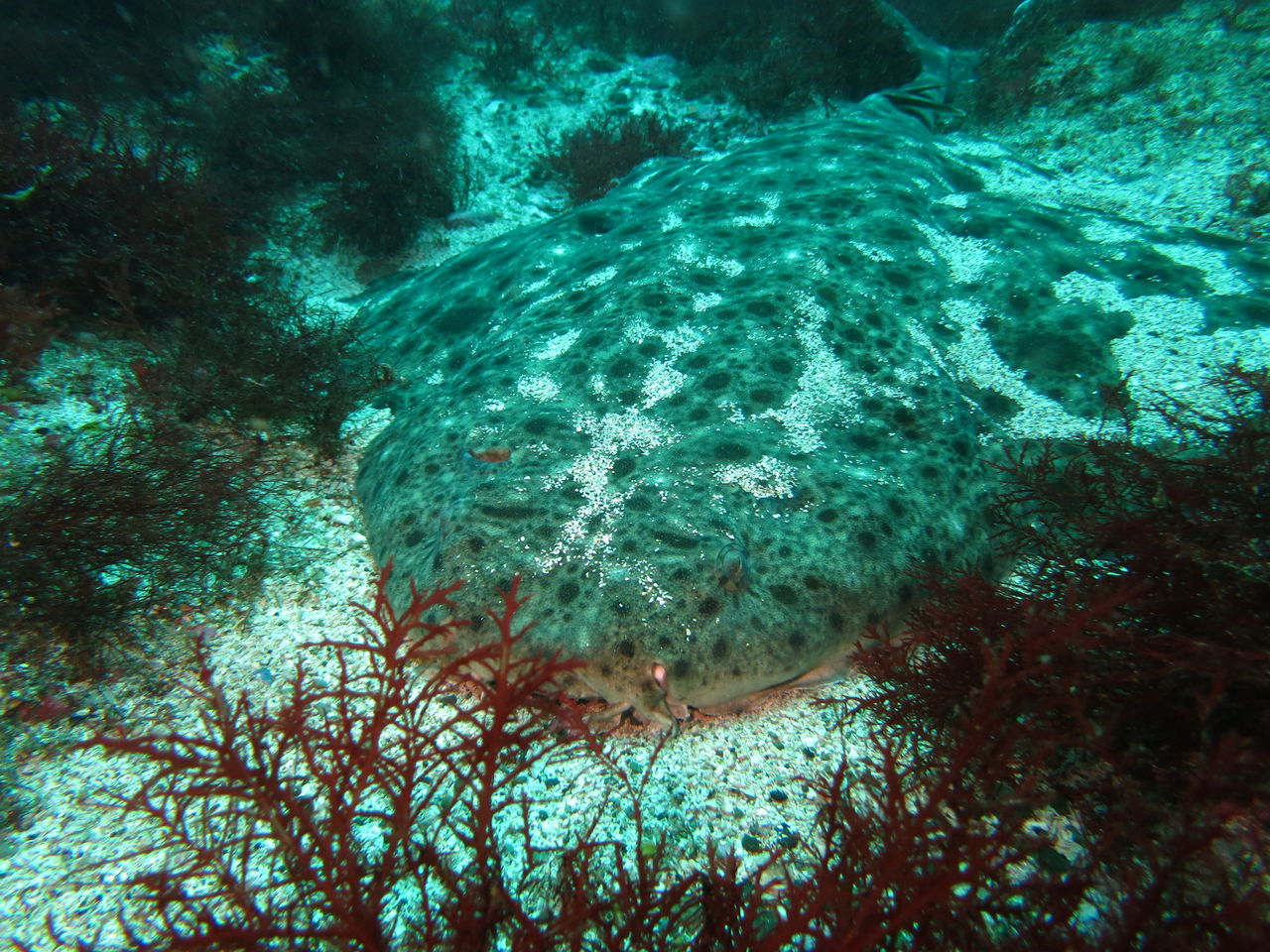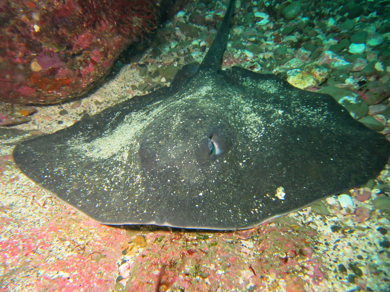 そのままハタンポ岩に移動しました、ヒゲダイ君達がバラバラにいました♪なんと、V字谷に行ったら1匹しかいません(゚Д゚≡゚д゚)エッ!?珍しい。。。戻るときにまた大きなアカエイがいました。