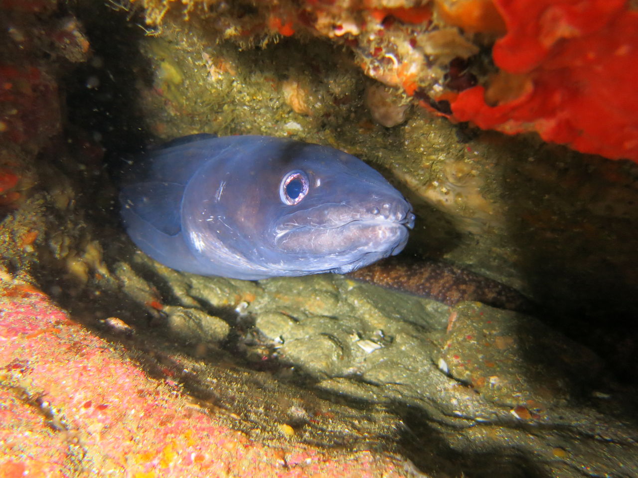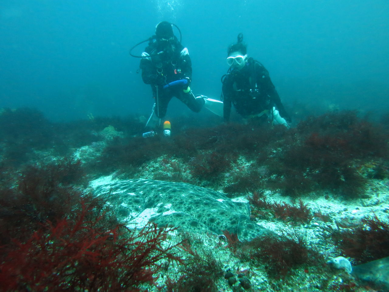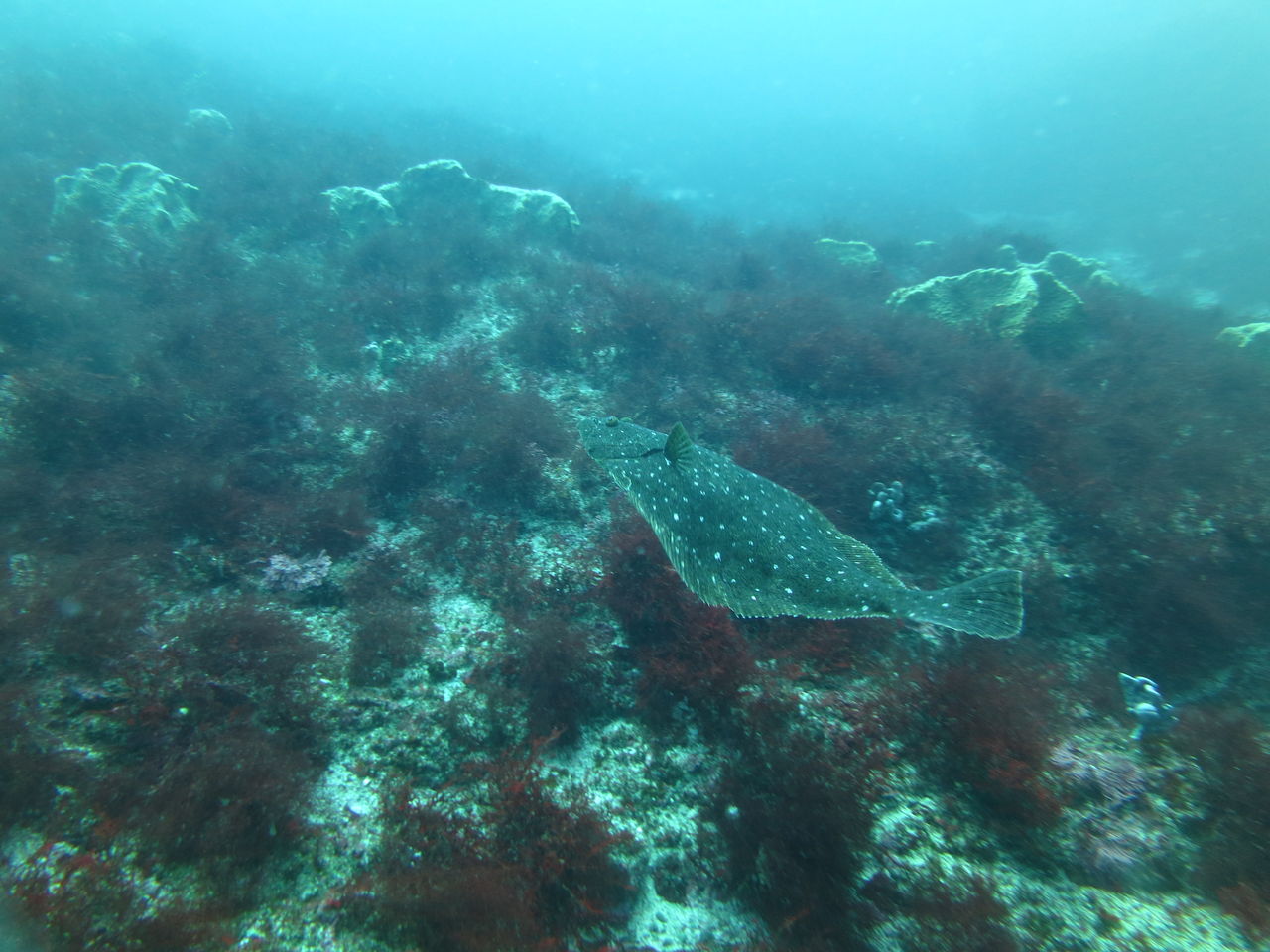ダイバーになついてて、近づいてくるのです。ハタンポ岩には大きなモロコが隠れていた。ちょっとお腹が大きかったです。珍しく大きな金色ヒラメもいました!!西川名は濁ってても迫力のある魚がたくさんいるからやっぱりいいです!