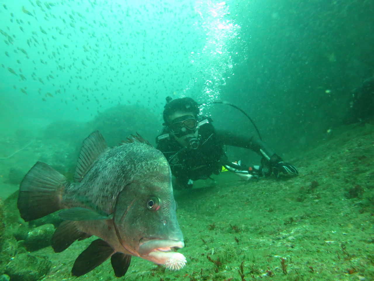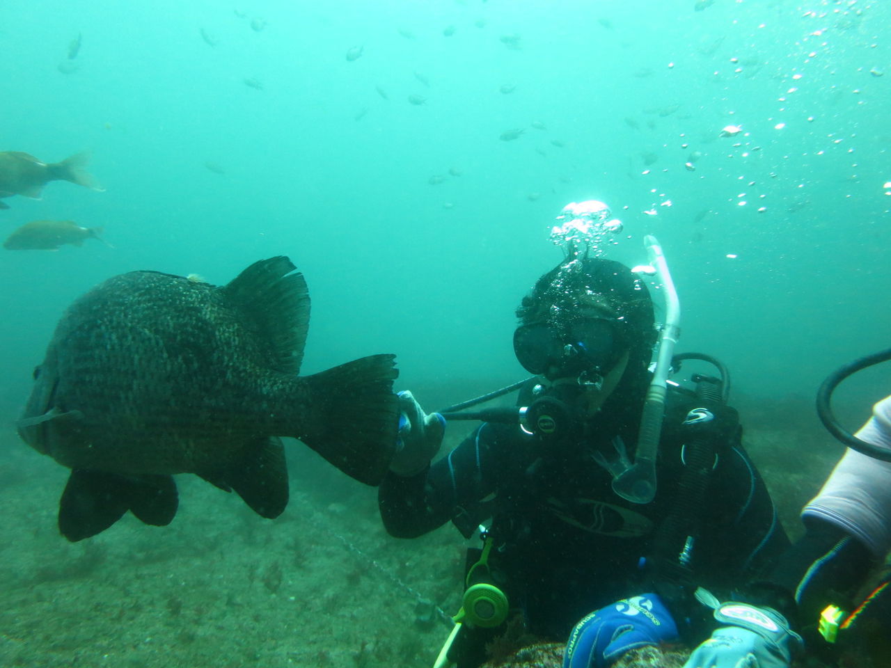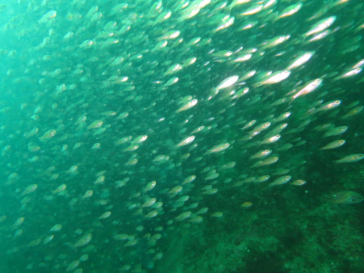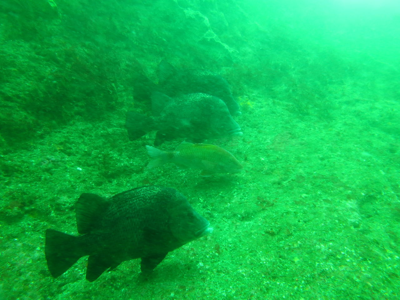 程よい流れの中V字谷を目指します。イサキがグッチャリ群れていました(*^_^*)スズメダイもたくさん☆ヒゲダイももちろんたくさん泳いでいます♪離れ根に移動すると泡好きのモロコさんが近寄って来てくれました。しばらく僕らの上でホバリング♪