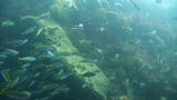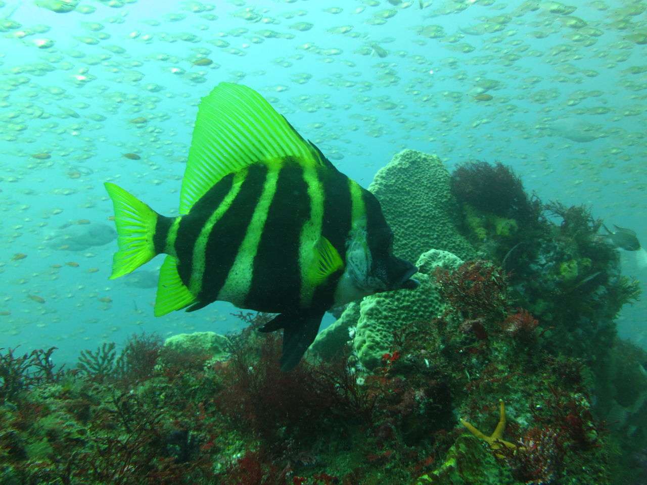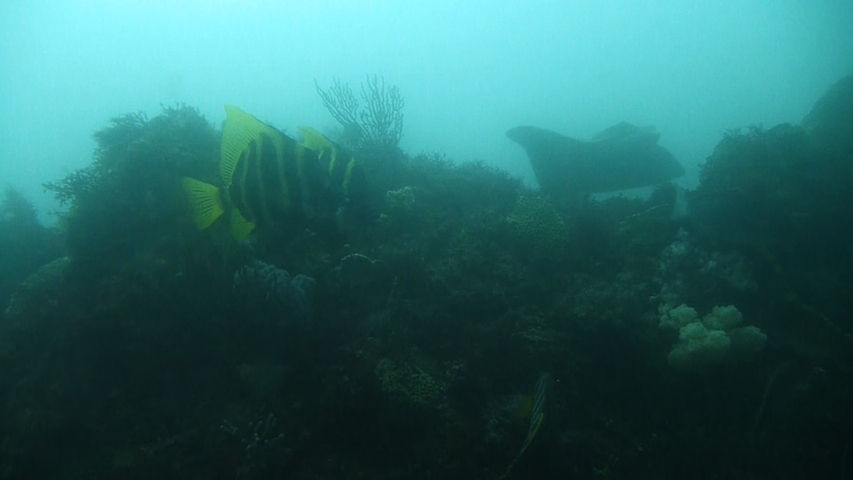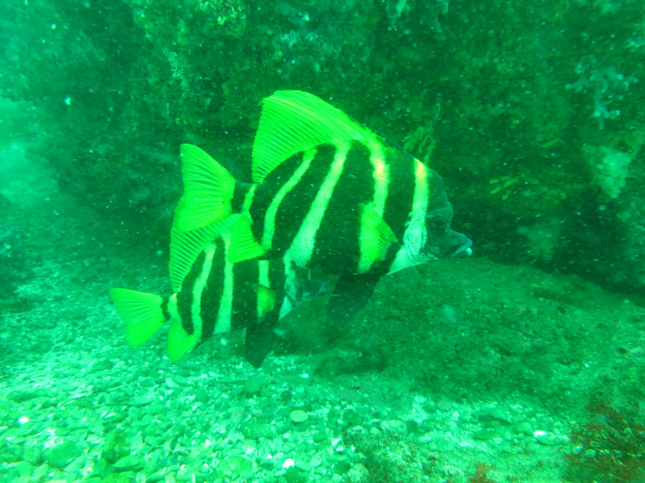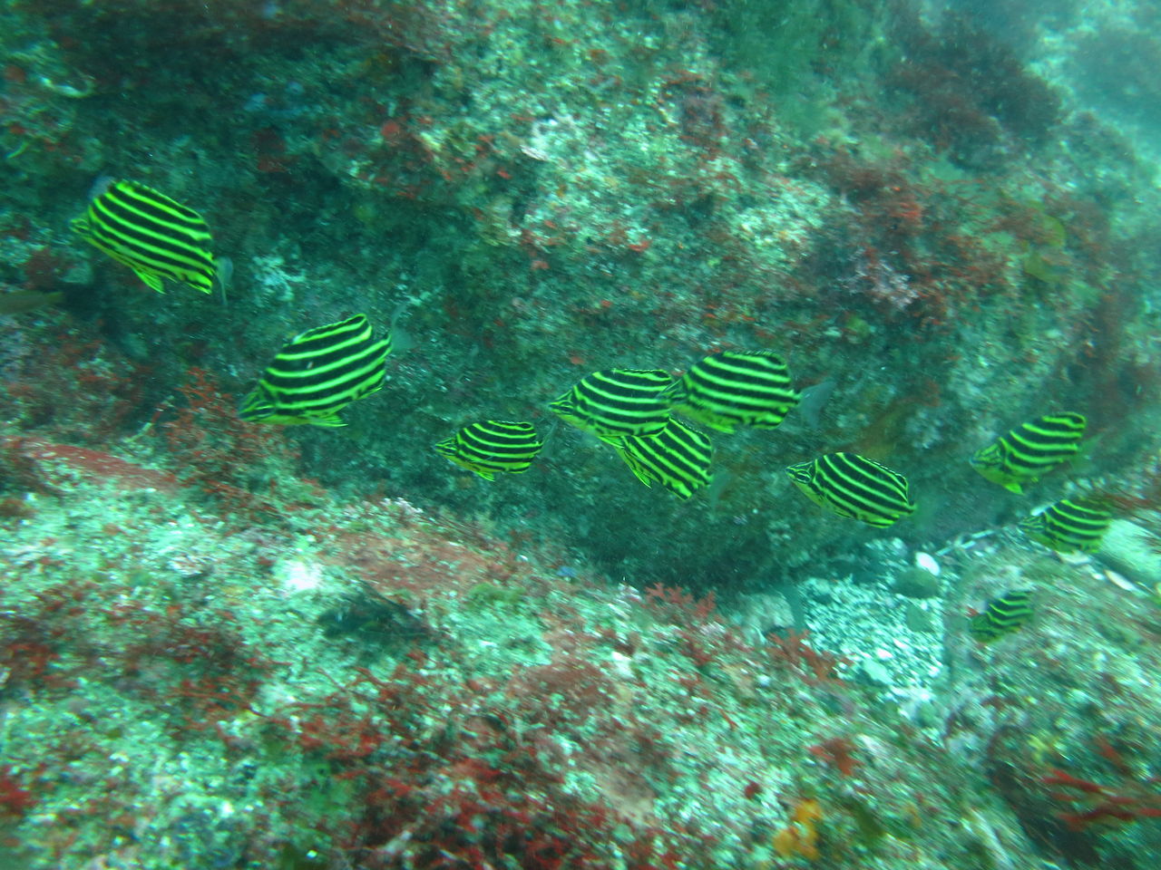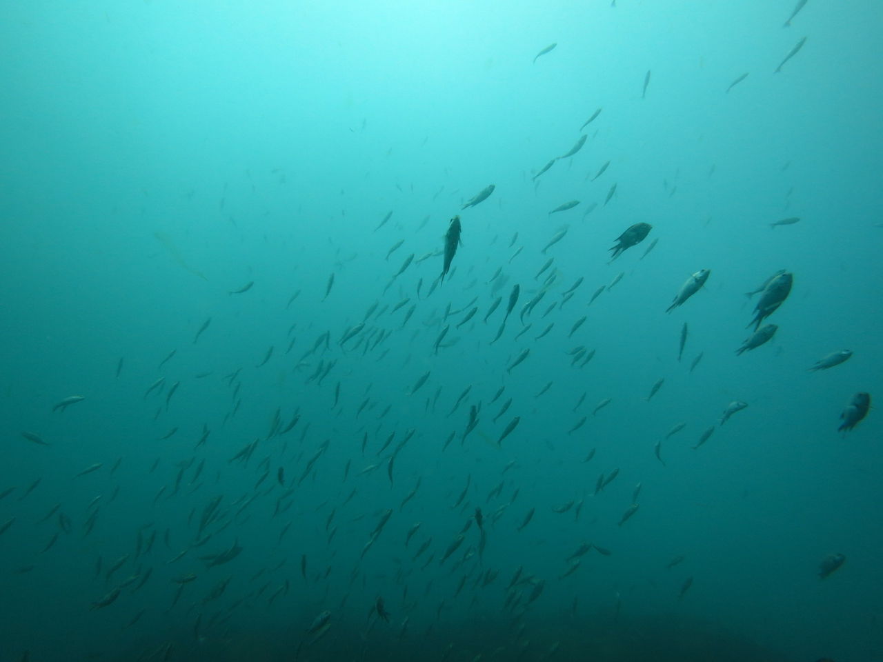 程よい流れの中V字谷を目指します。イサキがグッチャリ群れていました(*^_^*)スズメダイもたくさん☆ヒゲダイももちろんたくさん泳いでいます♪離れ根に移動すると泡好きのモロコさんが近寄って来てくれました。しばらく僕らの上でホバリング♪