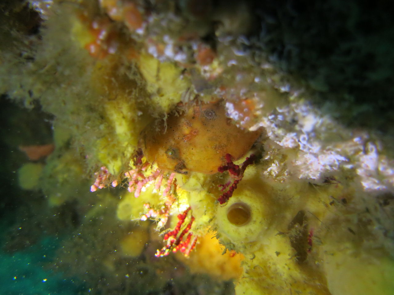 モロコ岩の海面にはマルツノガニが二匹もかくれていました。