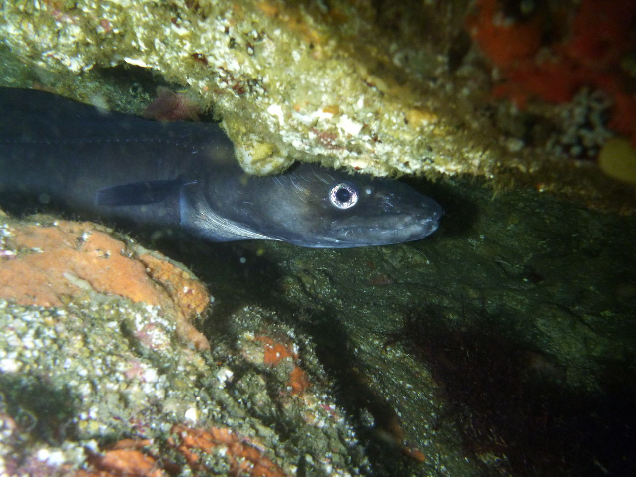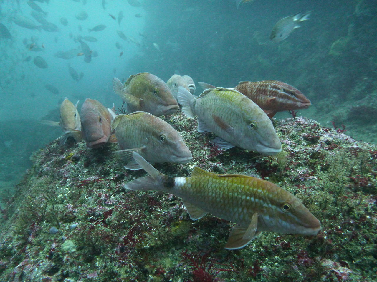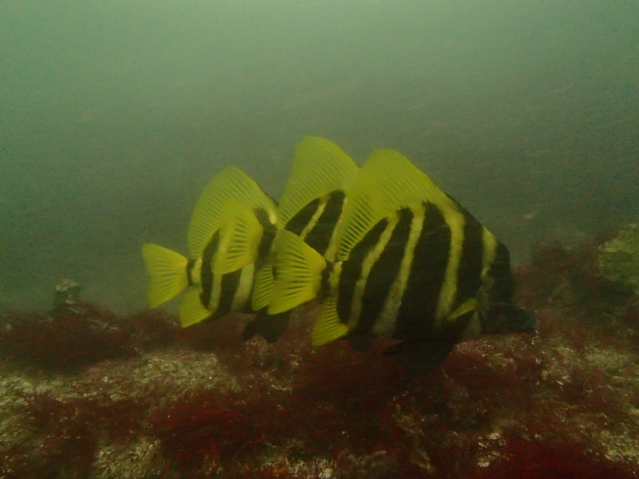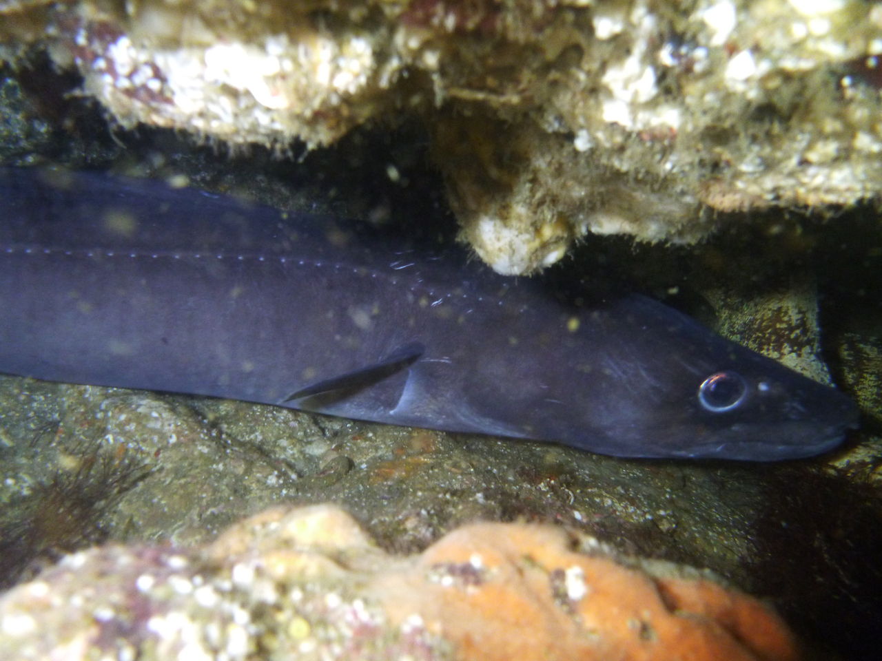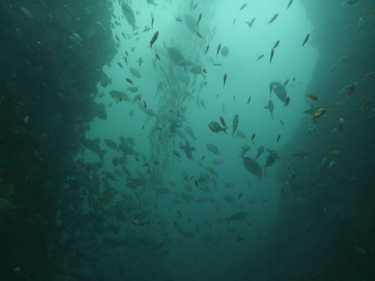 2本目もAポイントからです。北からの流れですが、意外と緩やかなので、南側のエリアを回りました。中層を気にしながら移動しましたが、見通しがよくないので、何かを見つけても、よく観察することが出来ないのが残念です。V字谷は、閑散とした感じでしたが、その上をイサキの群れが、列を成していました。