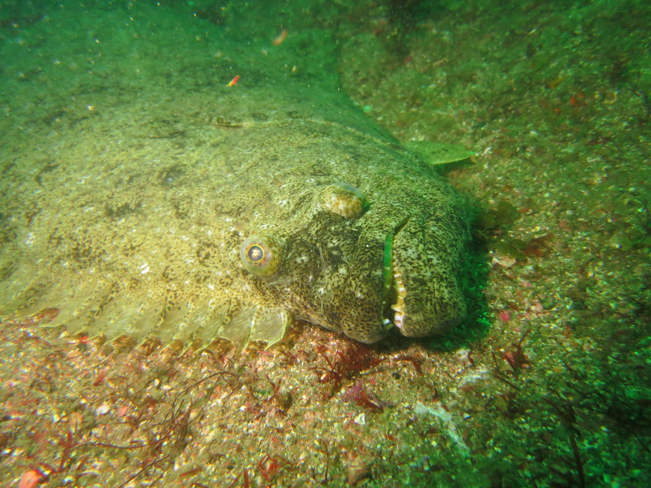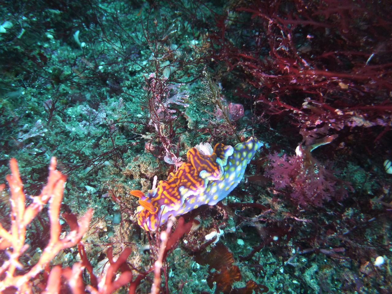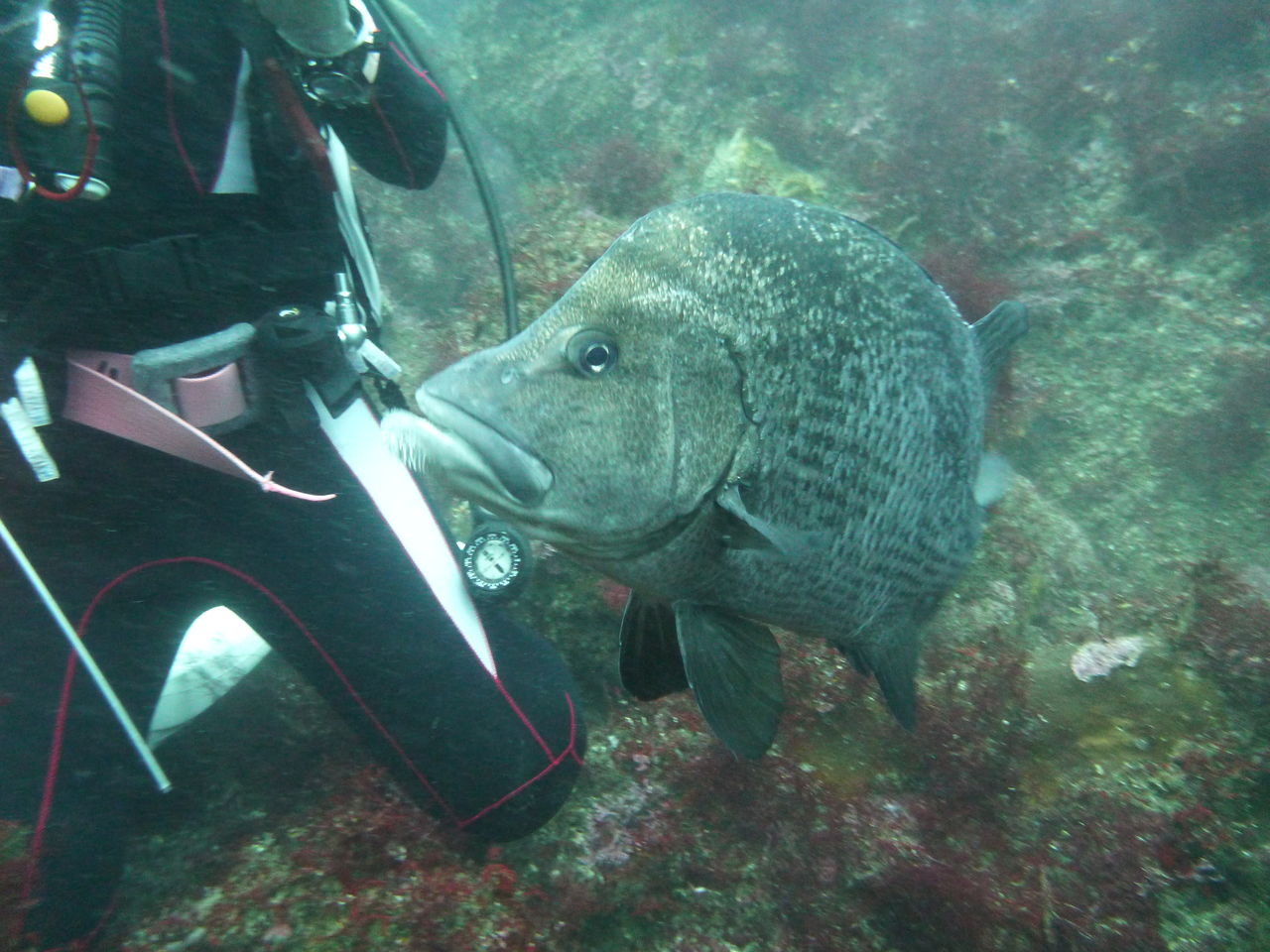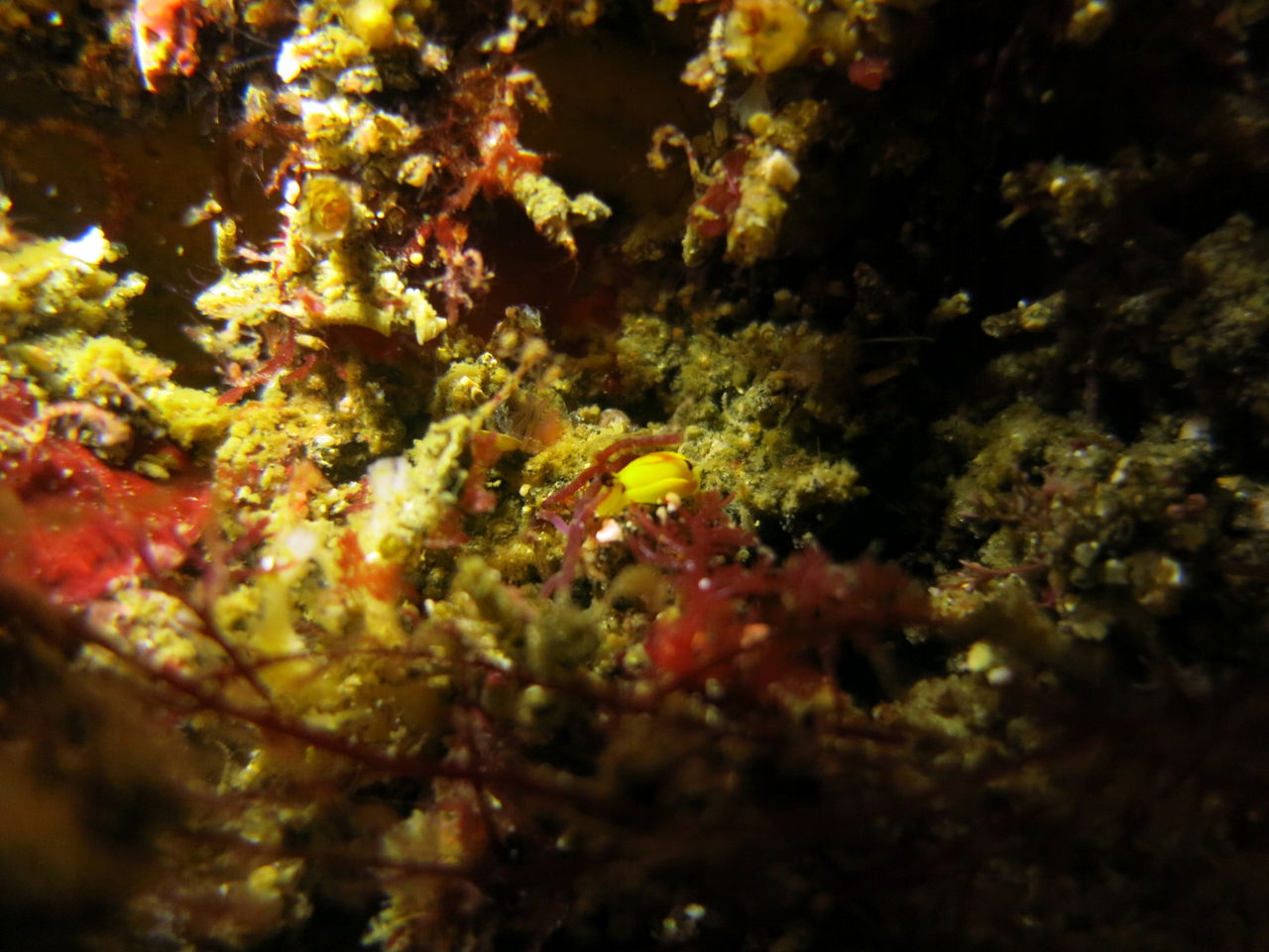 1本目はAポイントからです。中層は濁っていますが、水底付近はそれほどひどくありません。ただ、少しひんやりとします。北からの緩い流れなので、北側のエリアを回ります。トビエイとの遭遇を期待しましたが、今日は不発。しかし、他のスタッフは目撃したそうなので、すぐにチャンスは巡ってくるでしょう。エキジット時、いい潮が入ってきたようで、表層の水が青く、暖かかったです。早くきれいな水と入れ替わって欲しいです。