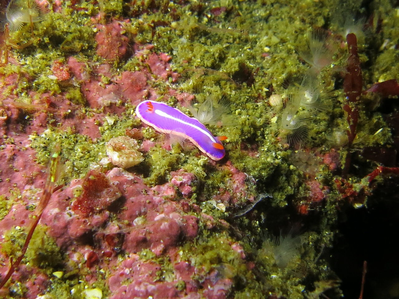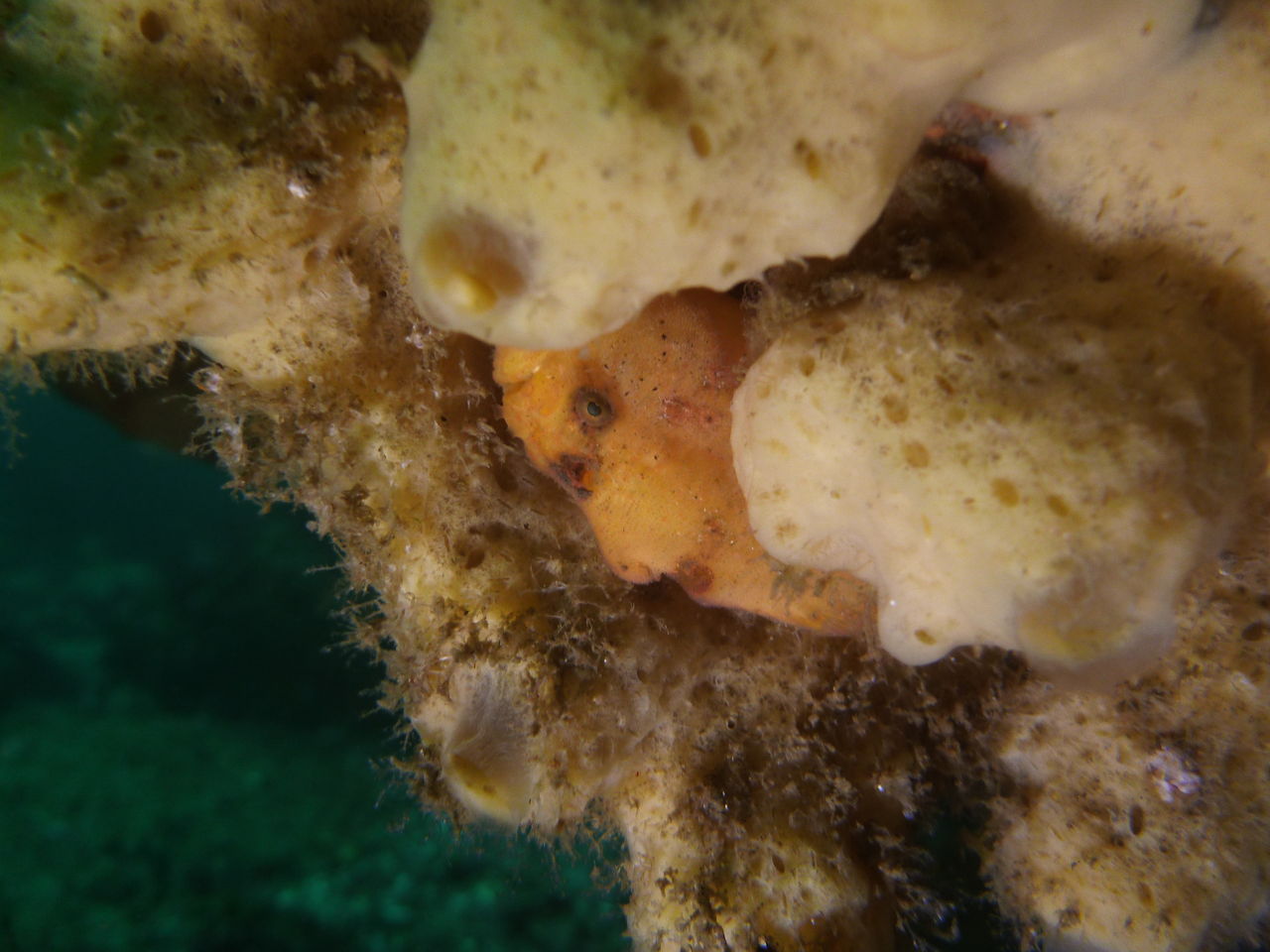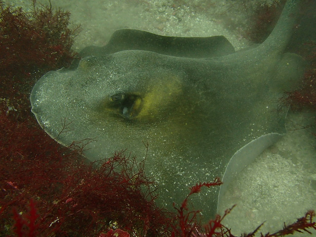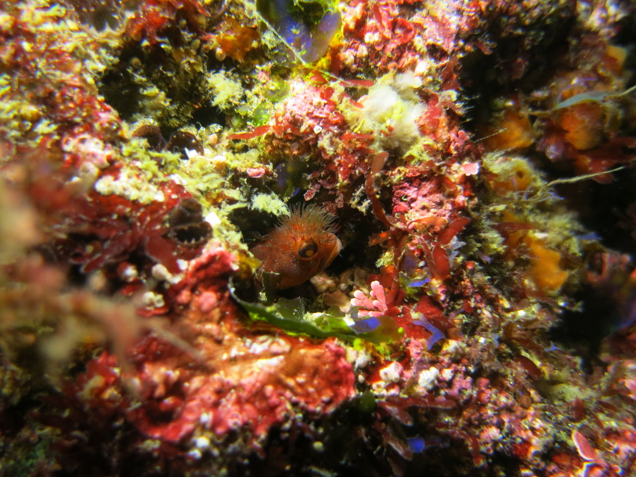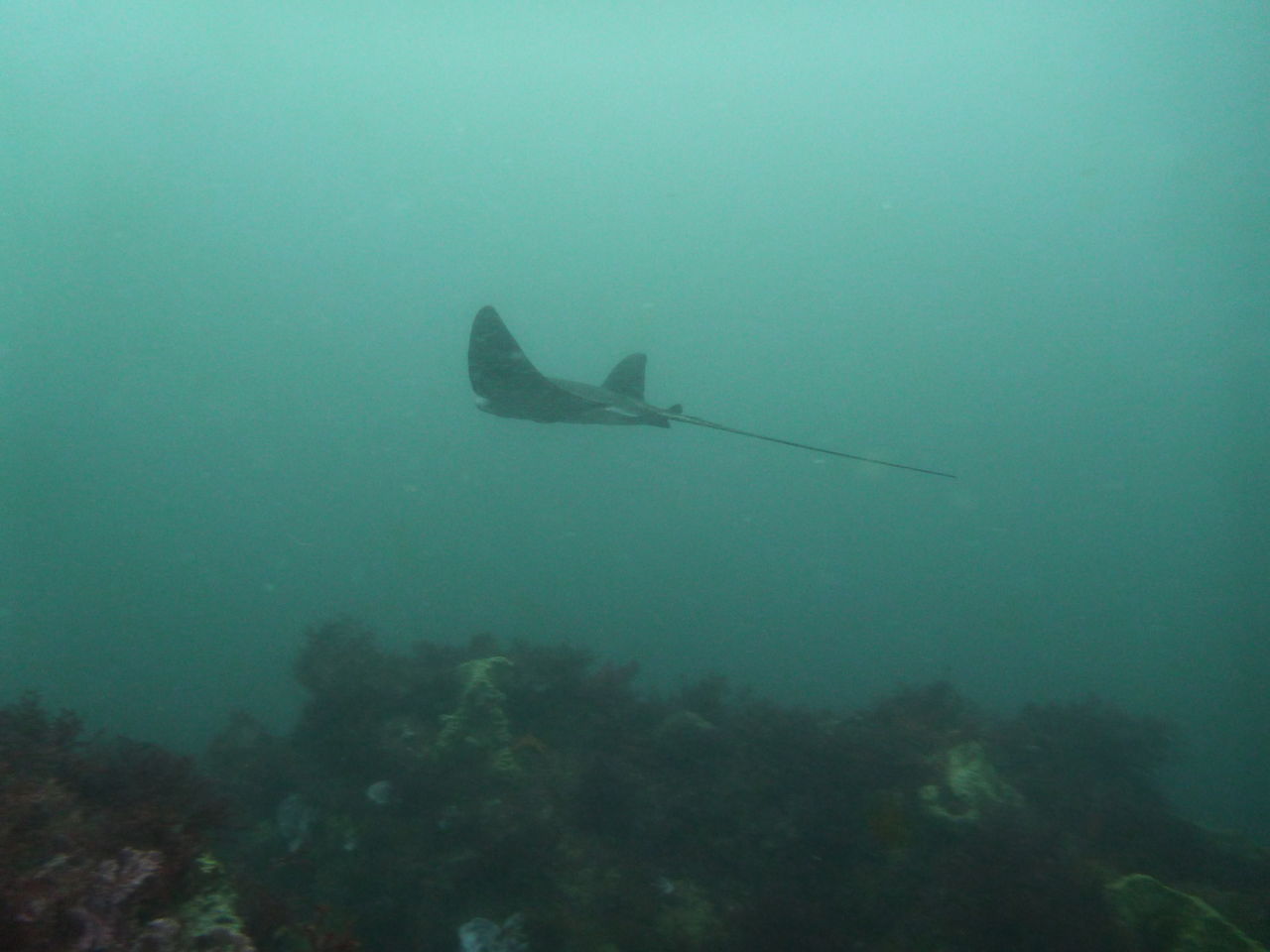 1本目はAポイントからです。中層は濁っていますが、水底付近はそれほどひどくありません。ただ、少しひんやりとします。北からの緩い流れなので、北側のエリアを回ります。トビエイとの遭遇を期待しましたが、今日は不発。しかし、他のスタッフは目撃したそうなので、すぐにチャンスは巡ってくるでしょう。エキジット時、いい潮が入ってきたようで、表層の水が青く、暖かかったです。早くきれいな水と入れ替わって欲しいです。