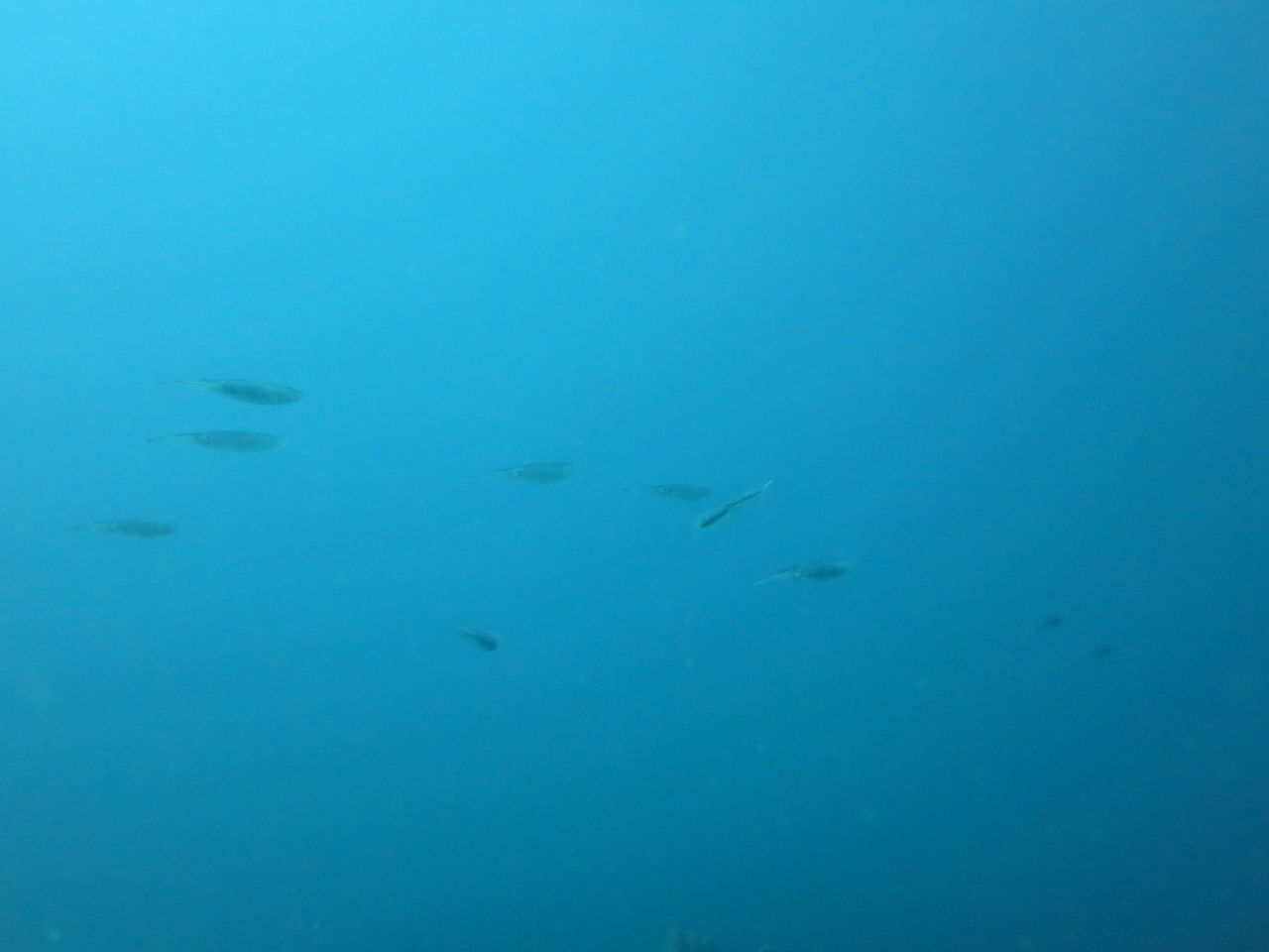 エントリーと同時にヒラマサが5匹泳いでいました☆ すげー!! そのままフワフワ泳いでCポイントへ行き、そこからさらにBポイントまで泳ぎます。ツノダシが増えたかな??きれいな体でヒラヒラとポイントの下を泳いでいます。そこから少し泳いでトビエイの根へ。マダイがゴロゴロ泳いでいます。 「今日もきれいな海だなぁ〜」って思いながらポイントに帰るとアオリイカが大群で泳いでいました!ほ〜☆綺麗だなぁ〜♪