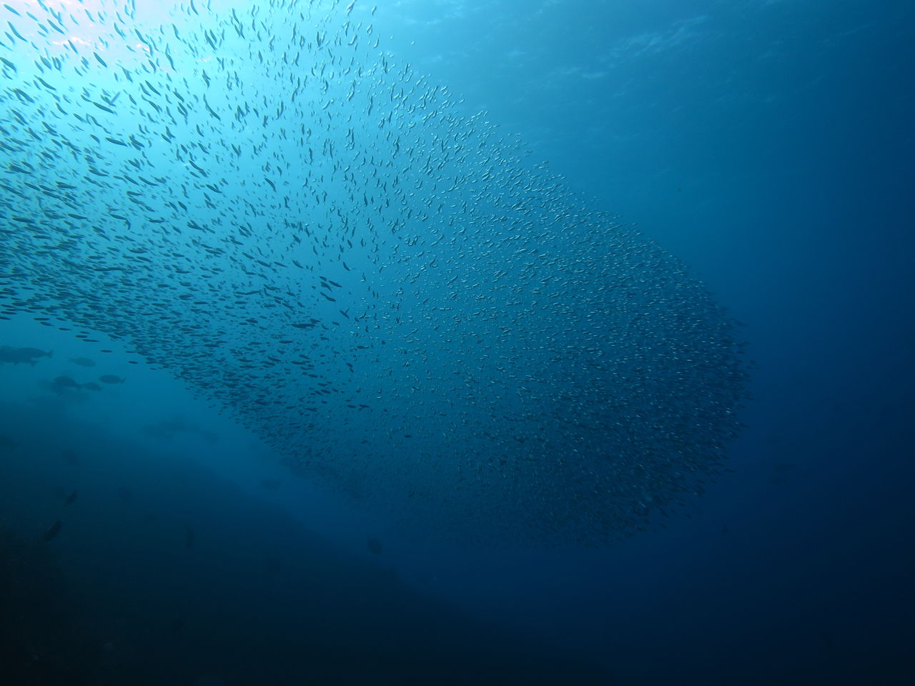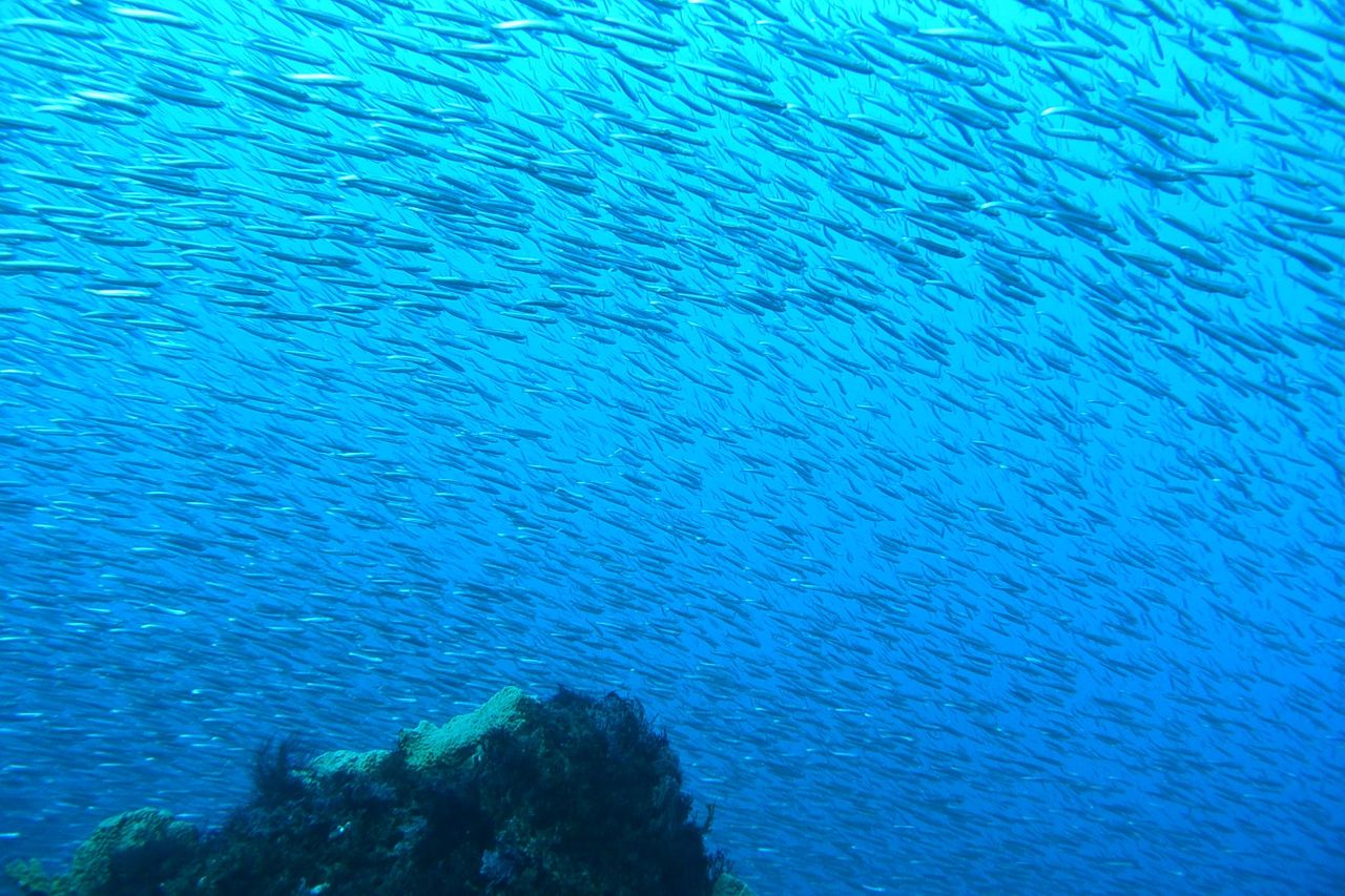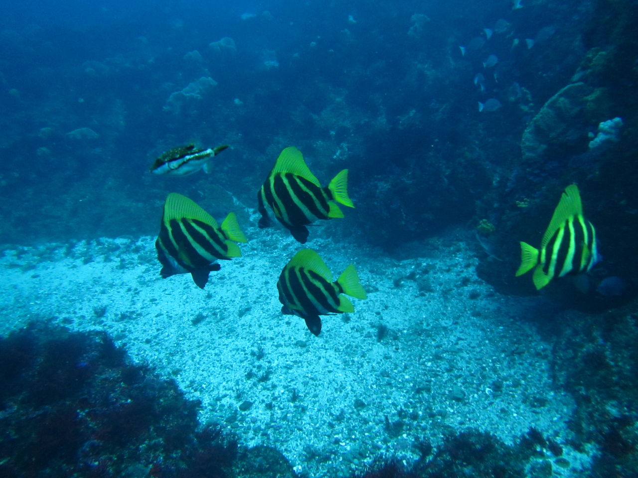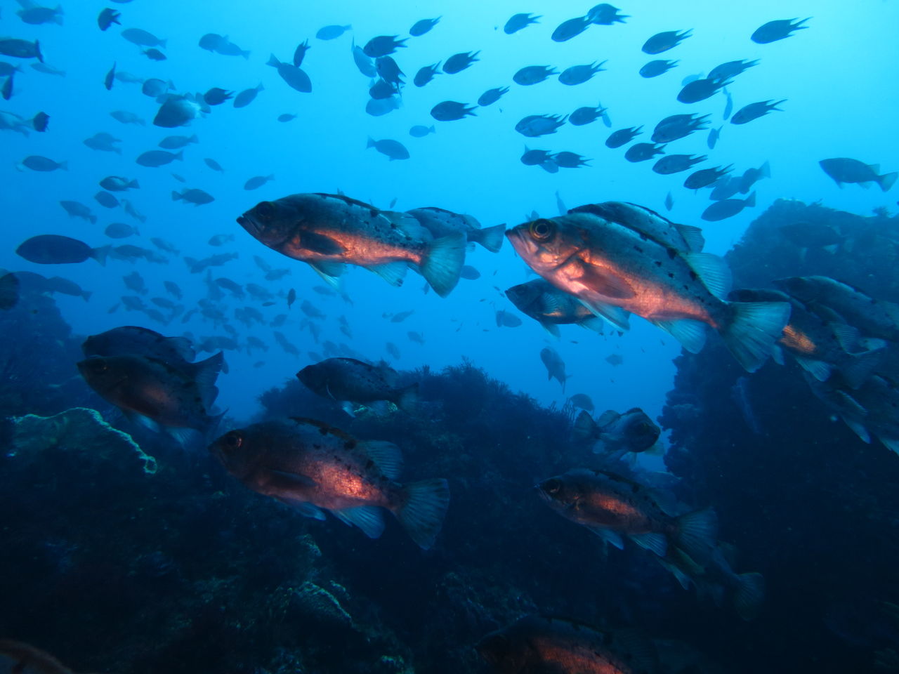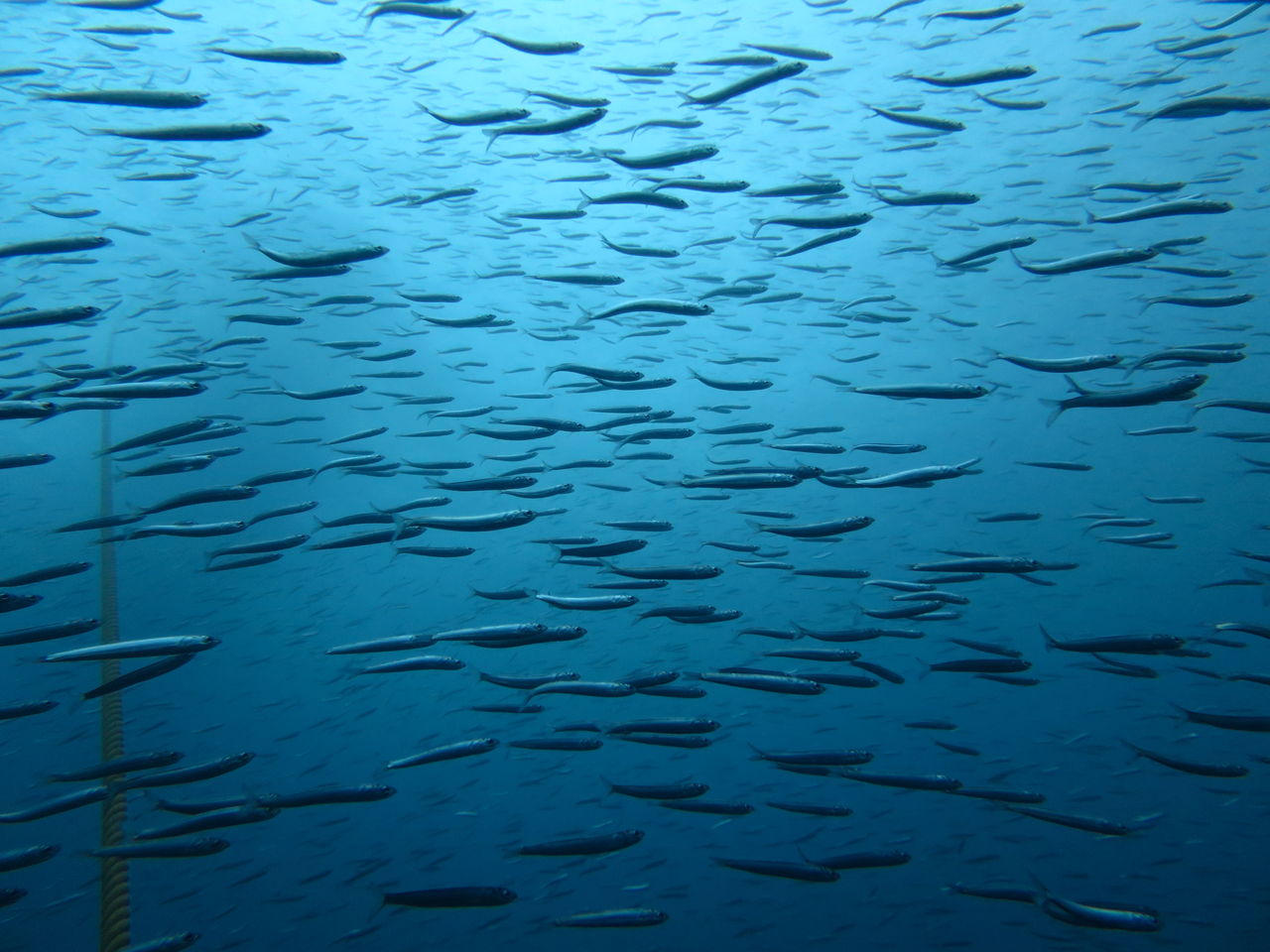 そのまま離れ根へ、水面付近にはニザダイがいっぱい。