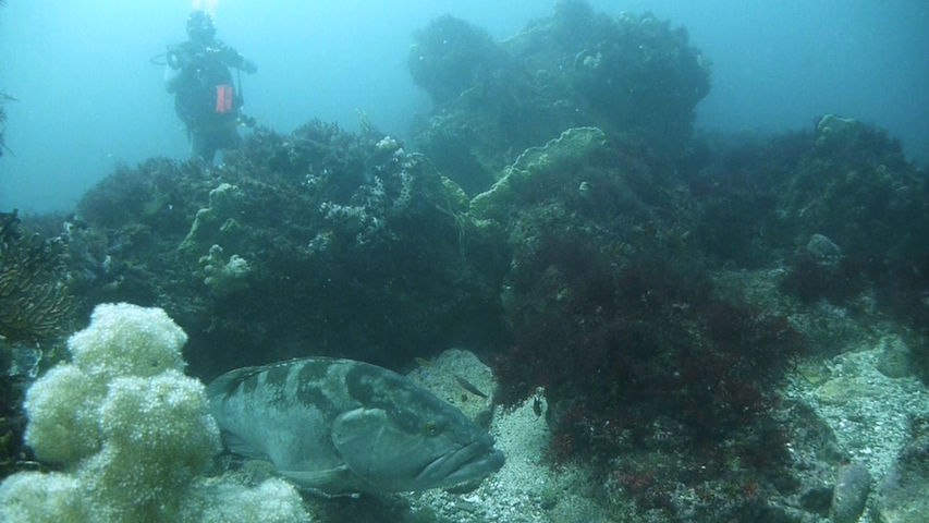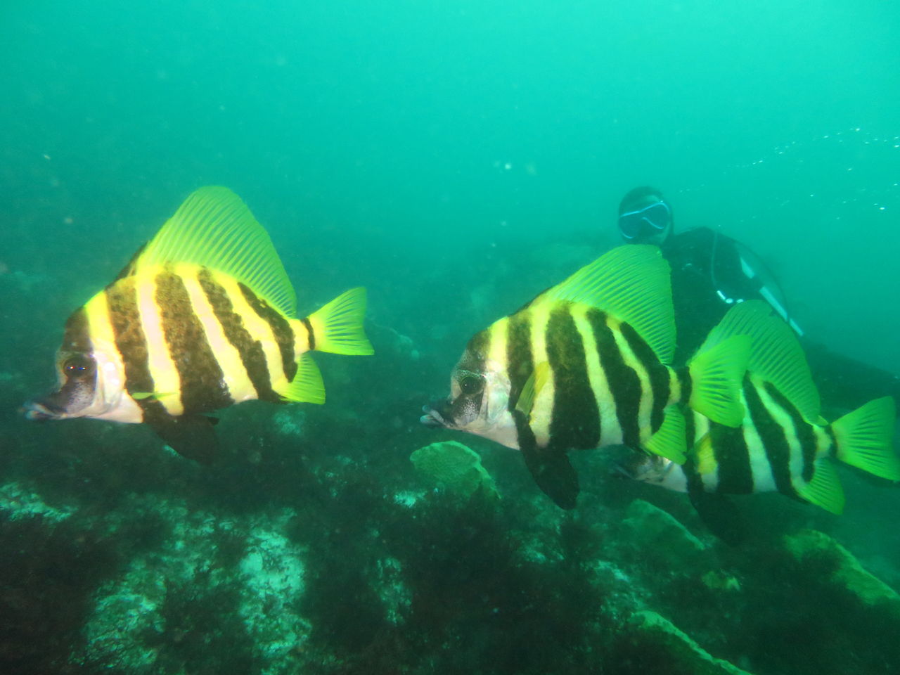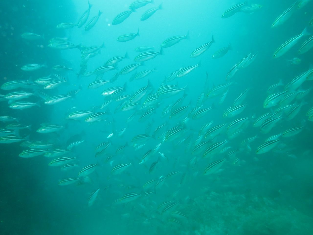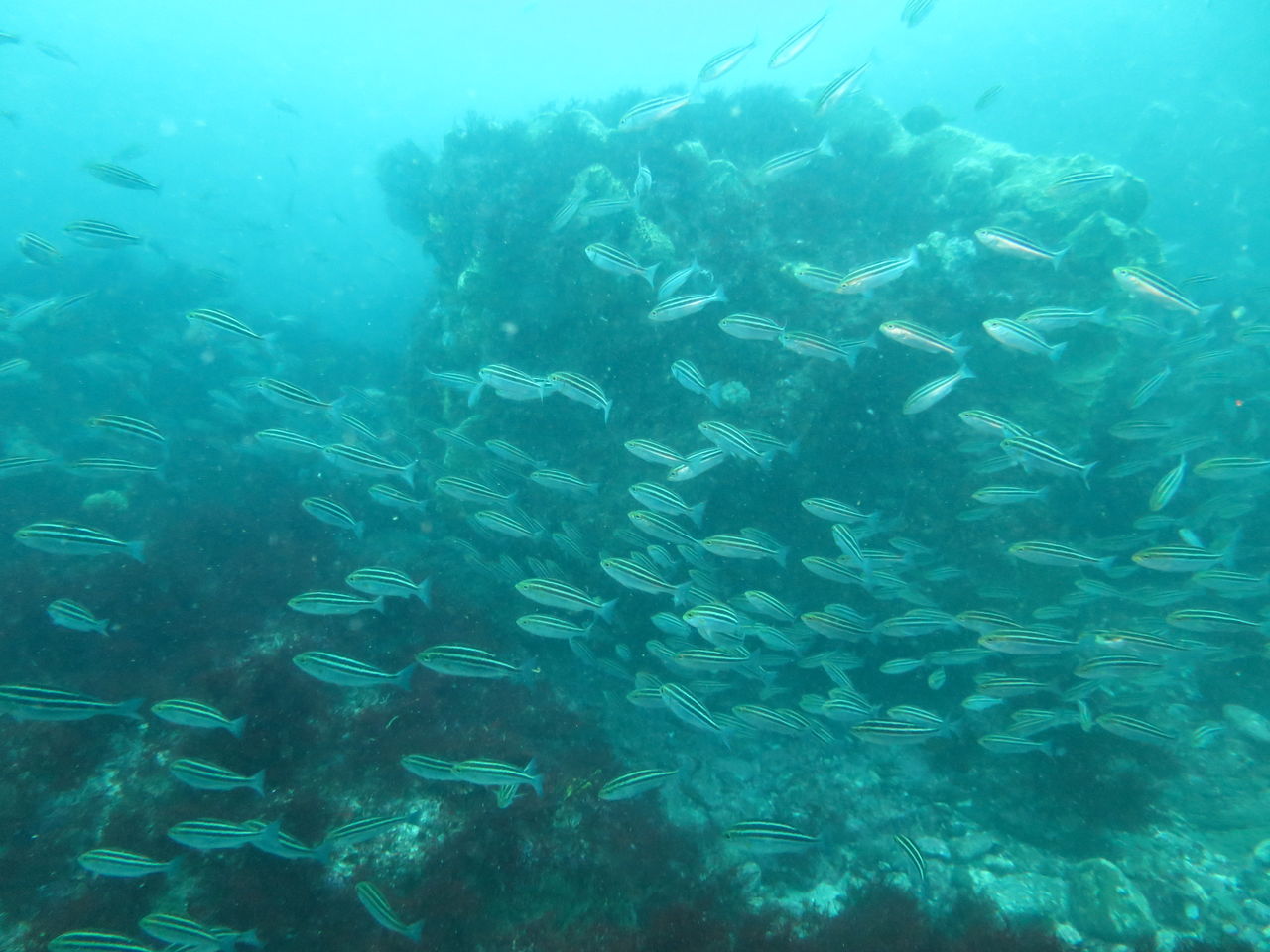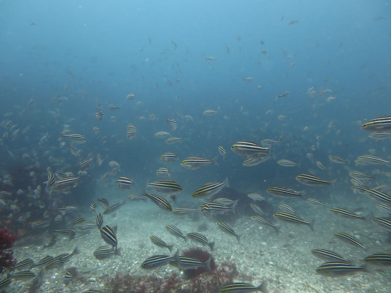 大根の南側沿いを進み、ヒメジやヒゲダイ、マダイ、キンギョハナダイ、イサキと