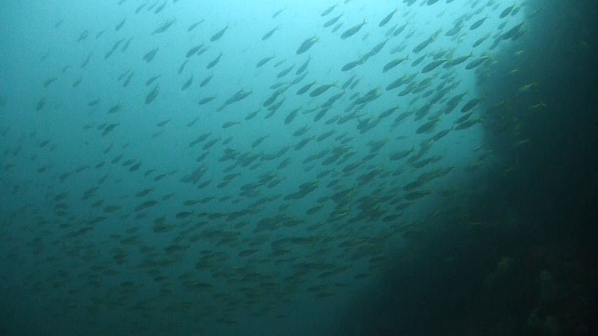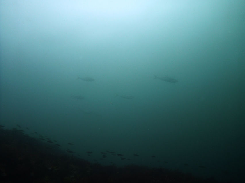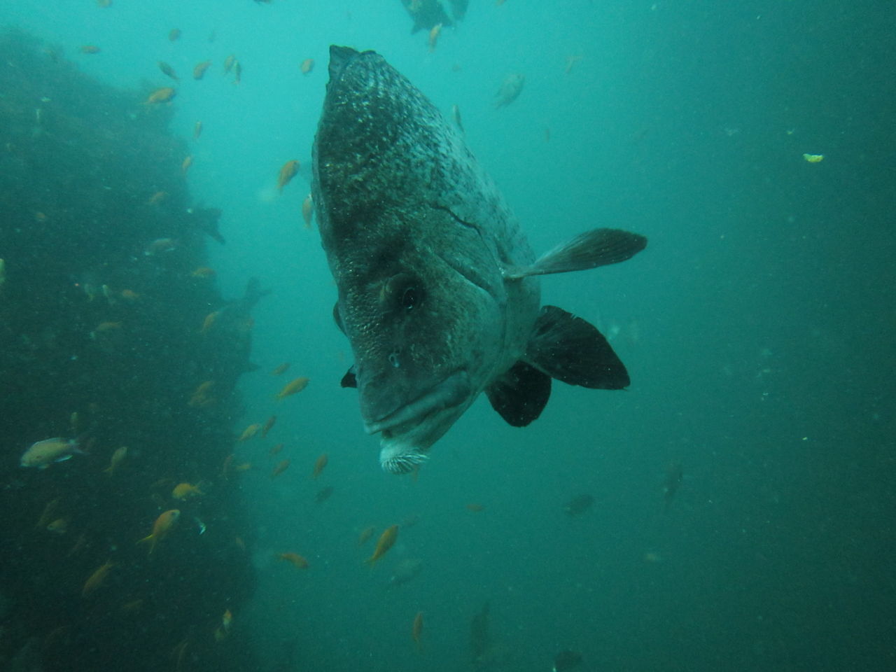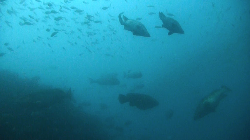 魚たちも中層に集まっていました。私達もヒゲダイ、マダイ、イシダイに並んで中層を移動しました。