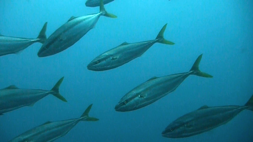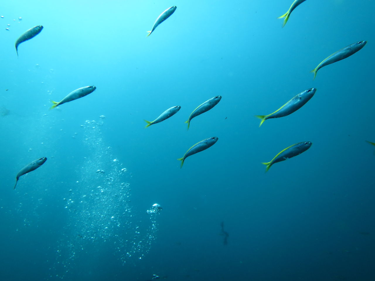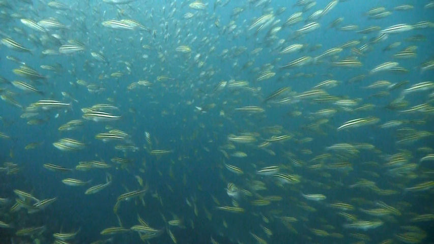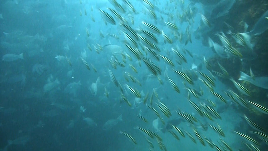 大根方面に向かう途中で、イサキの群れに囲まれました。