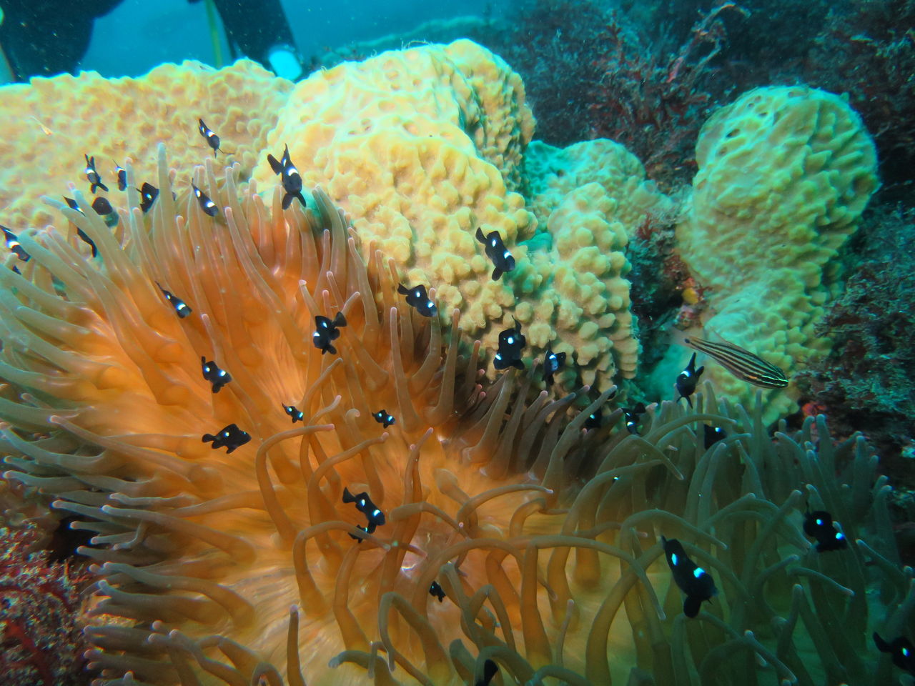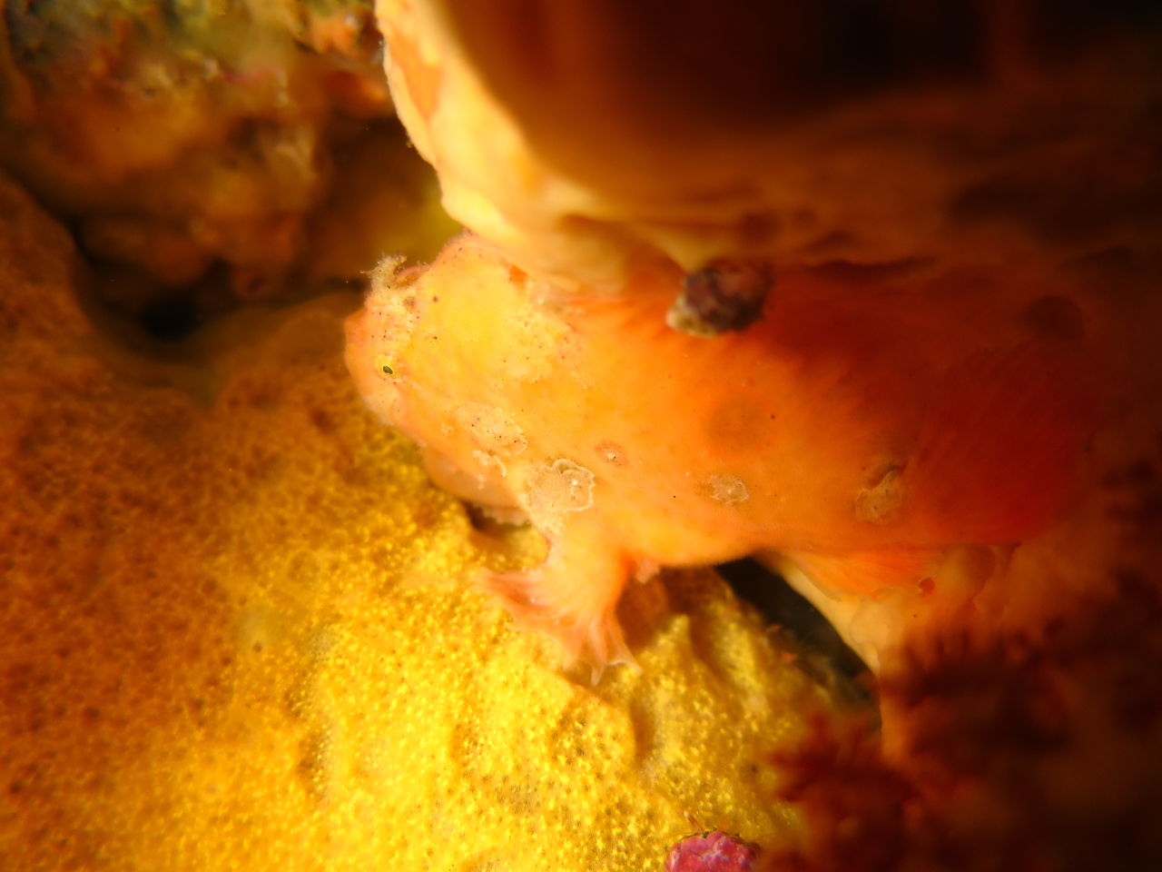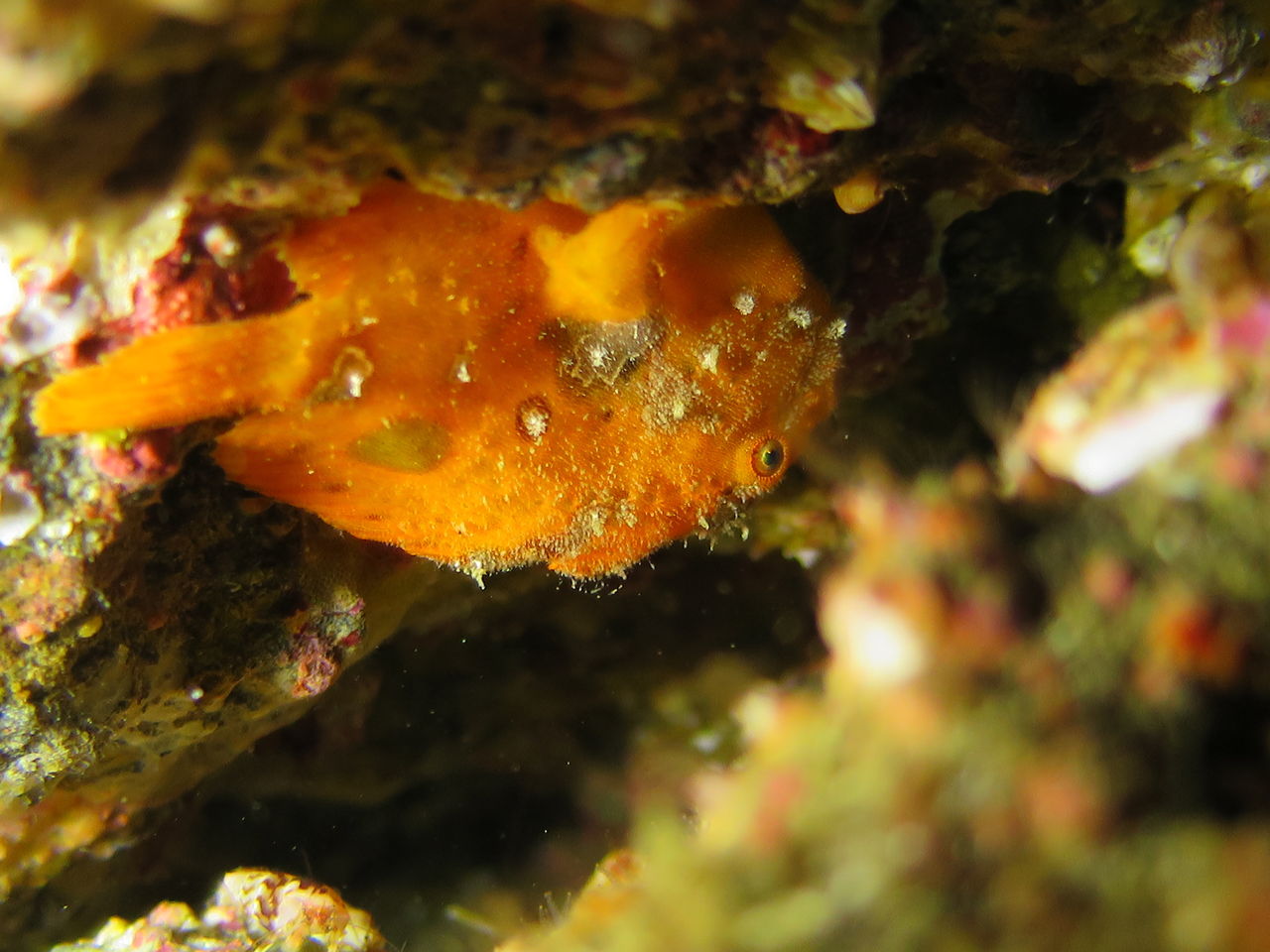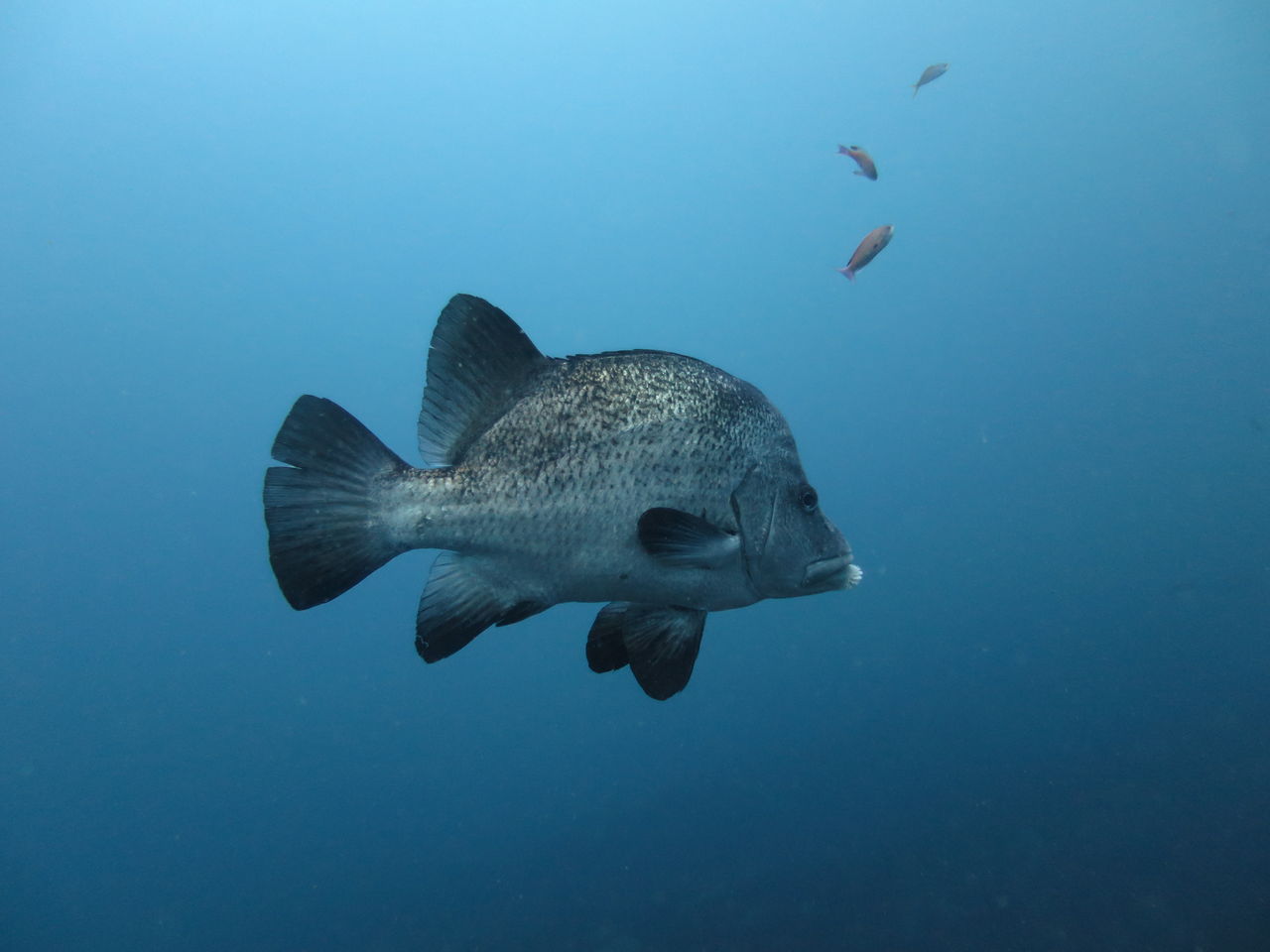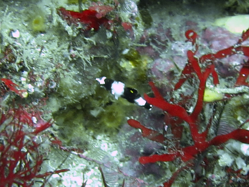 Aポイントからエントリー 水面付近は多少濁り気味でしたが、水底まで行くととってもきれいです。水温は20.9℃流れは北からやや流れています。 サメ穴に向かうとテングダイが6匹も待っていてくれました。サメ穴の北側にはモロコが2匹泳いでいます。穴の中にはネコザメ☆今日は2匹入っていました。その後流れに乗ってモロコ岩前までピューっと流れてきました。Aポイントの下にケサガケベラの幼魚が一匹泳いでいます。