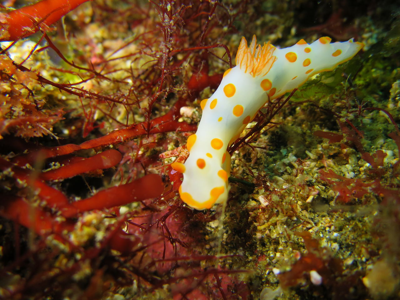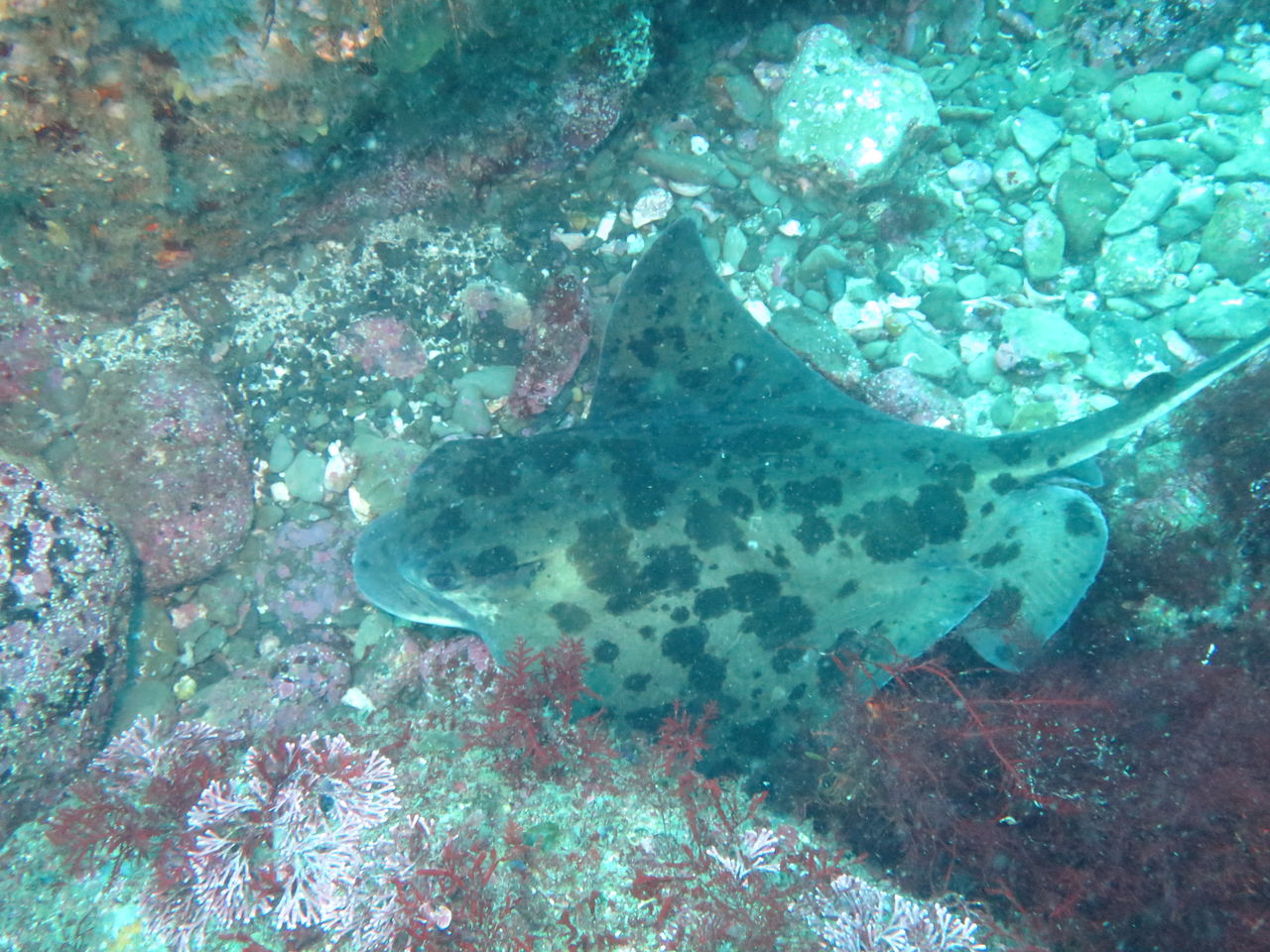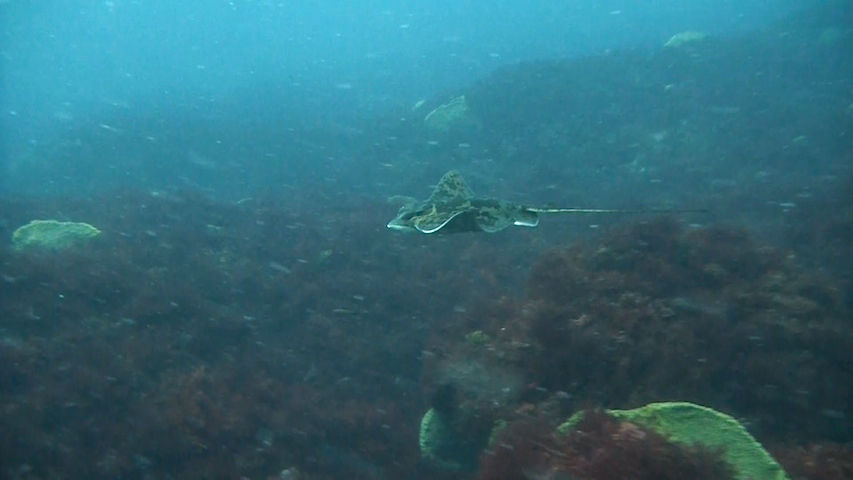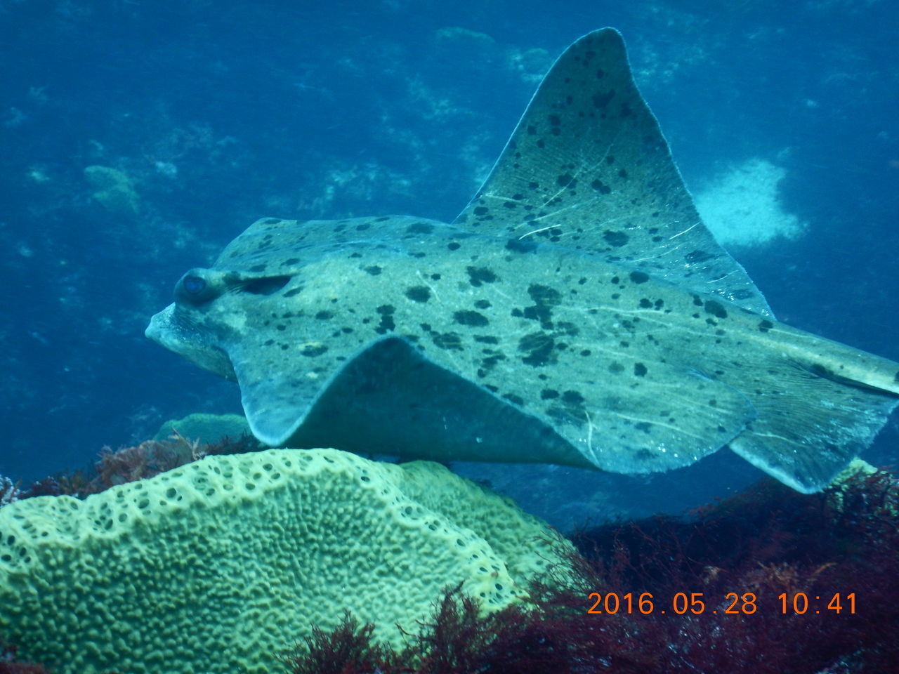 Aポイントからエントリー やや逆潮が残っていたので北へ、トビエイの根を経由してCポイントへ、中層にはメジナがいっぱい泳いでいます。大根の上を越えると大きなモロコがお出迎えしてくれました。