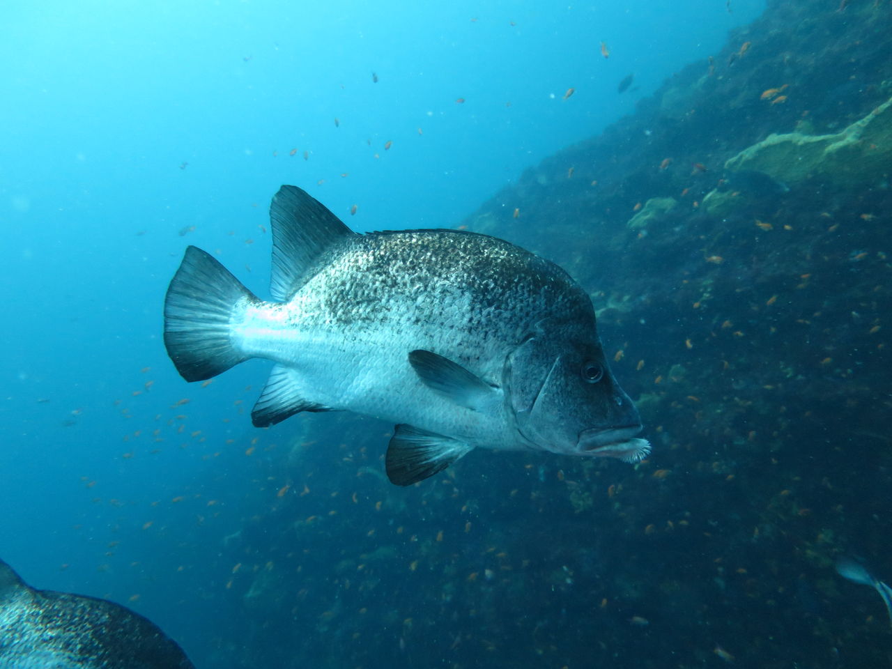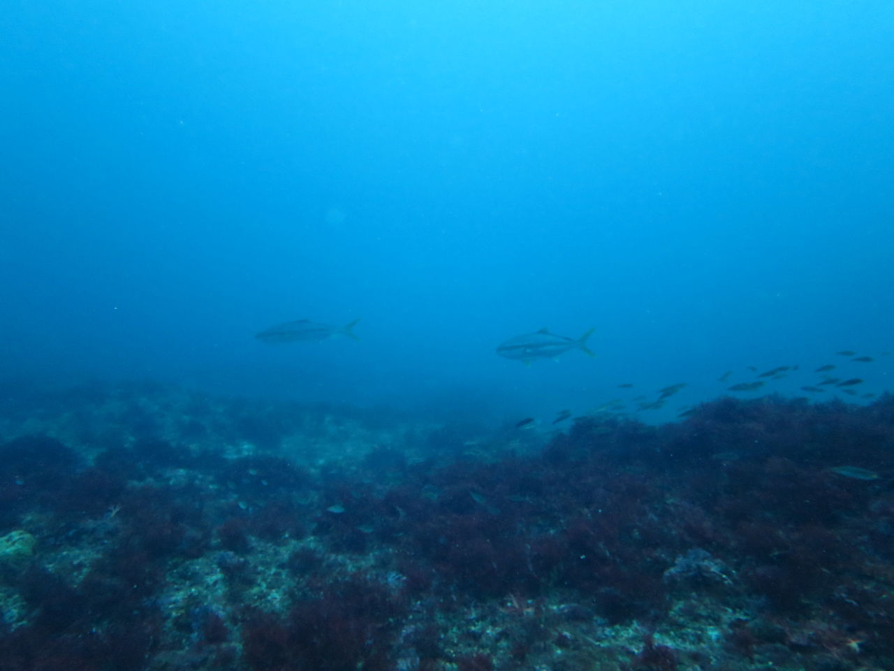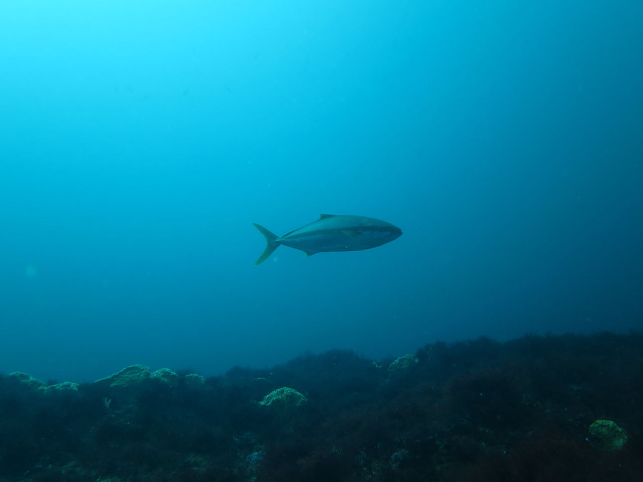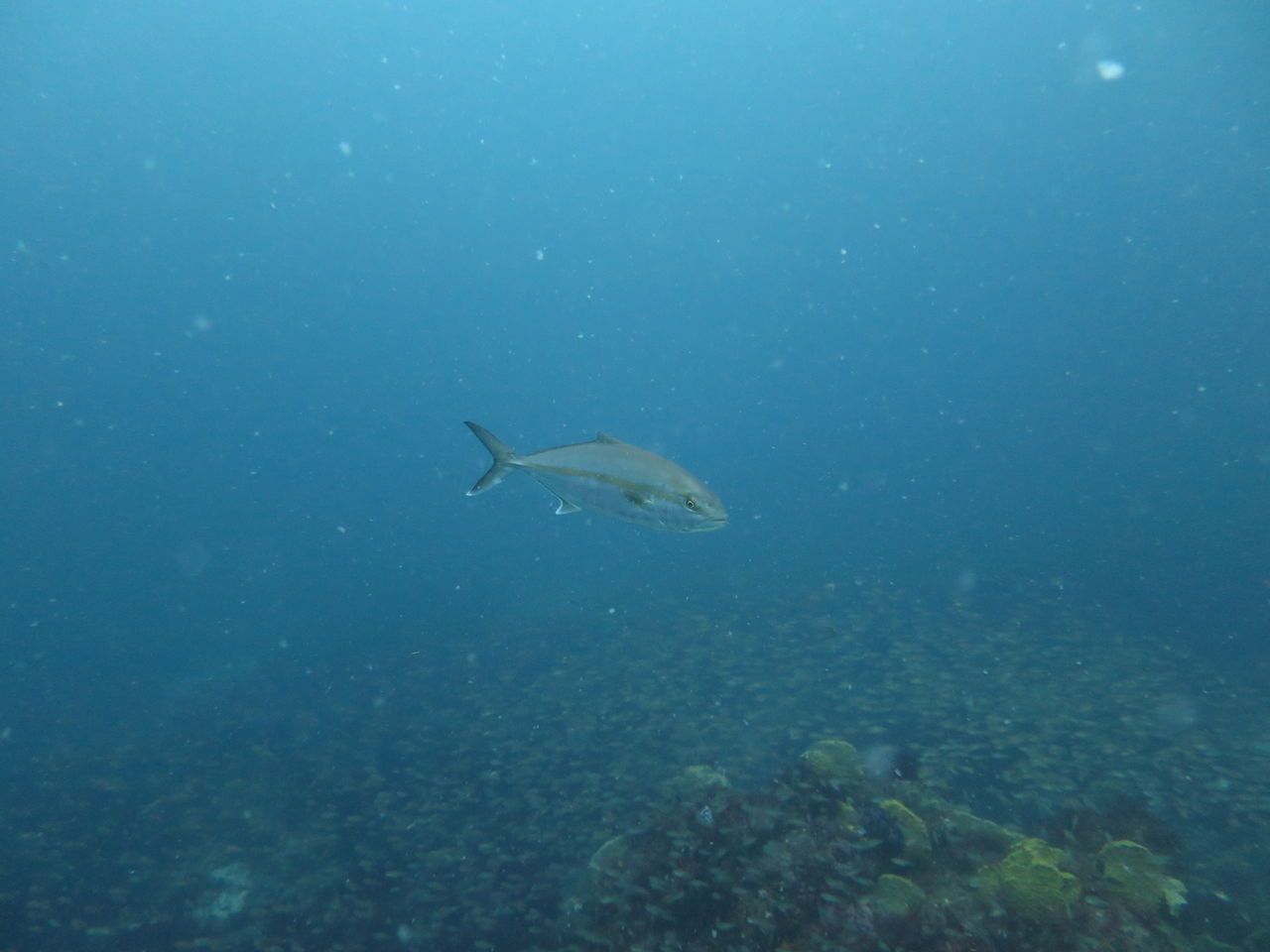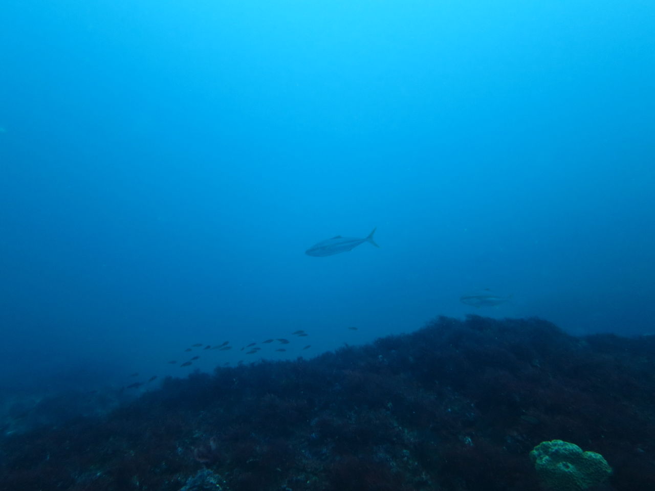Aポイントからエントリー やや逆潮が入っています。モロコ岩と三角岩にはネンブツダイの群れでビッシリ。西ノ山を越えると一匹のヒラマサが猛スピードで逃げていきました。それを追う様に離れ根の南へ。タカベやイワシの群れがぐっちゃりと泳いでいます! トク根の方でヒラマサが6匹ほど泳いでいるのが見えみましたので。ゆっくり近づいていくと4匹ほど戻ってきてくれました! 流されながら離れ根へ行くとまたもう一匹のヒラマサがおよいできました。