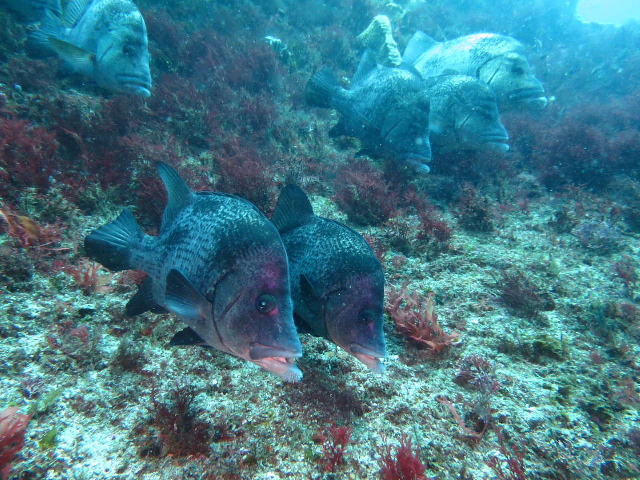 もう一度離れ根を越えていきますが、ちょっと静かだったのでV字谷へ。ヒゲダイは9匹ぐらいが谷の中でやすんでいまそた。イサキの壁も段々とでかくなってきています。