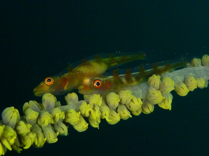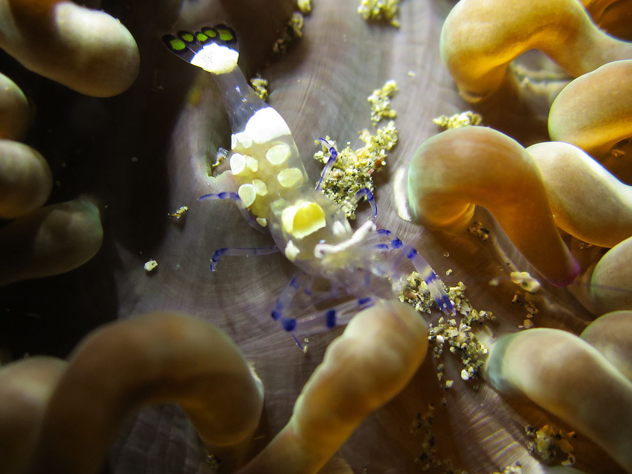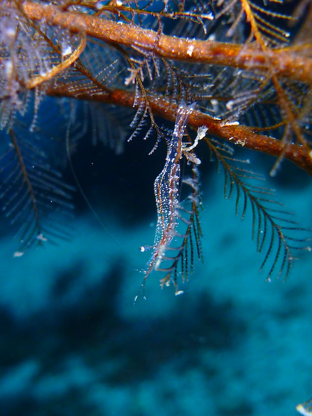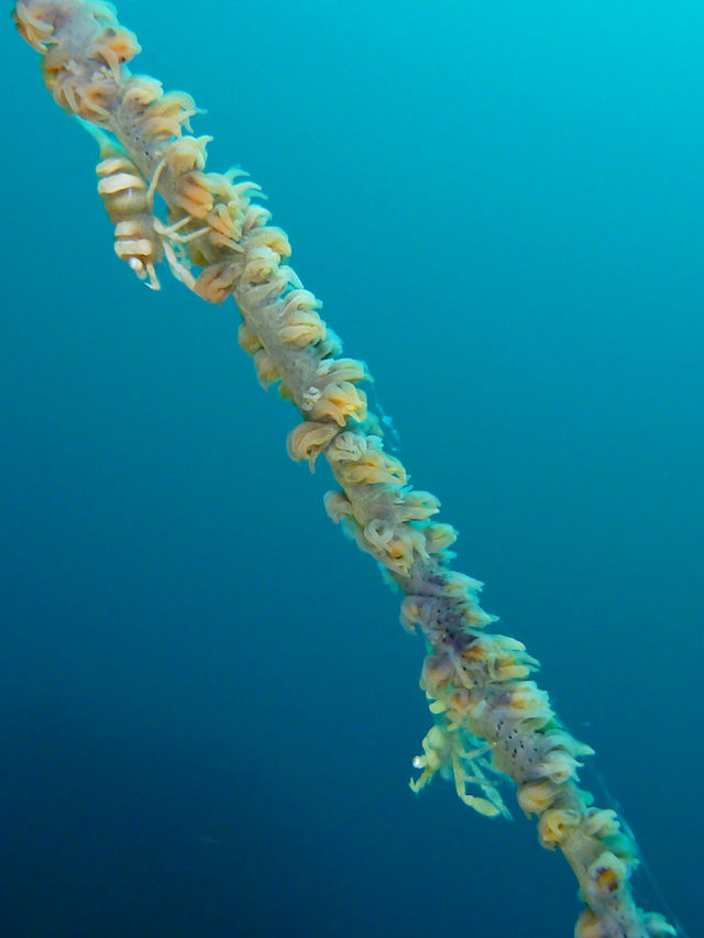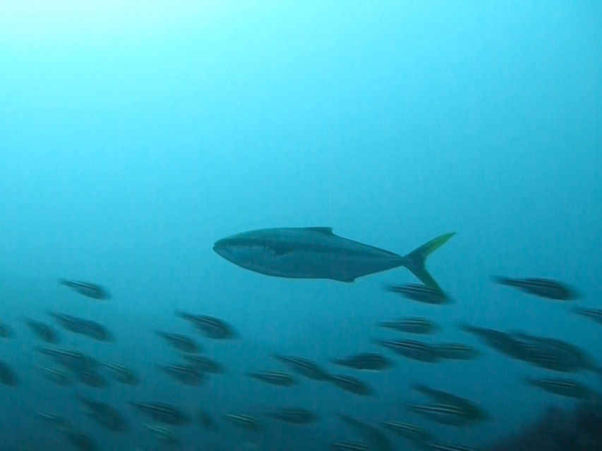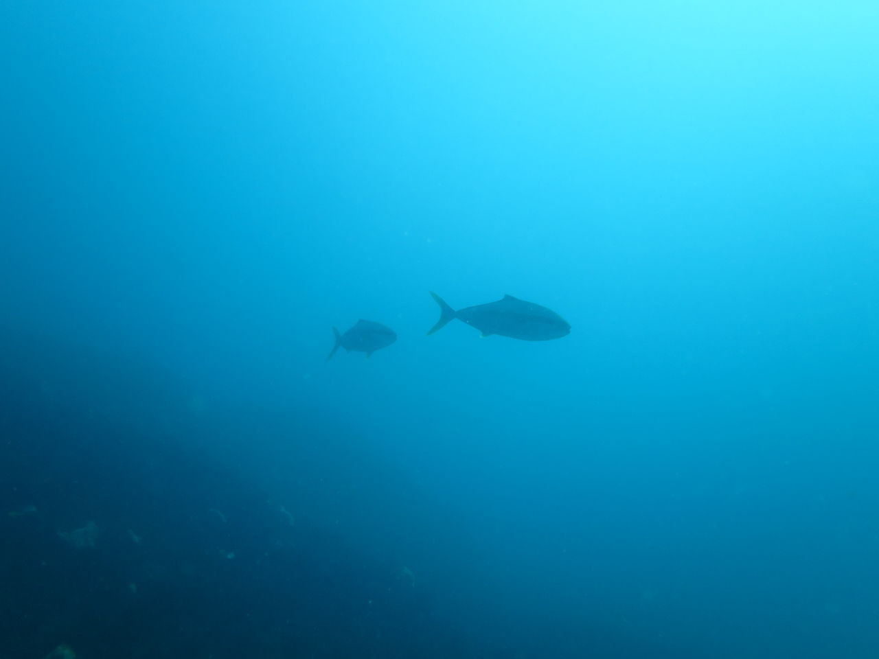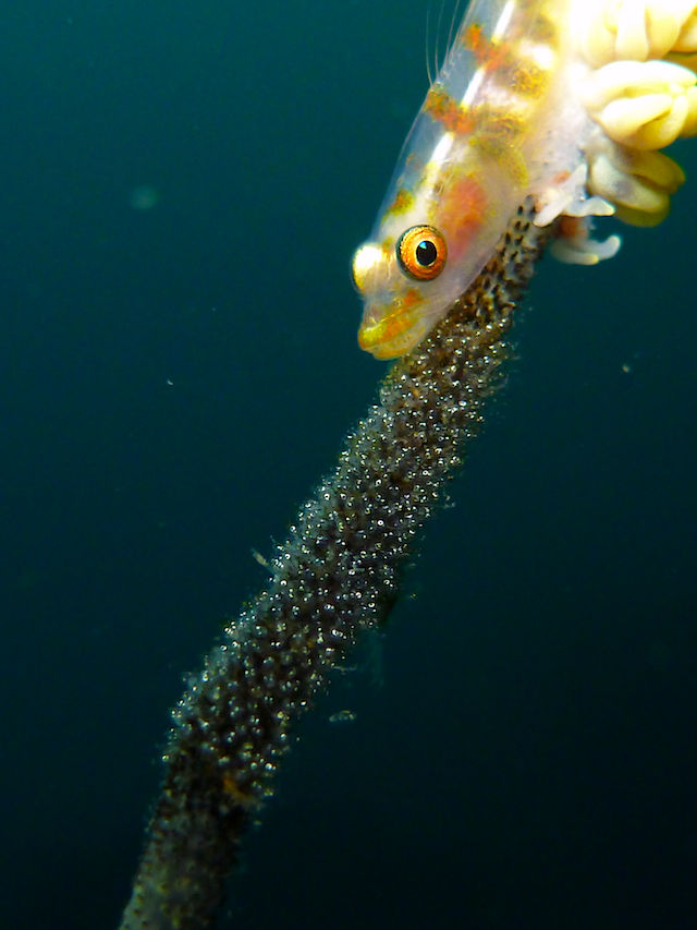 Cポイントからエントリー 逆潮が強くなってきました。真っ直ぐにメバル谷へ! まずは壁沿いのクマドリカエルアンコウを確認☆ 今日も同じ亀裂の中に隠れていました。メバル谷のベニカエルも同じカイメンの中でジッとしています。メバル谷の出口付近には、マンリョウウミウシ。 モロコに挟まれて片身の狭そうなヒゲダイ(笑) トク根の南側ではシロタエイロウミウシ。水面付近にはオキザヨリが30匹くらい泳いでいました。大根まで流されて帰ってくると。大きなヒラマサが3匹泳いできました。