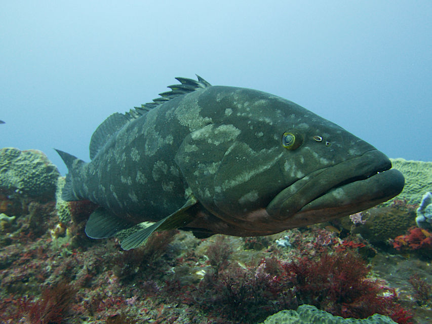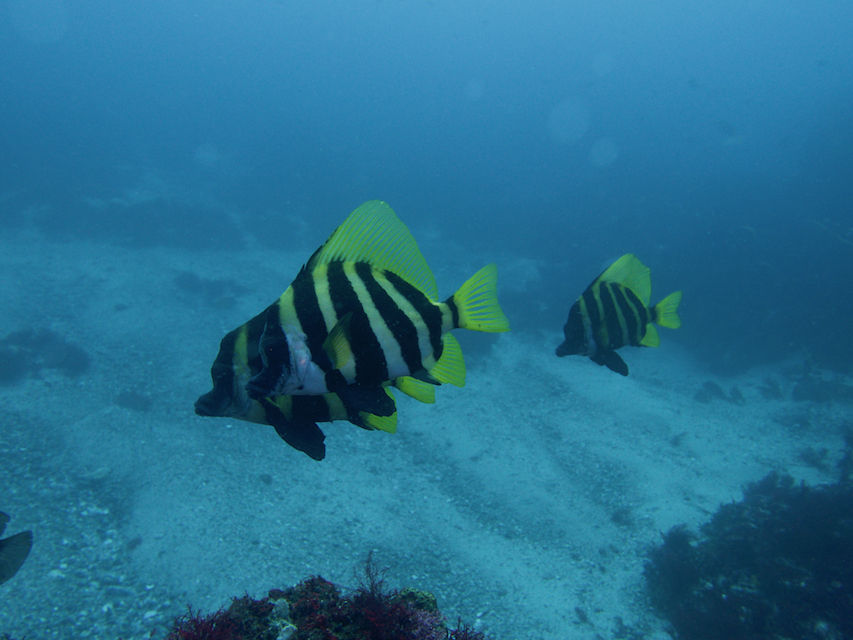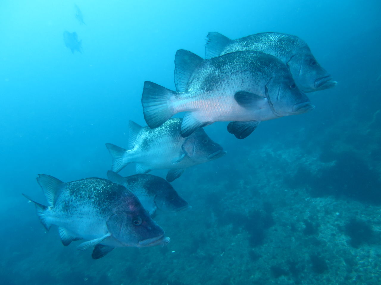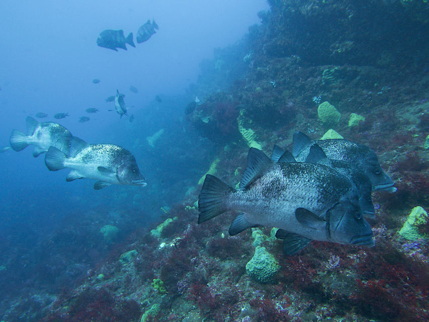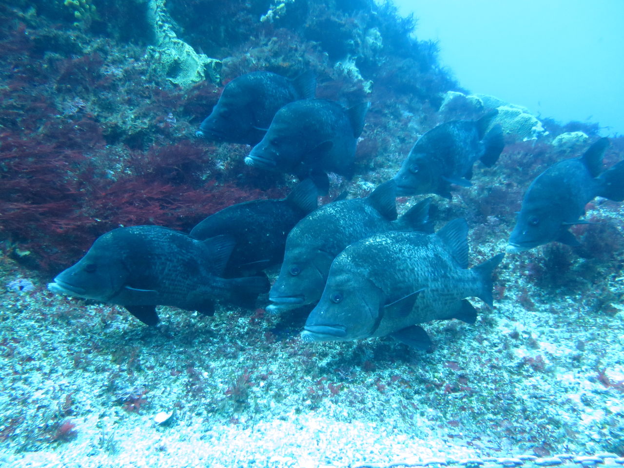 モロコ岩の北側には若いコロダイとホウライヒメジが群れていました。