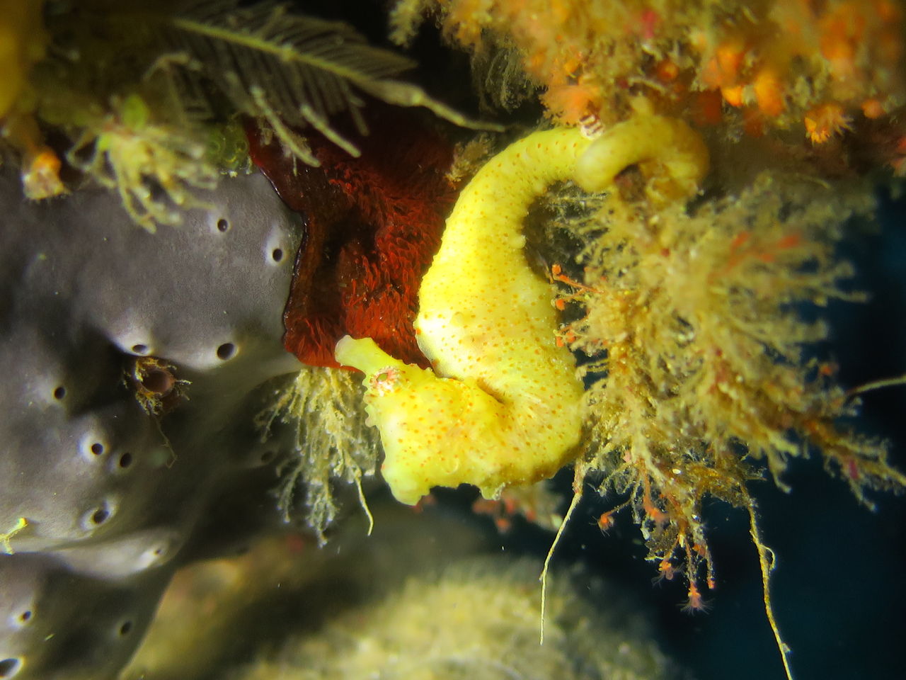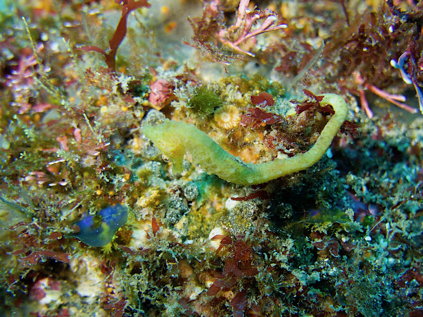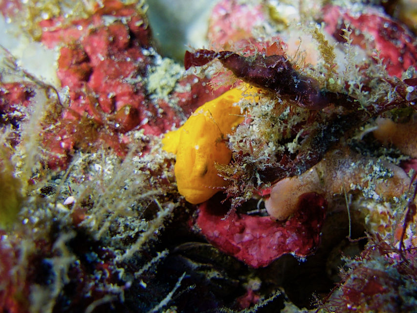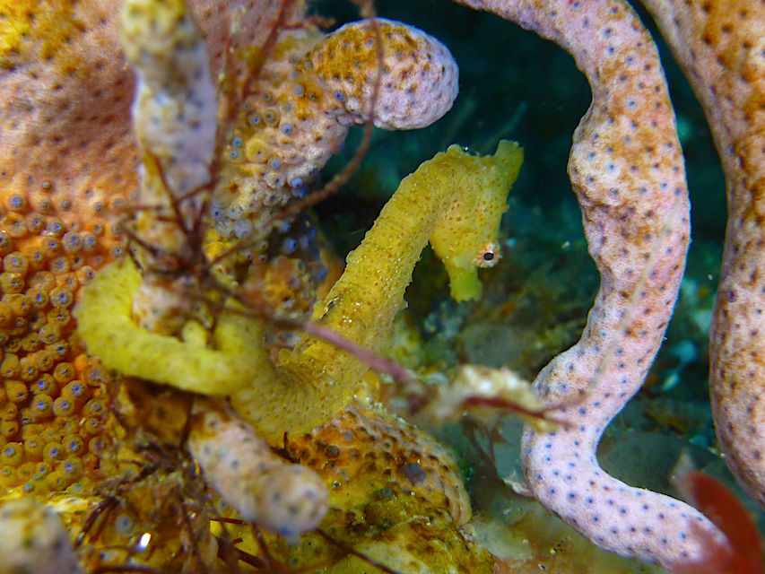 まずはブイ下北側の岩にいるハナタツ。今日も黄色いカイメンにつていましたが、ちょっと移動してしまいました。(帰りに見たら元の位置に戻ってました)