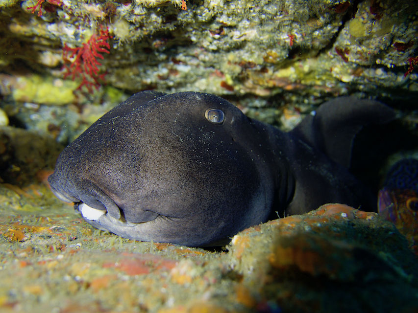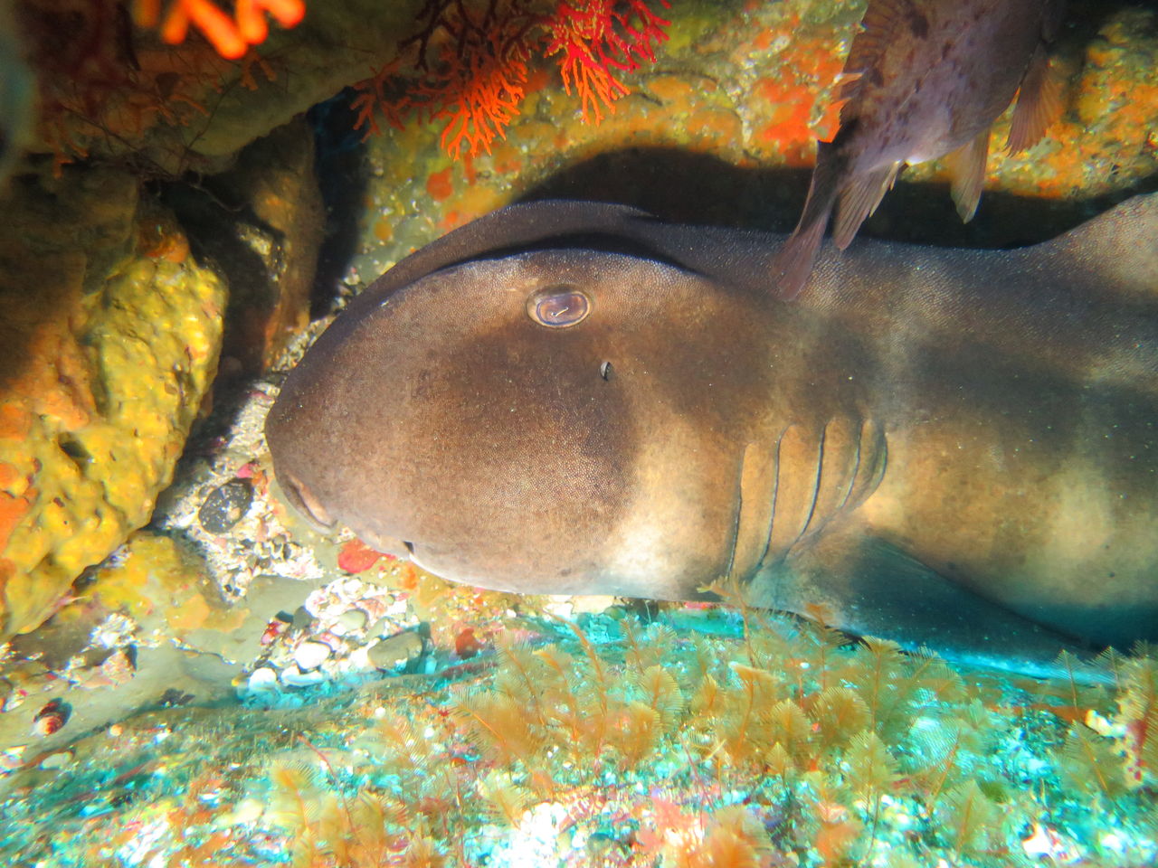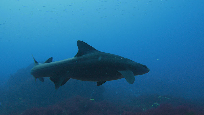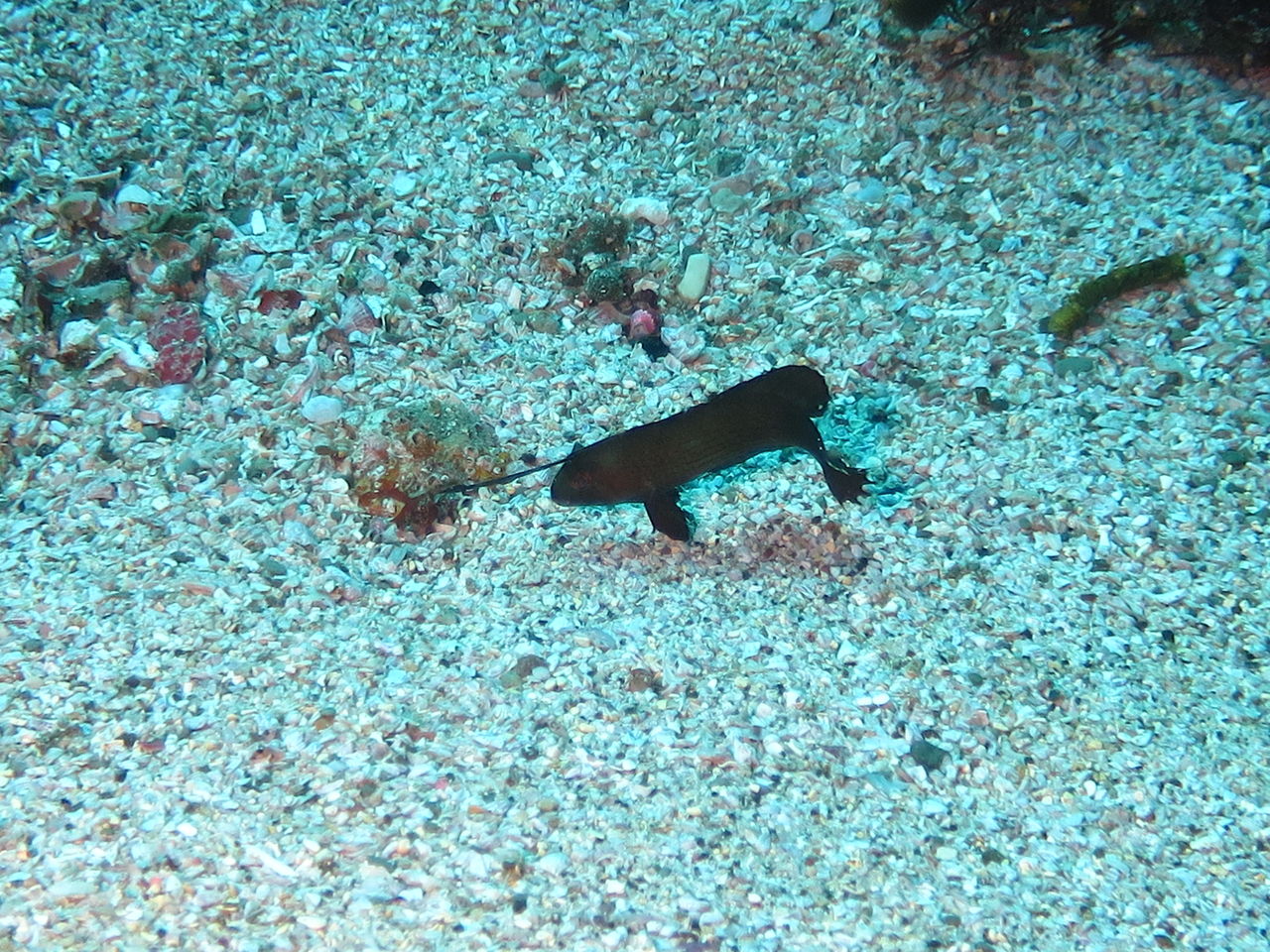 ずっと見ていると大きなドチザメが一匹泳いできてすぐそばを通り過ぎました。