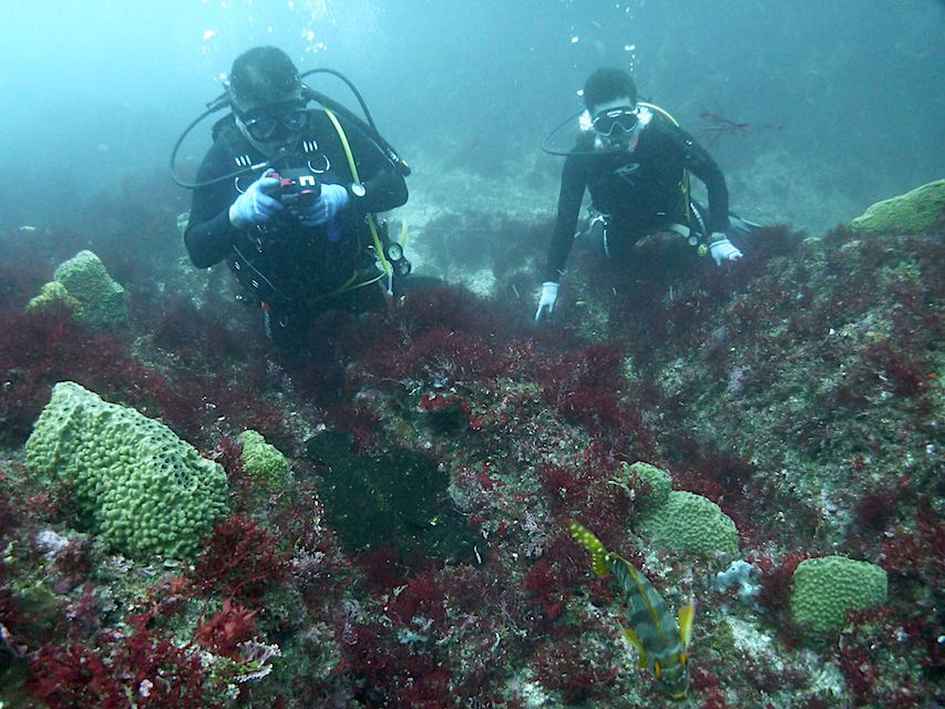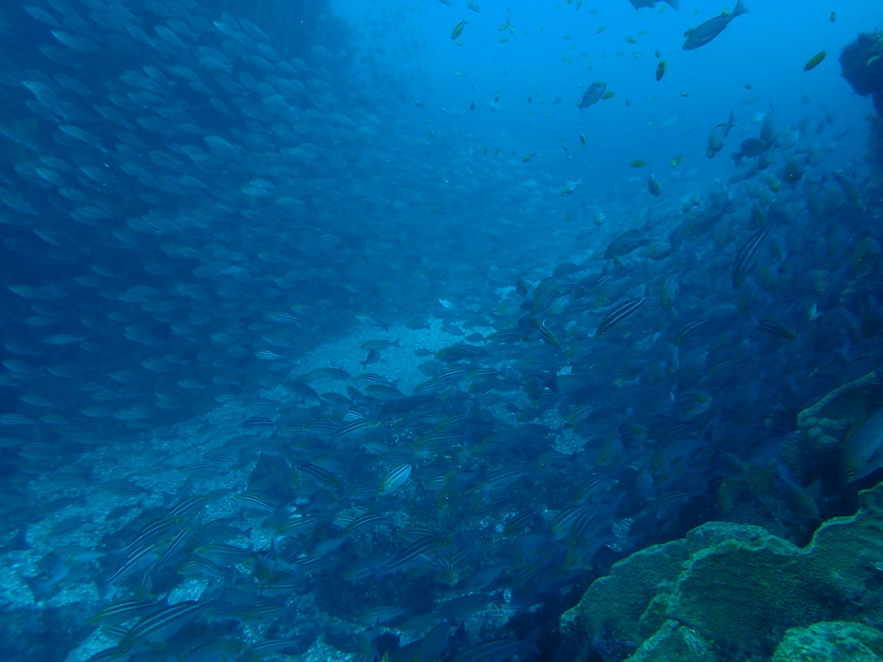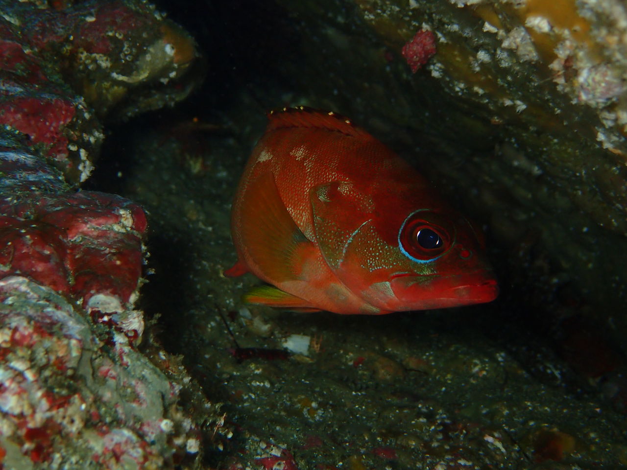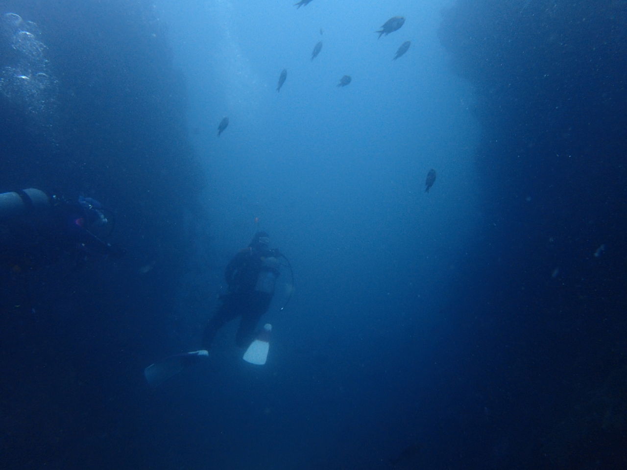 ・Cポイントからエントリー 真潮がかなり早いです。 なかなか潮が効いていますのでゆっくり移動。ネコザメのリクエストがあったのでハタンポ岩へ。 穴を覗いてみるとモロコとネコザメが一緒に入っていました。 とっても狭そうです(笑)