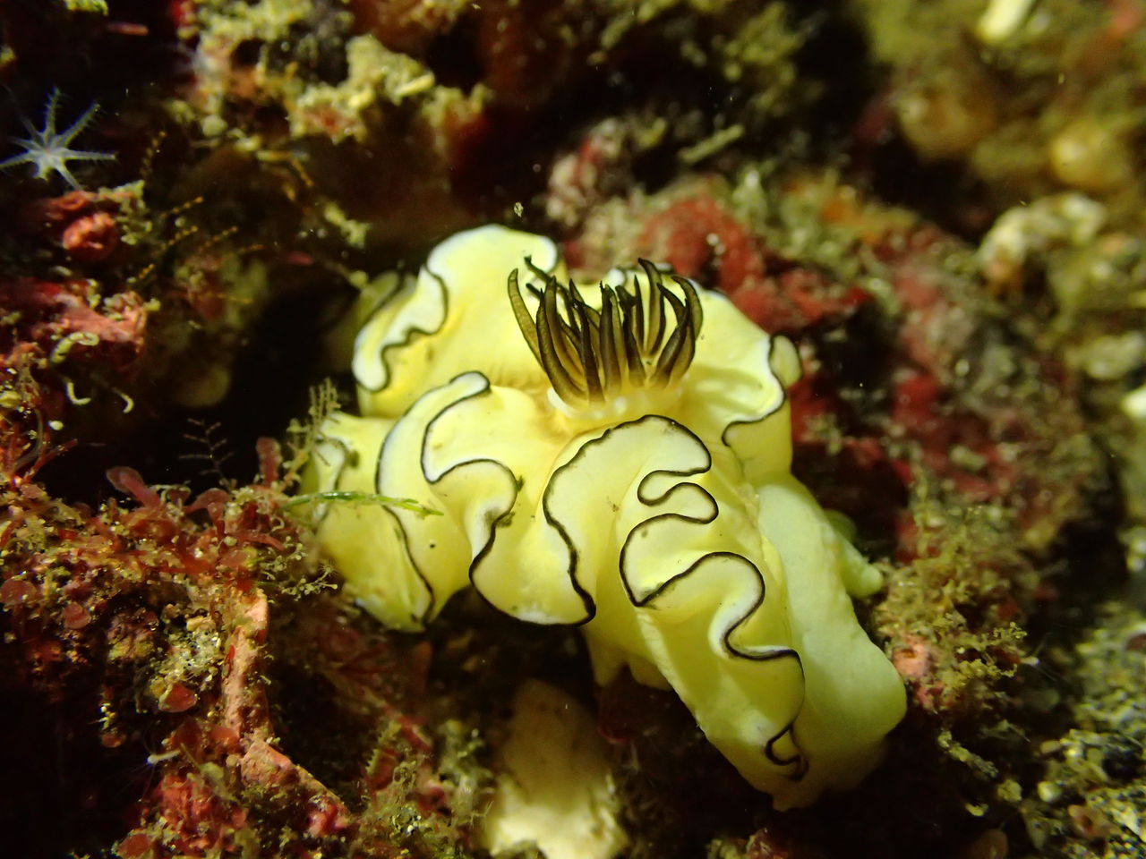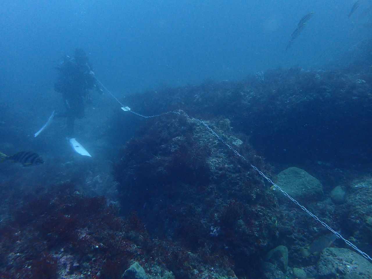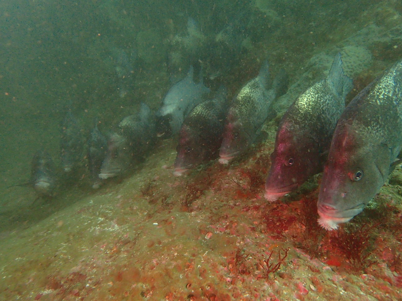 V字谷には西側の壁にヒゲダイ、水温が低いせいか上の方に群れています。