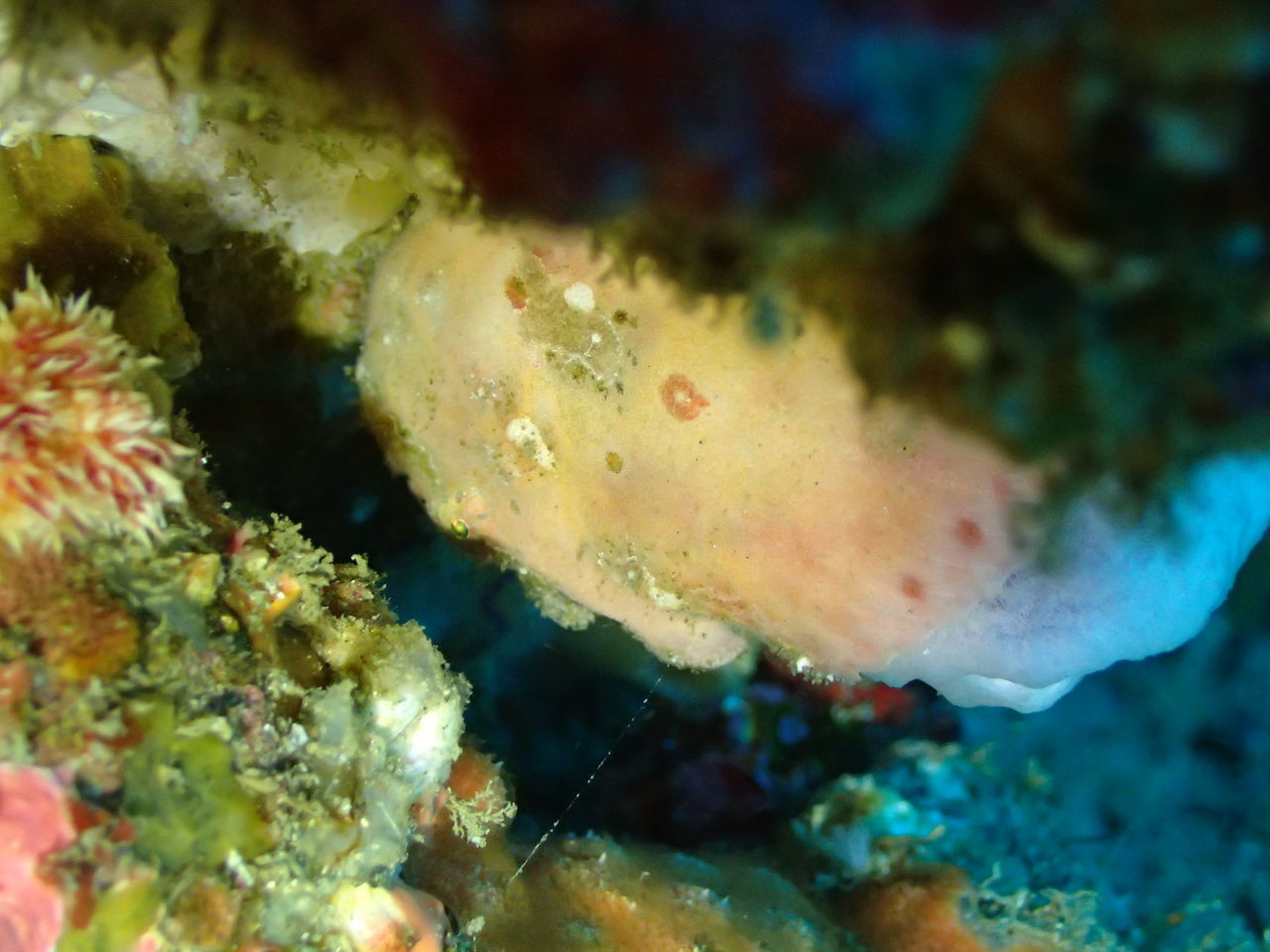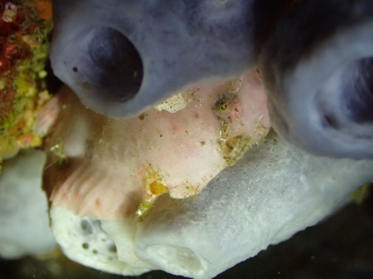 イソバナ壁のベニカエルアンコウは今日は正面を向いていました。