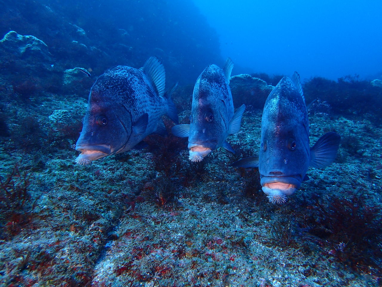 西の山の東側にはクエが1匹とヒゲダイが2匹並んでいました。