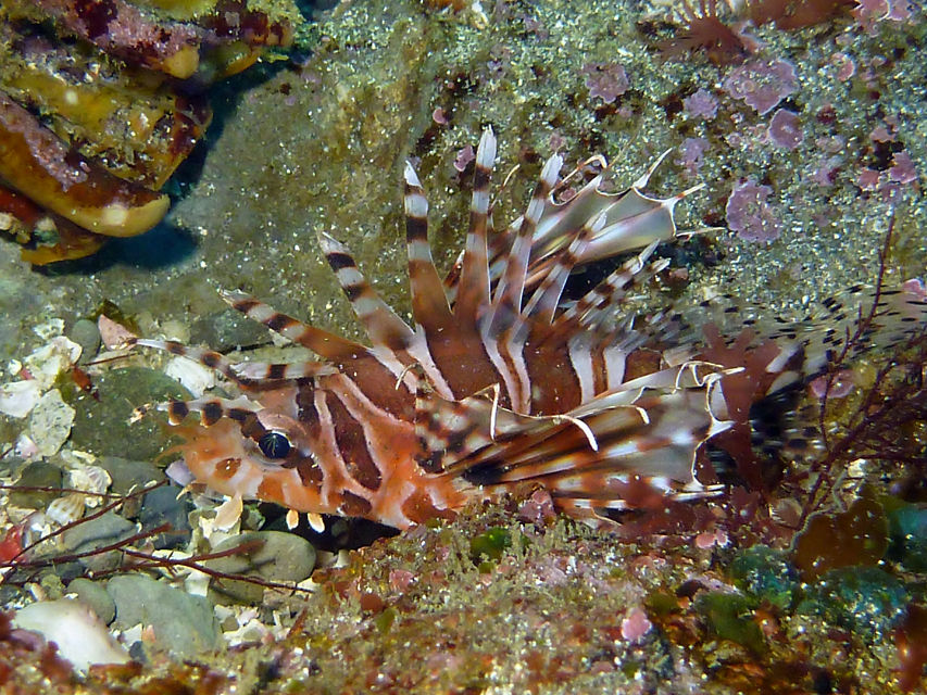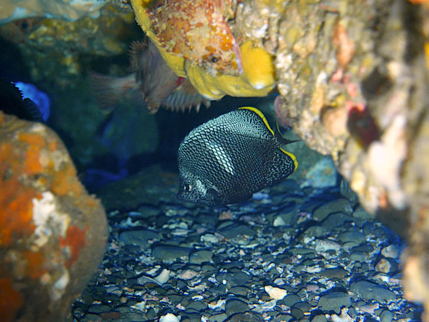 テング岩には水底にホウライヒメジの大群。ライトを当てると一瞬パアーッと散るのですがすぐに戻ってまた水底に張り付きます。面白い。