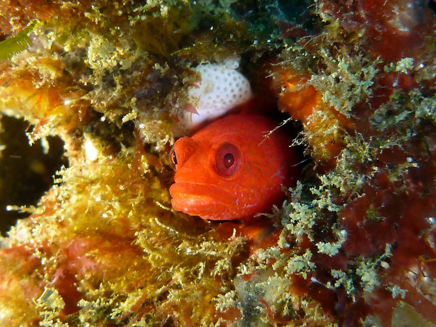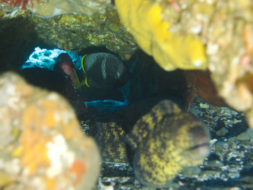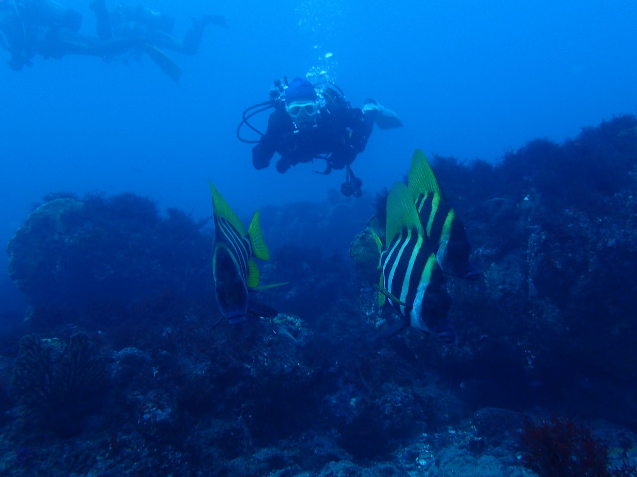 まだ逆潮が残っています。視界は変わらず。サメ穴の上にはテングダイが4匹集まっていました。