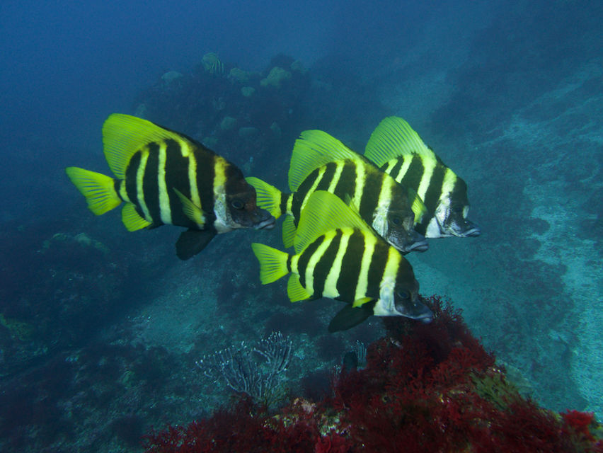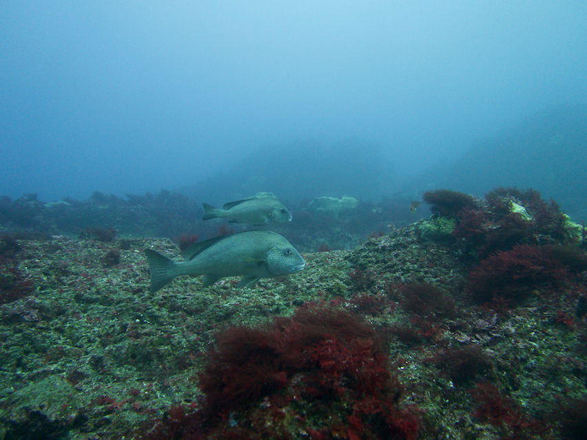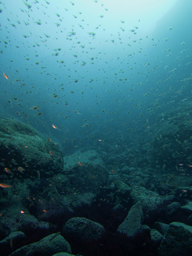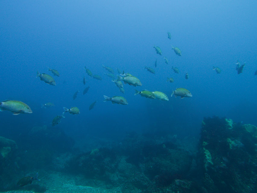 テング岩にはホウライヒメジの群れ。
