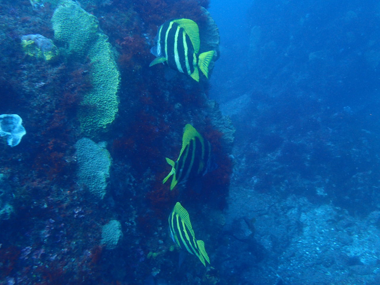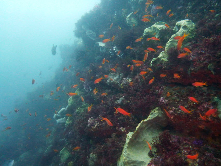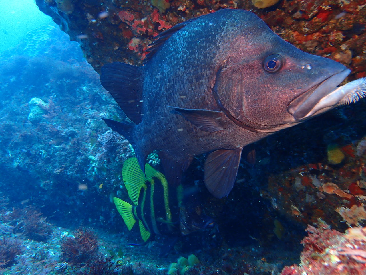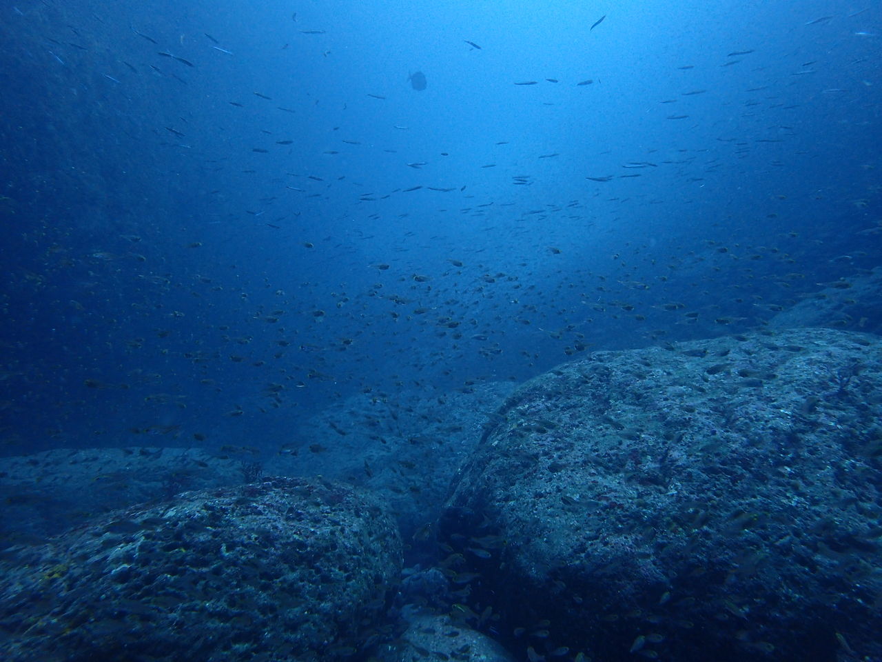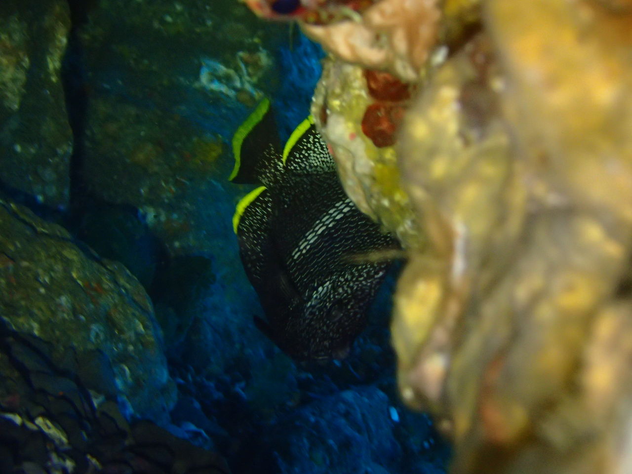先ずはV字谷へ。ヒゲダイやイシダイがいっぱい☆ 東側の壁にはキイロウミコチョウが隠れていました。