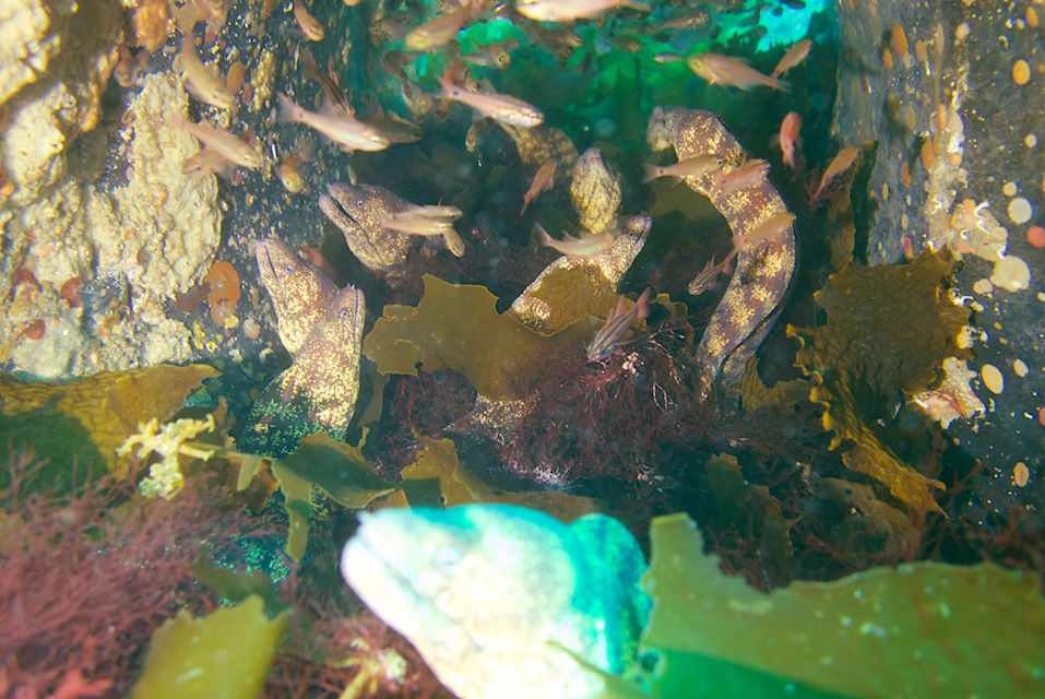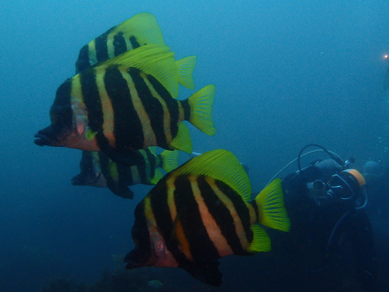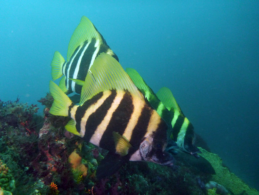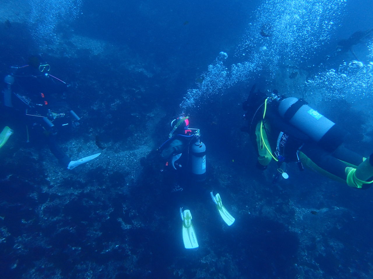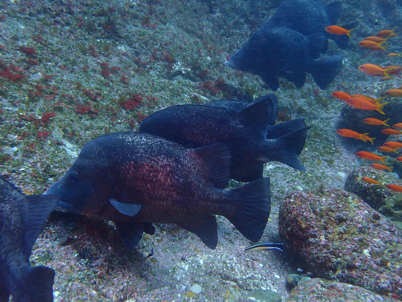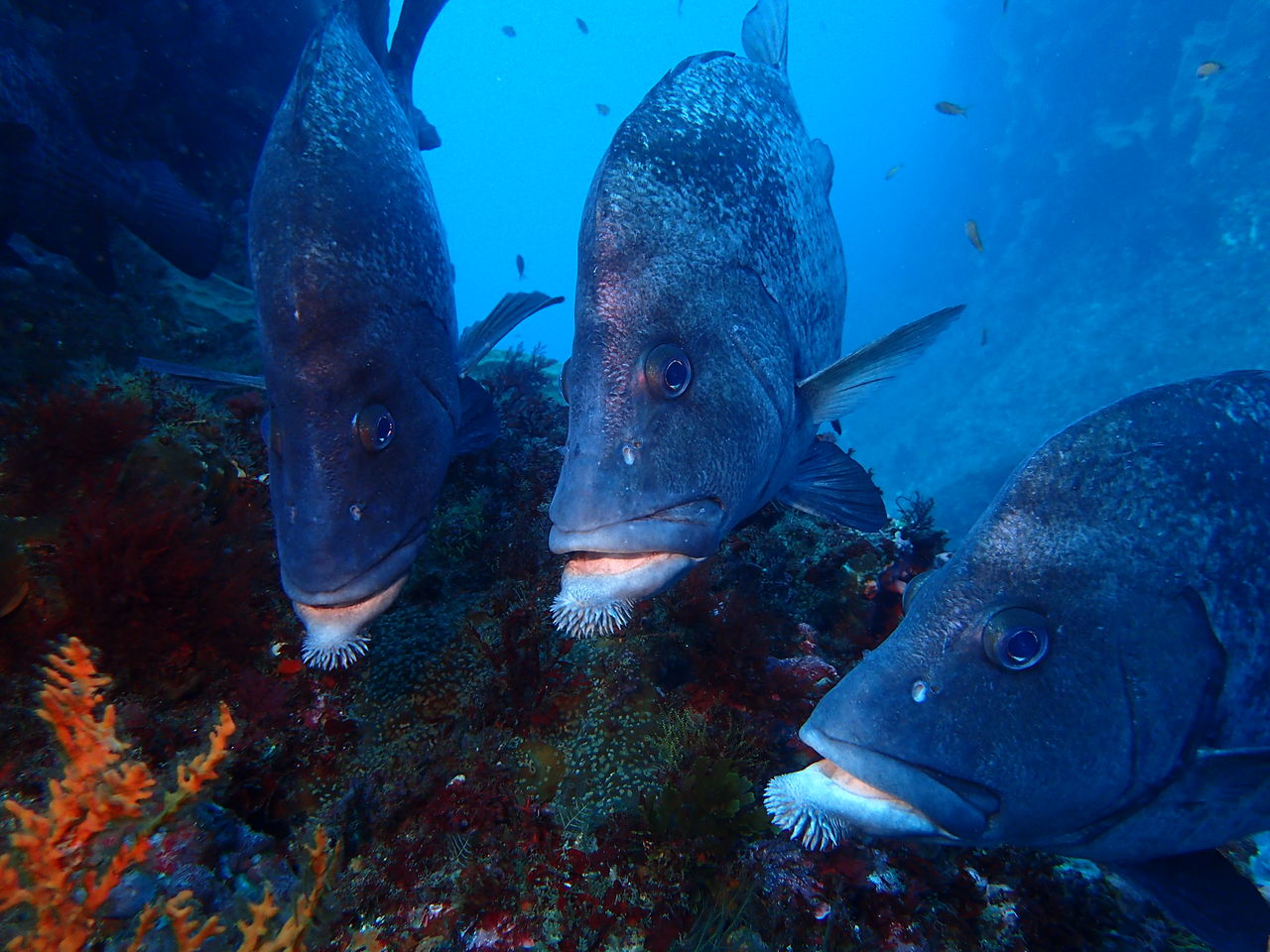 先ずはV字谷へ。ヒゲダイやイシダイがいっぱい☆ 東側の壁にはキイロウミコチョウが隠れていました。