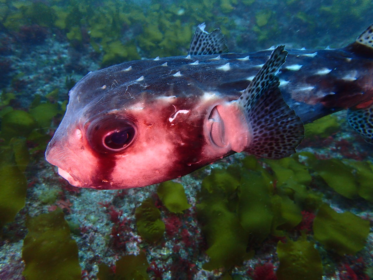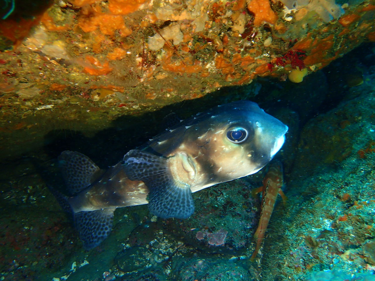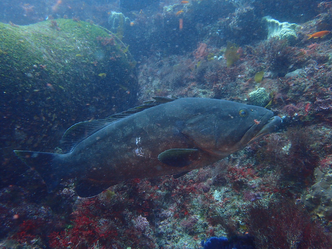 トク根の上にはマダイやメジナがいっぱい。 離れ根の東側の亀裂にはイシガキフグが2匹一緒に居ました。