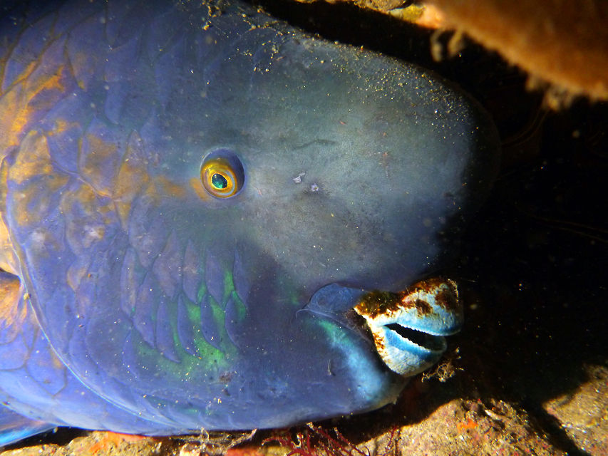 穴の中をのぞくとオオセがいました!! 昨日発見された子かな?? 1DIVE目と2DIVE目の間に移動してきたみたい。