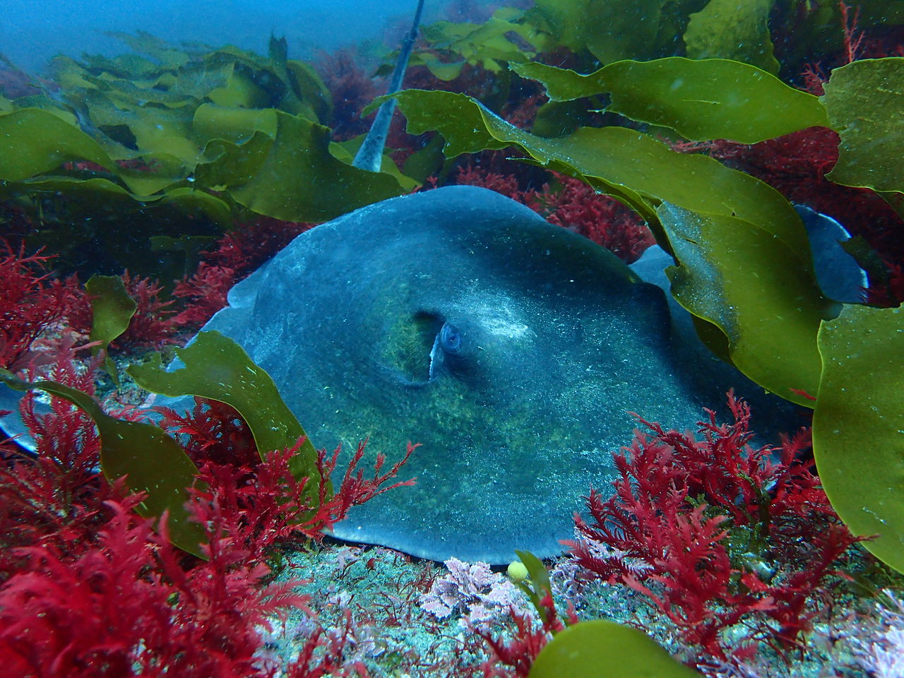 先ずは西の山へ。南側にテングダイが3匹泳いでいました。 そこから南へ移動。 水底には大きなアカエイが数匹かくれていました。
