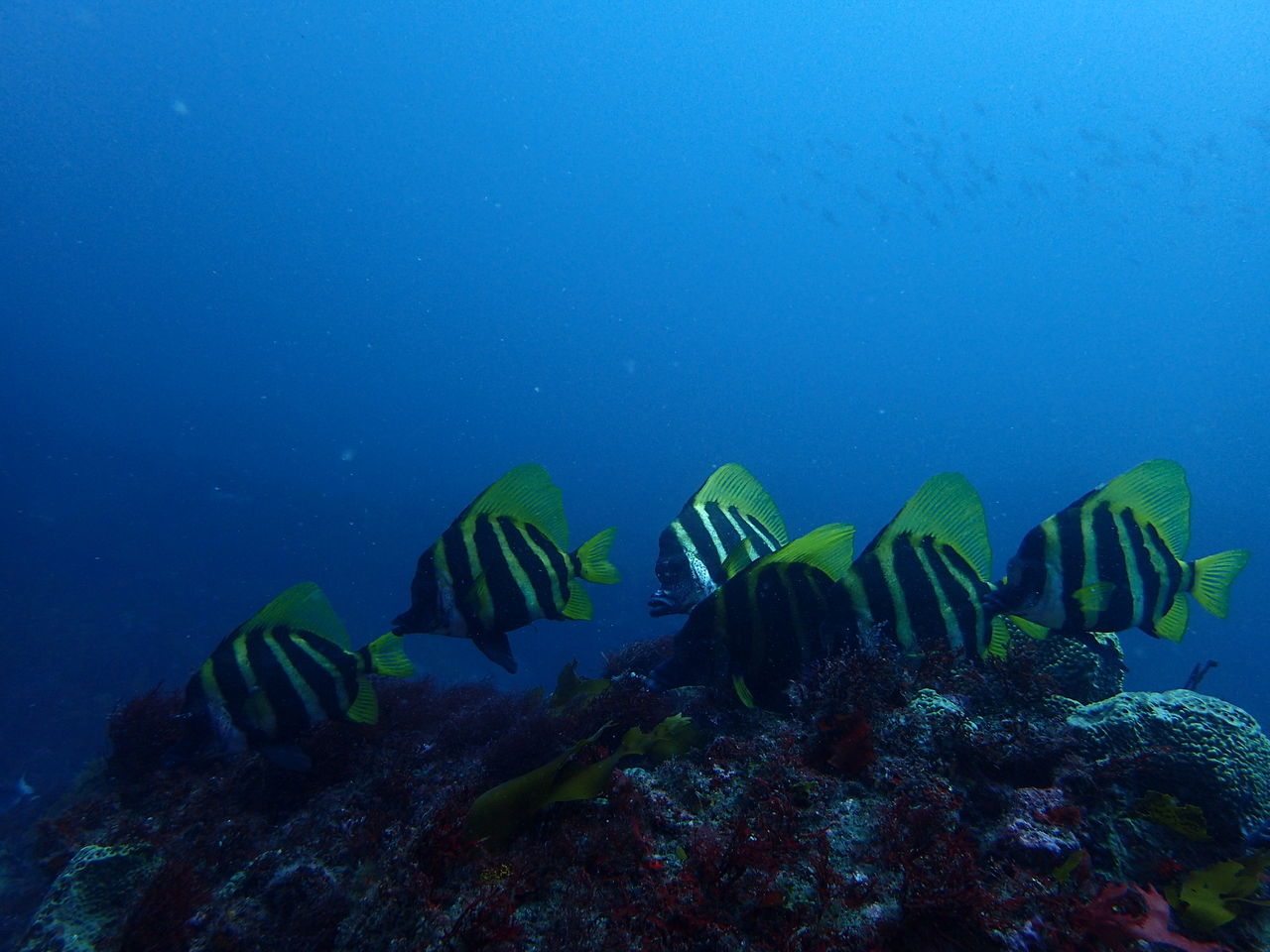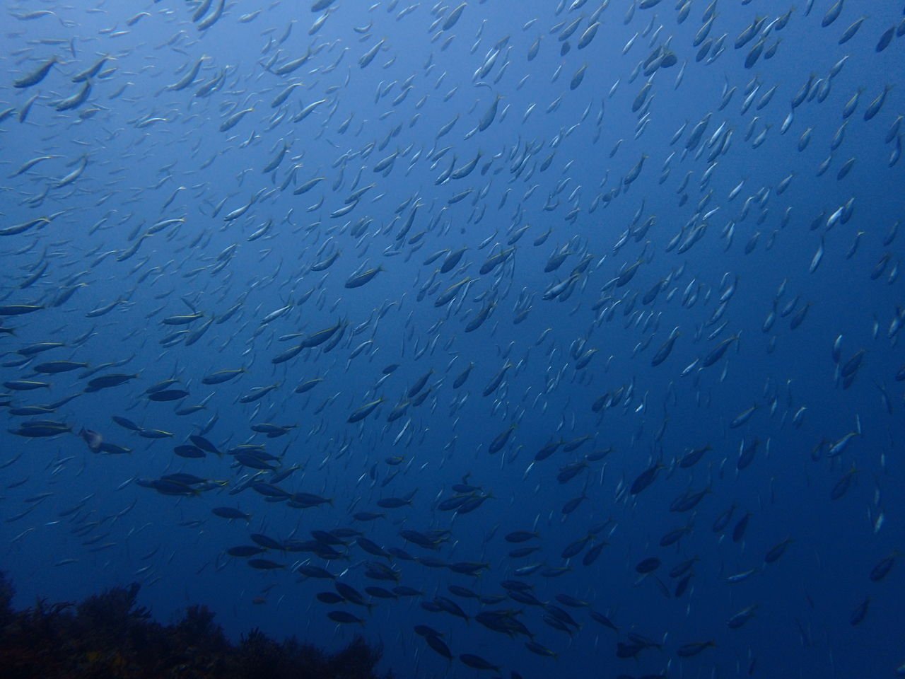 西の山にはかわいいハリセンボン☆ アナゴ岩の南側の岩にはイナダの群れが現れたそうです!
