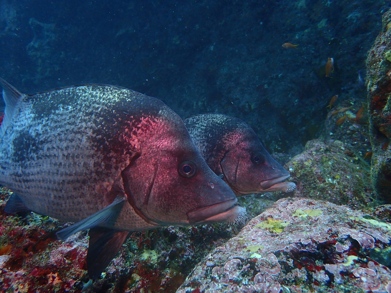西の山ではニシキベラの産卵。 V字谷にはヒゲダイとチシオコケギンポがいました。