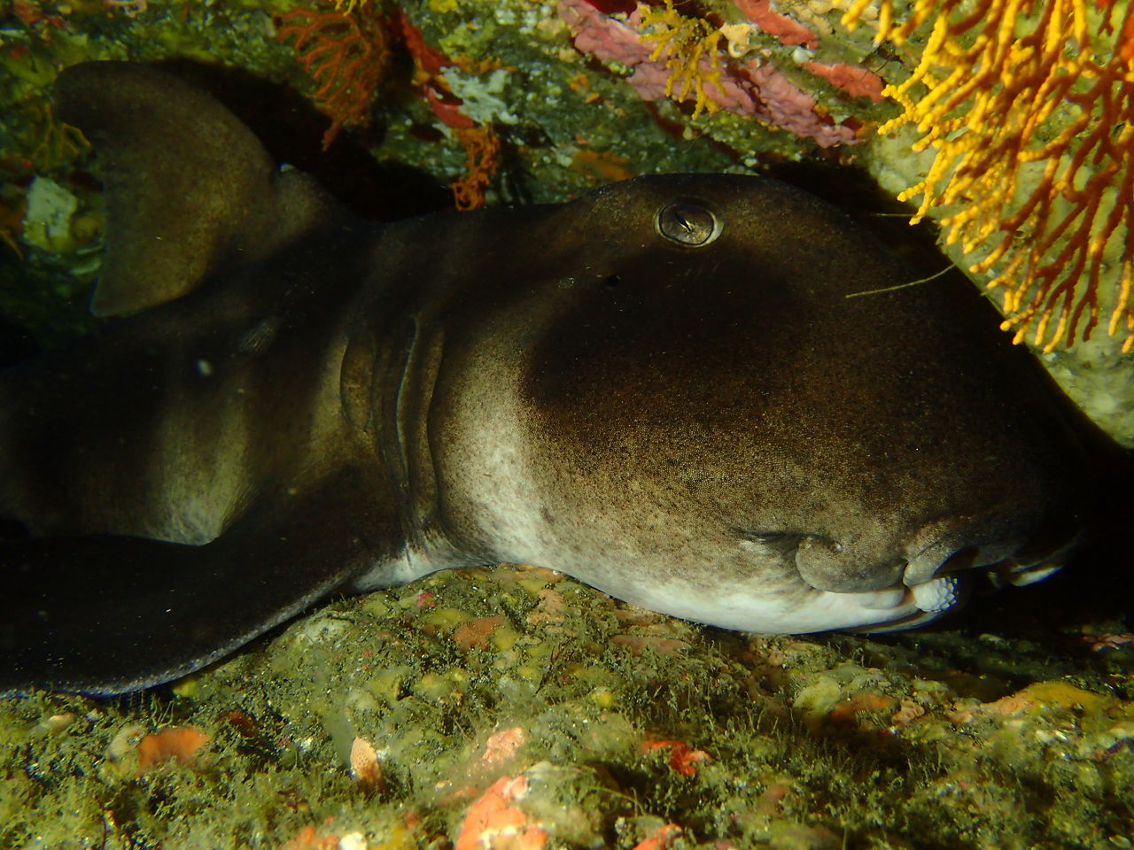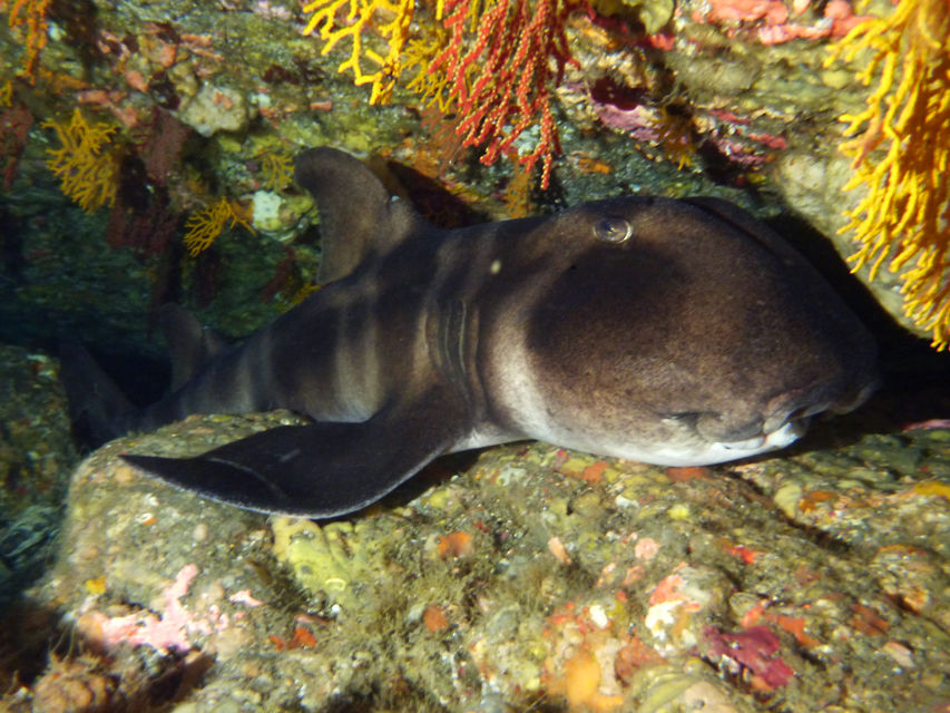 サメ穴を覗くと大きなネコザメが入っていました。 テング岩方面にはトビエイが一枚飛んでいましたよ〜☆