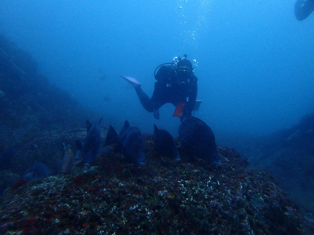 ゆっくり泳いでサメ穴方面へ☆ テング岩の上にテングダイが6匹サメ穴にはイサキが集合していました。