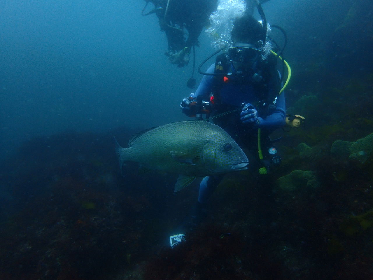 大根まで流されて戻ると。根ノ上はイサキパラダイス☆ 更に最近V字や大根周りにニザダイがやたら増えてきています!