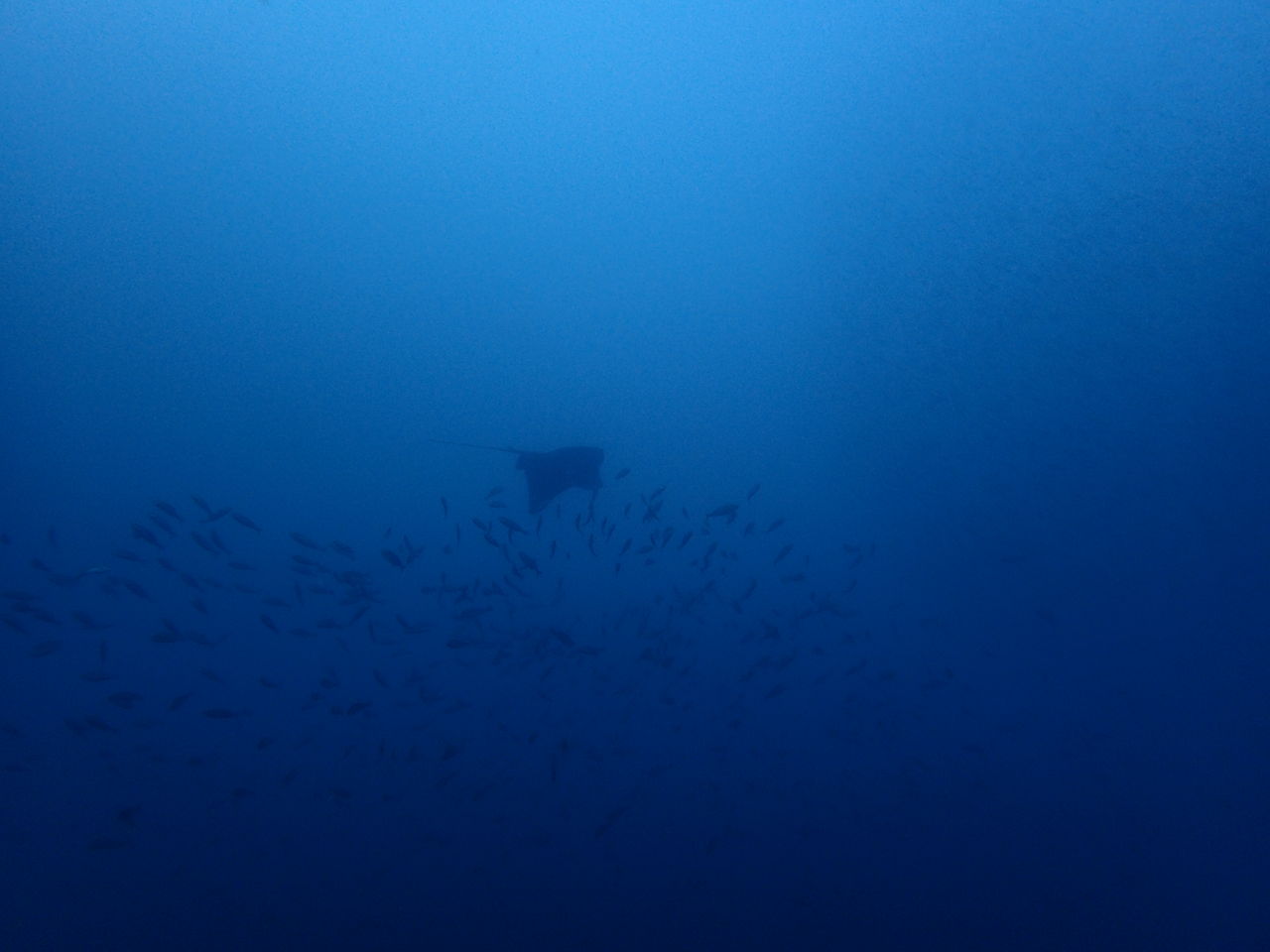トビエイの根にはメジナやタカベの群れ! 求愛中のウミスズメもいました。