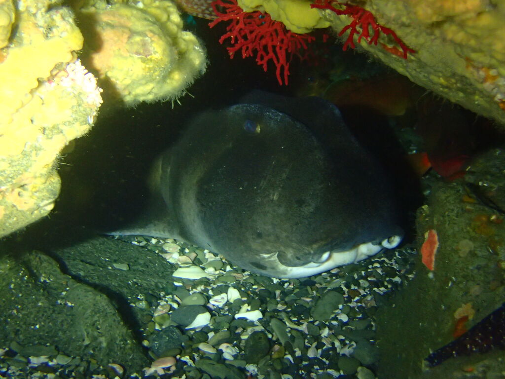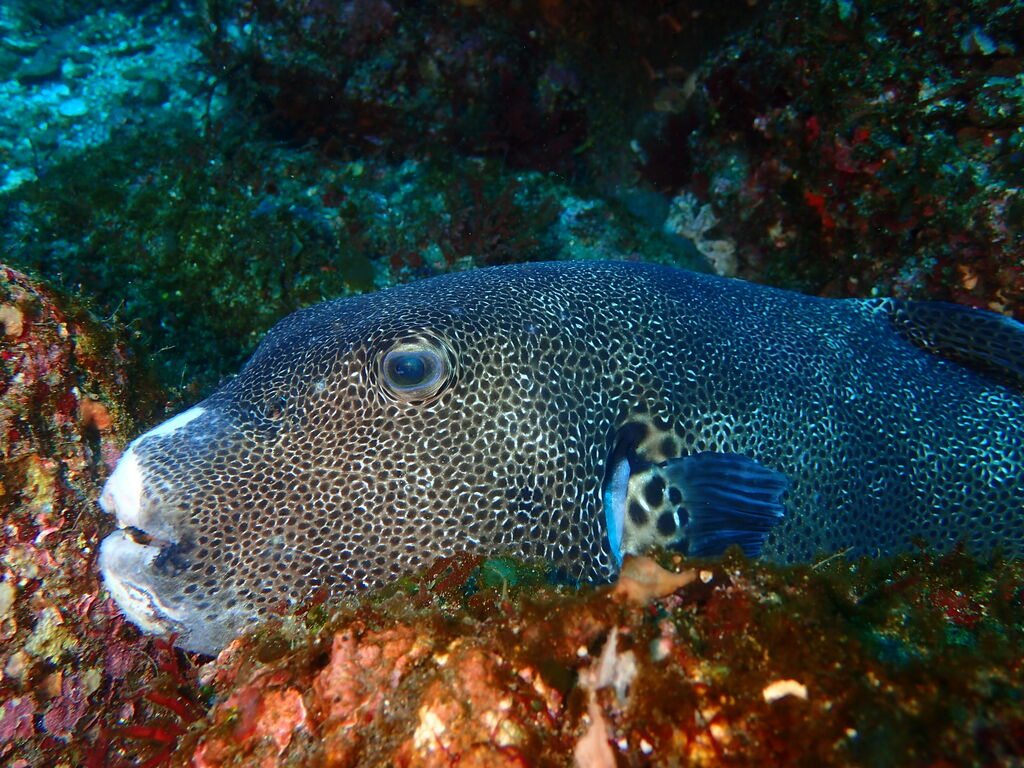 西の山にはキンギョハナダイが一杯☆ 亀裂の中にはハリセンボンが2匹入っていました。