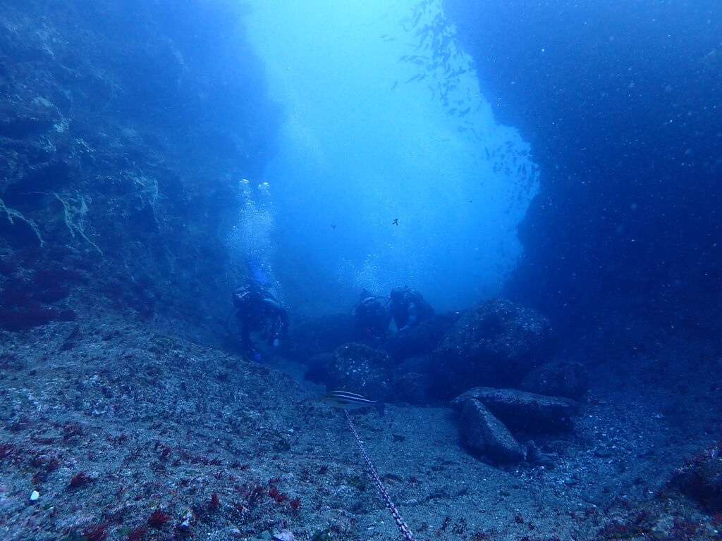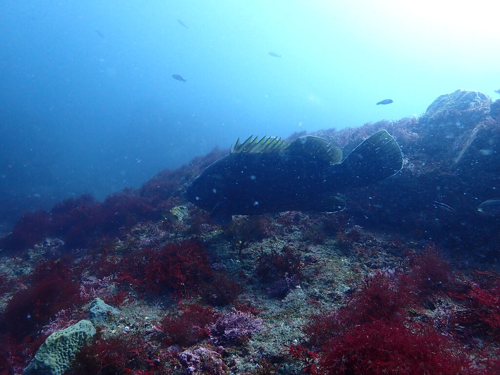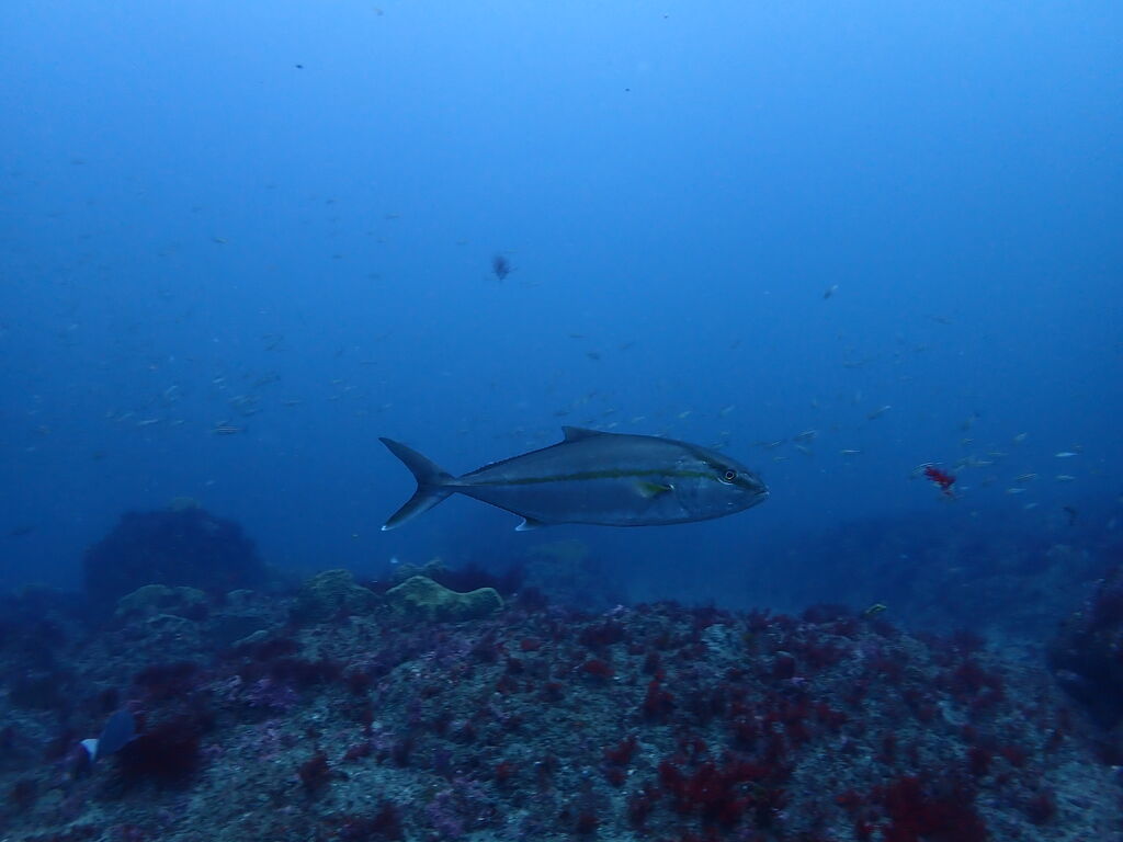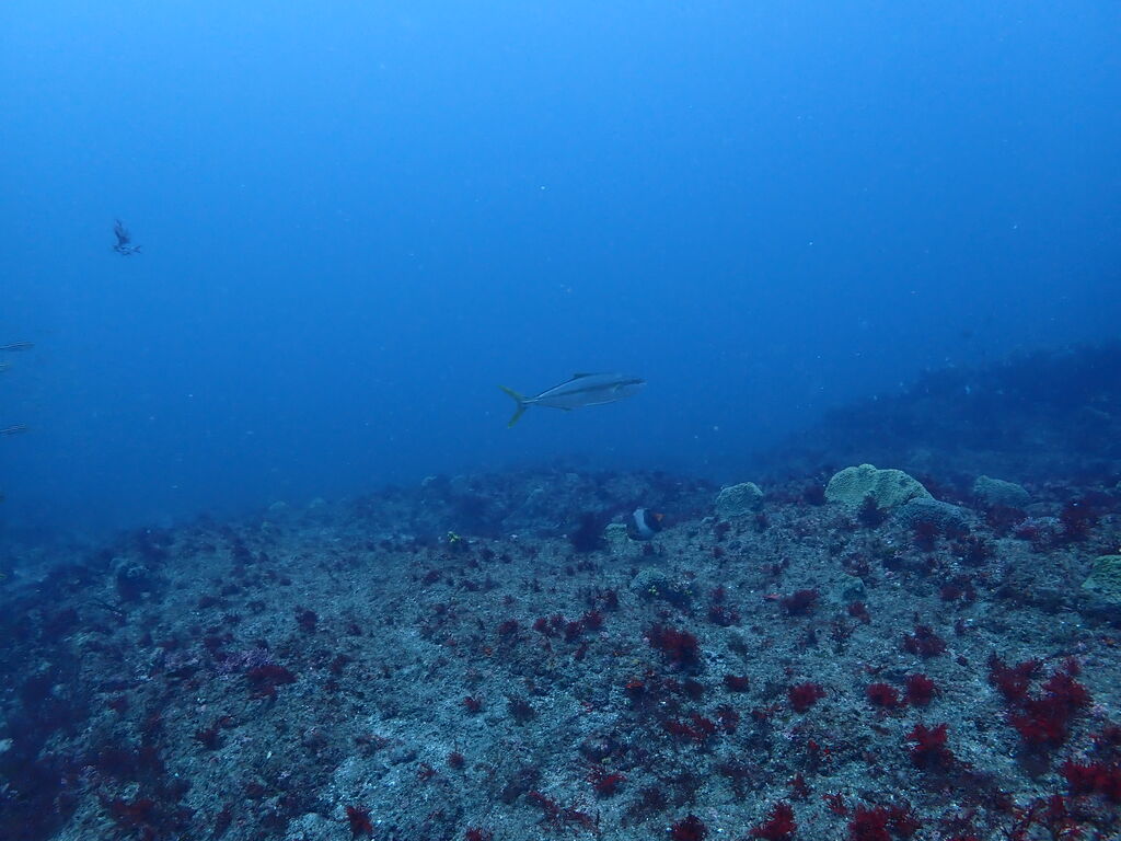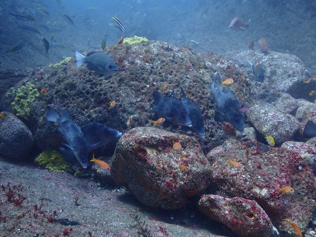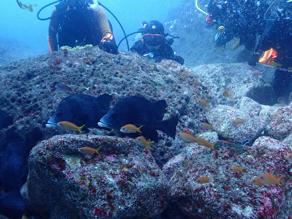 V字谷にはヒゲダイが整列。ハタンポ岩の南側にはアオウミガメが居ました。