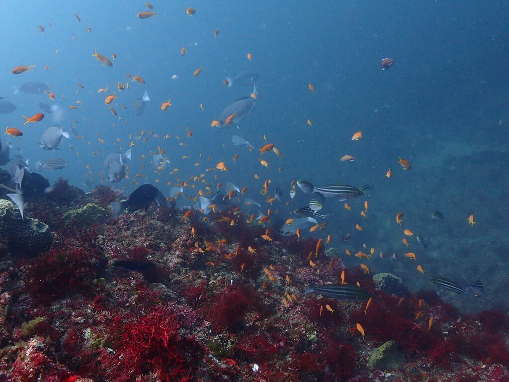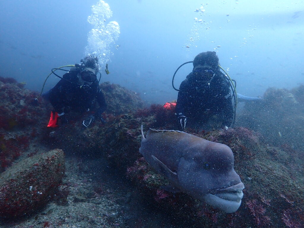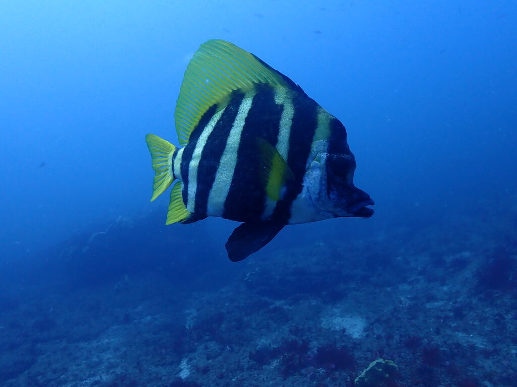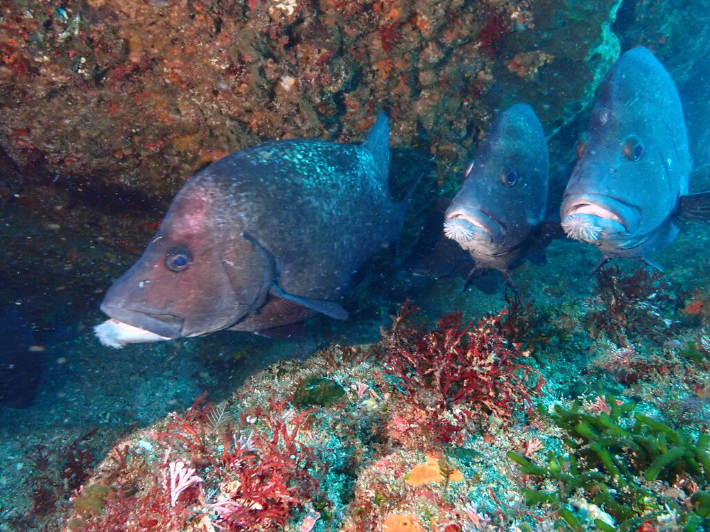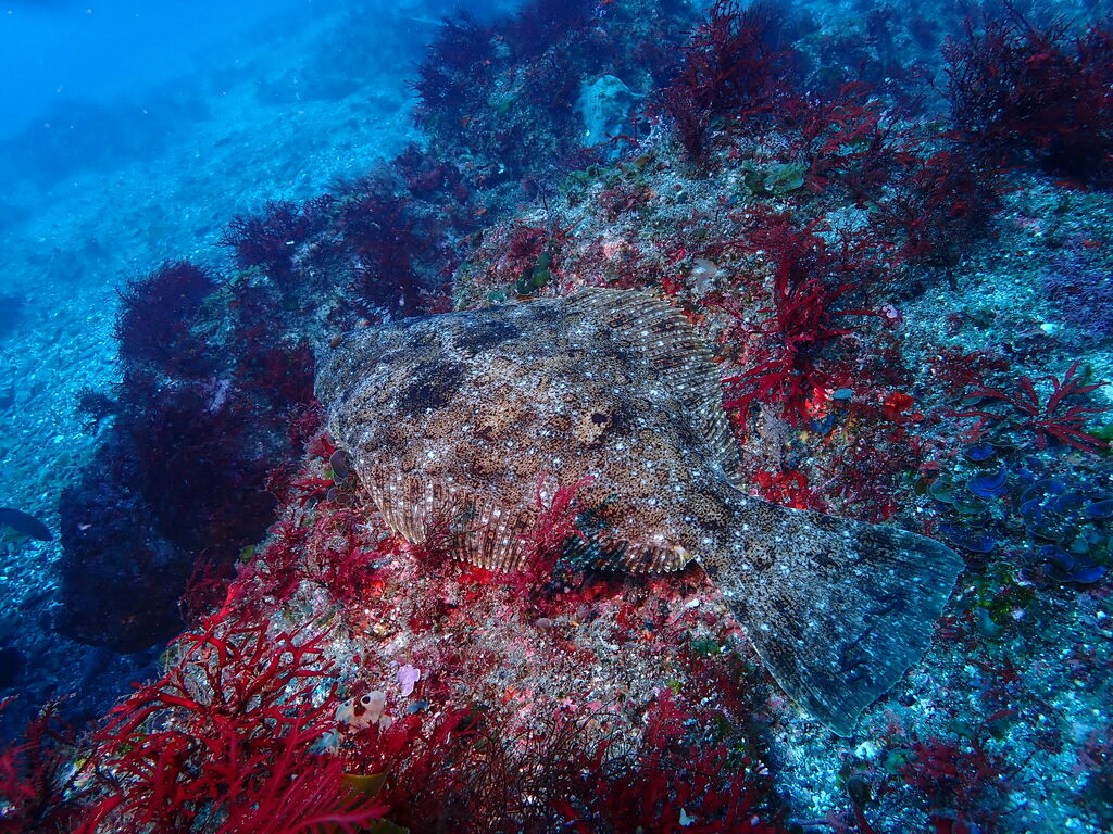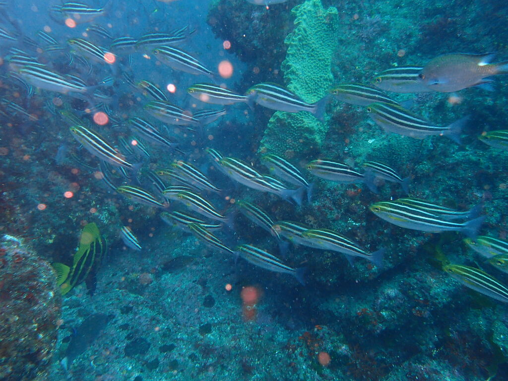 V字谷にはヒゲダイが整列。ハタンポ岩の南側にはアオウミガメが居ました。