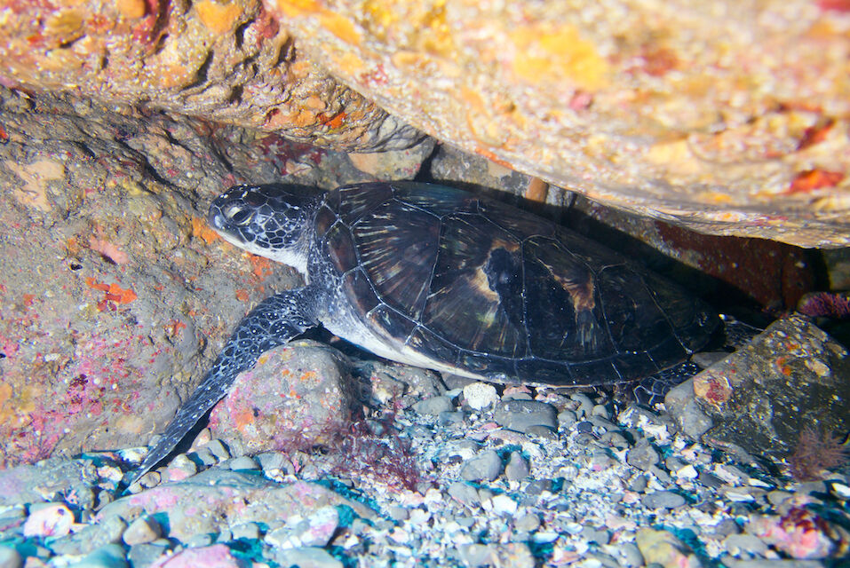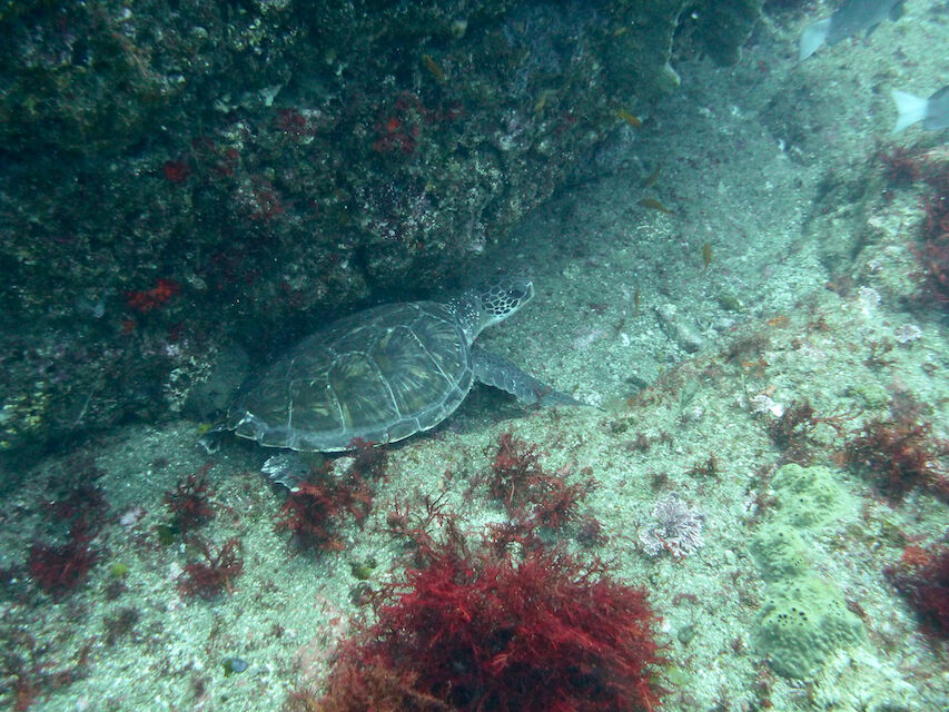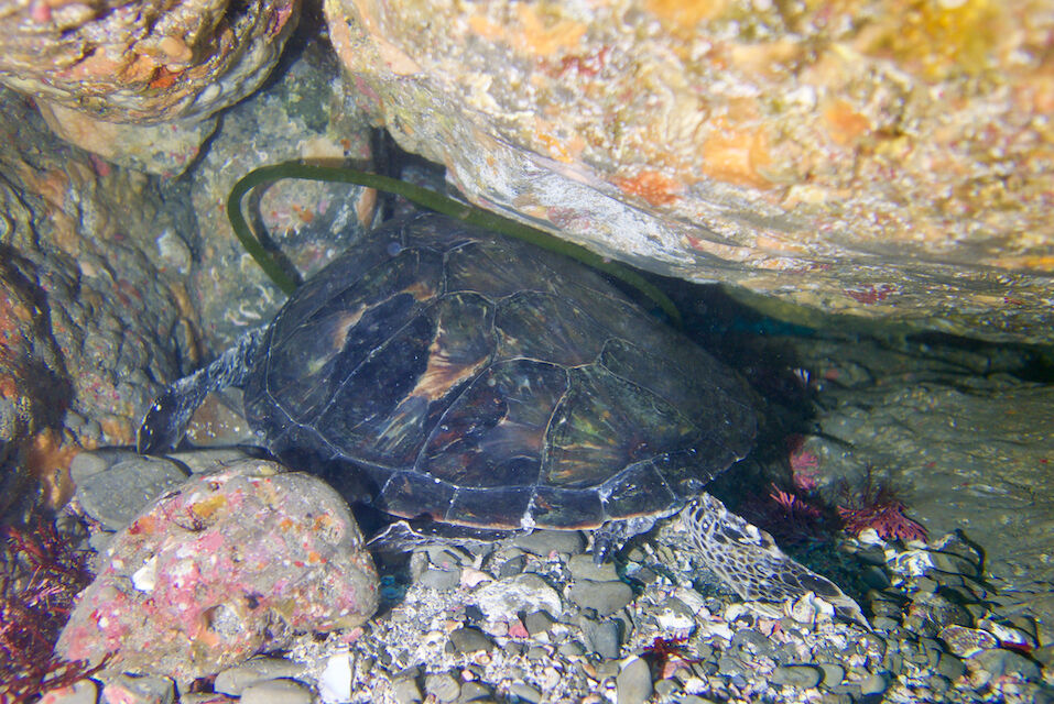 岩陰にアオウミガメを発見。今日は3本ともカメGET。