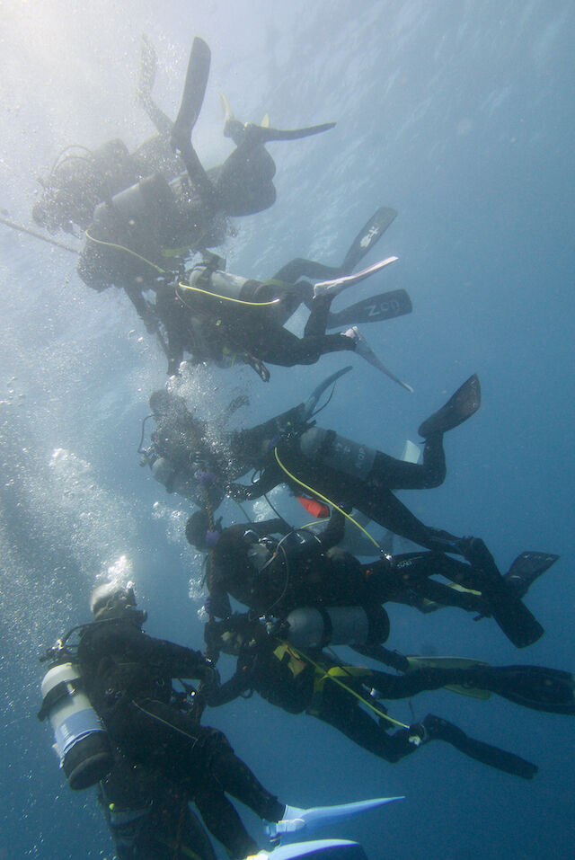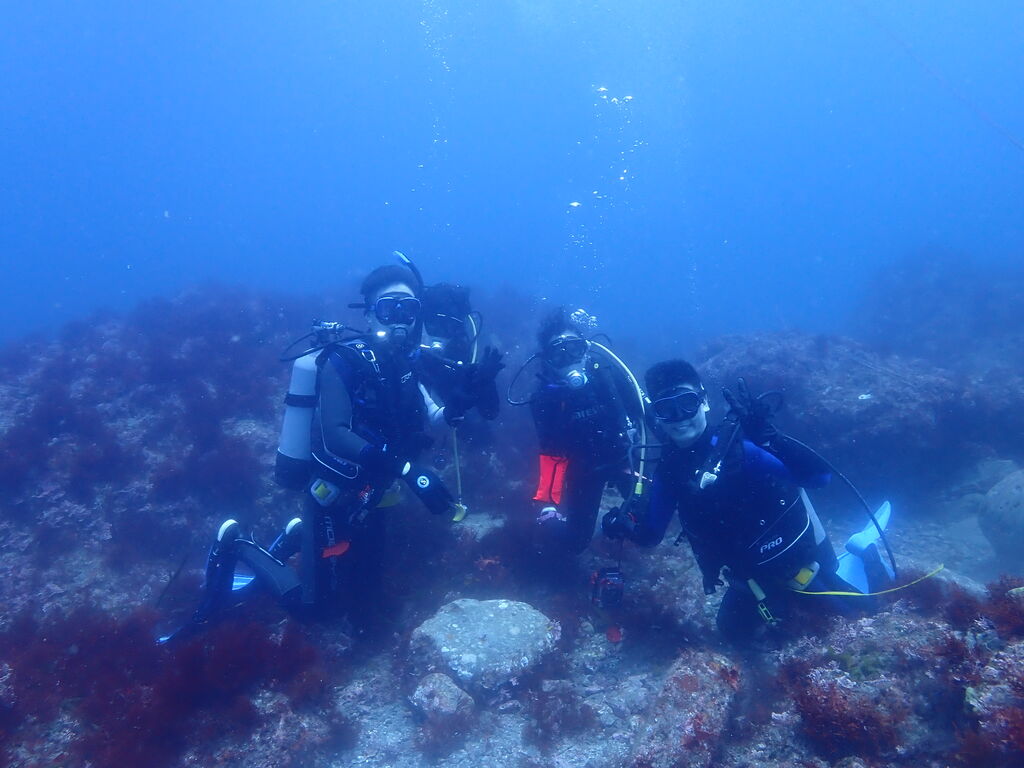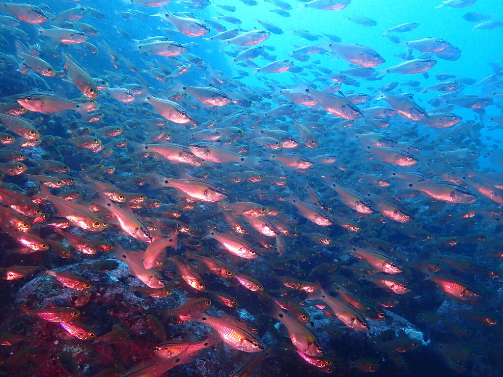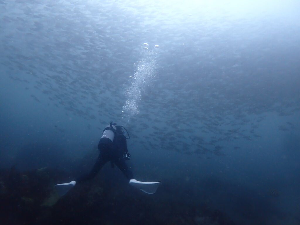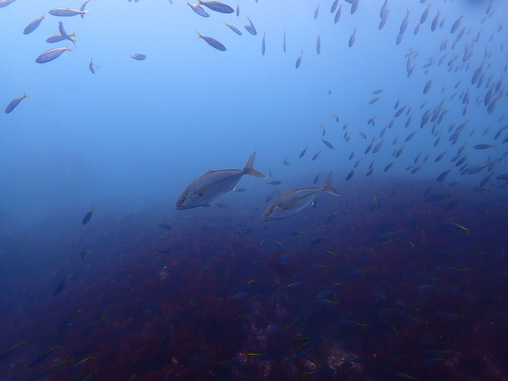 タカベの群れがきれい。ウエイトベルトを無事発見。