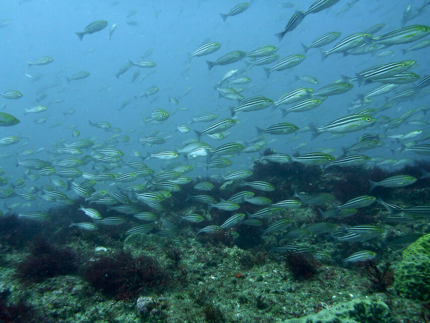 メジナがわんさか群れていました。